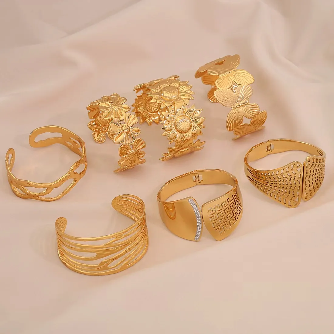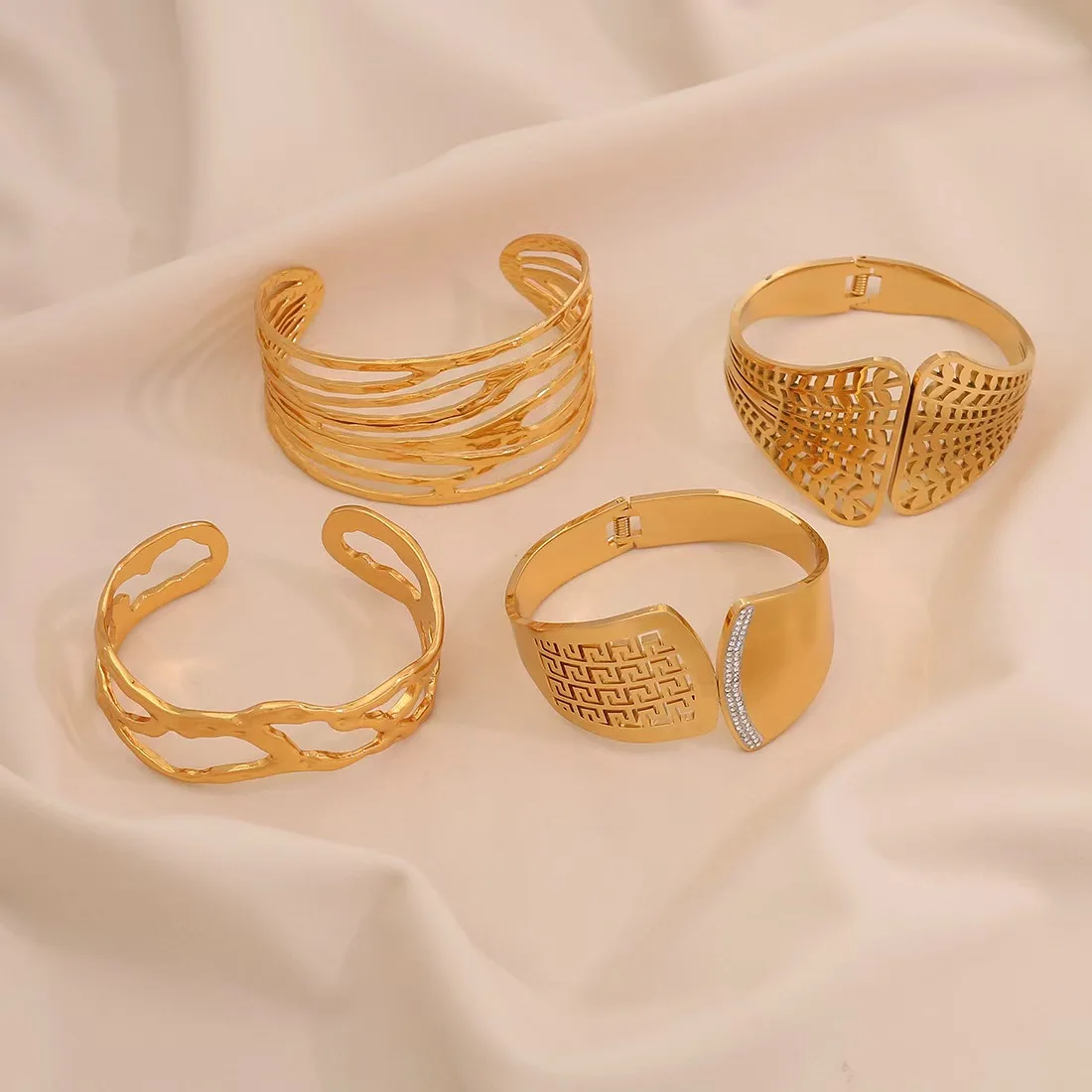 Wholesale Gold Plated Stainless Steel Women's Bangles Custom Irregular Hollow Luxury Accessories Fashion Jewelry for Women