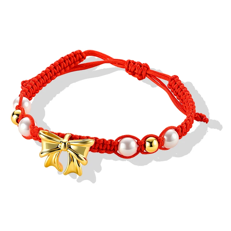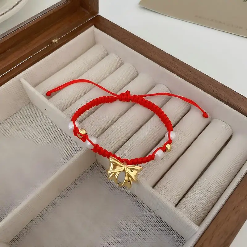 Muxcor Women's Punk-Style Red Alloy Bracelet Rope Pearl Custom Designer Big Butterfly Bow Fashion Jewelry for Gift