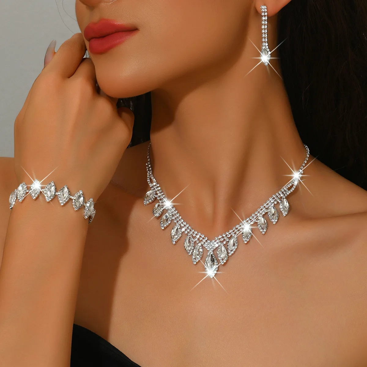 Custom Luxury Shiny Pendant Diamond Wedding Party Copper Alloy Earrings Bracelet Necklaces for Women Set Fashion Jewelry Sets