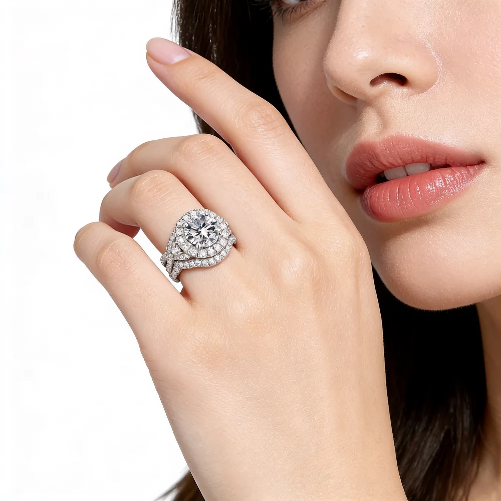 Elegant Halo Diamond Engagement Ring Set in 925 Sterling Silver Round Brilliant Cut Center Stone with Paved Accents Sparkling