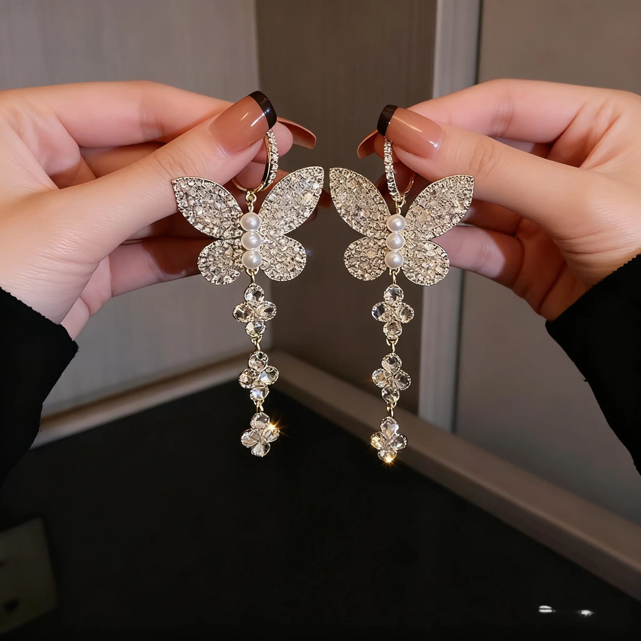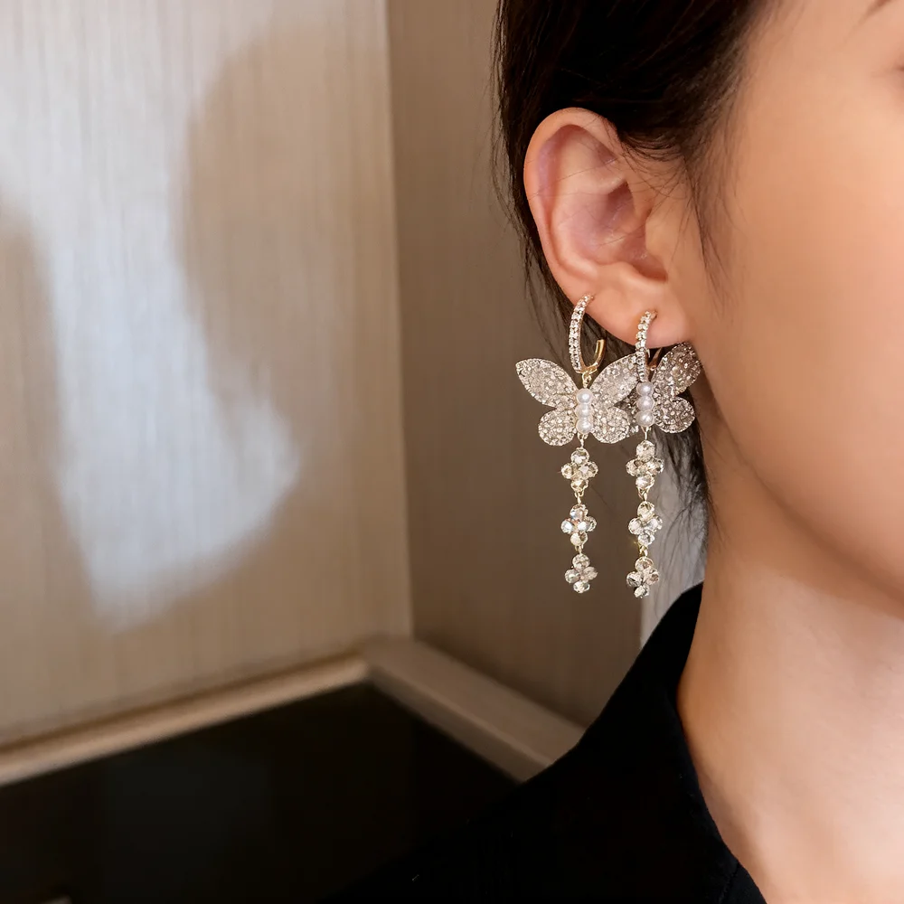 Women's Butterfly Long Drop Sparkly Earrings Elegant Tassel Earrings for Bridal Wedding Fashion Wholesale Custom Jewelry