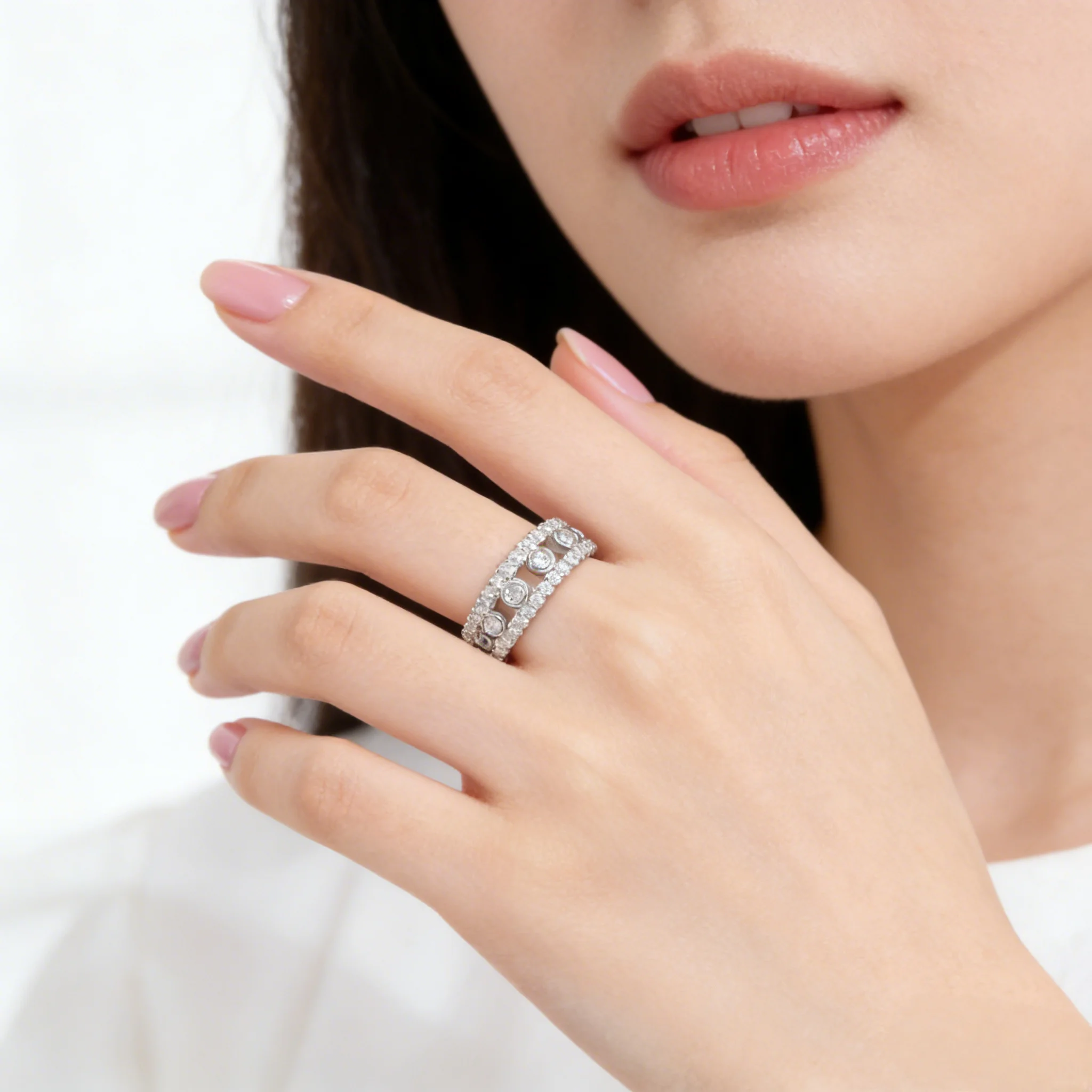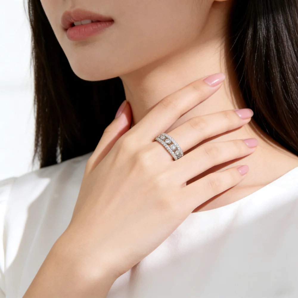 Premium 925 Sterling Silver Eternity Ring with Round Stones Full Pave Design Women Fashion Jewelry for Wedding Party