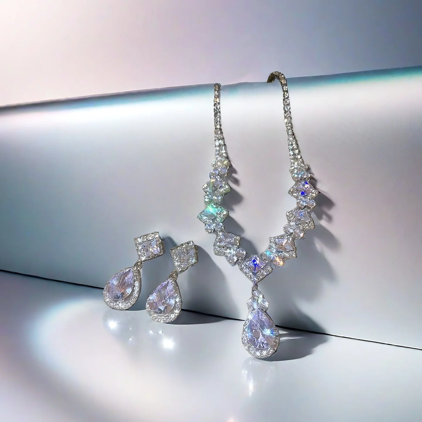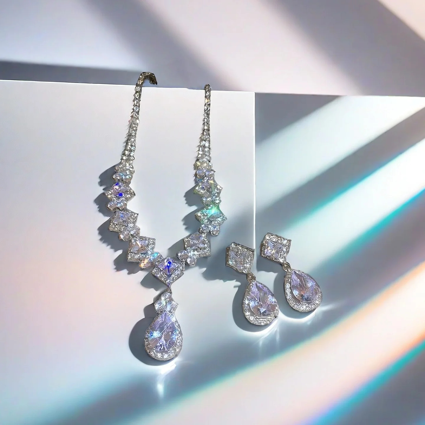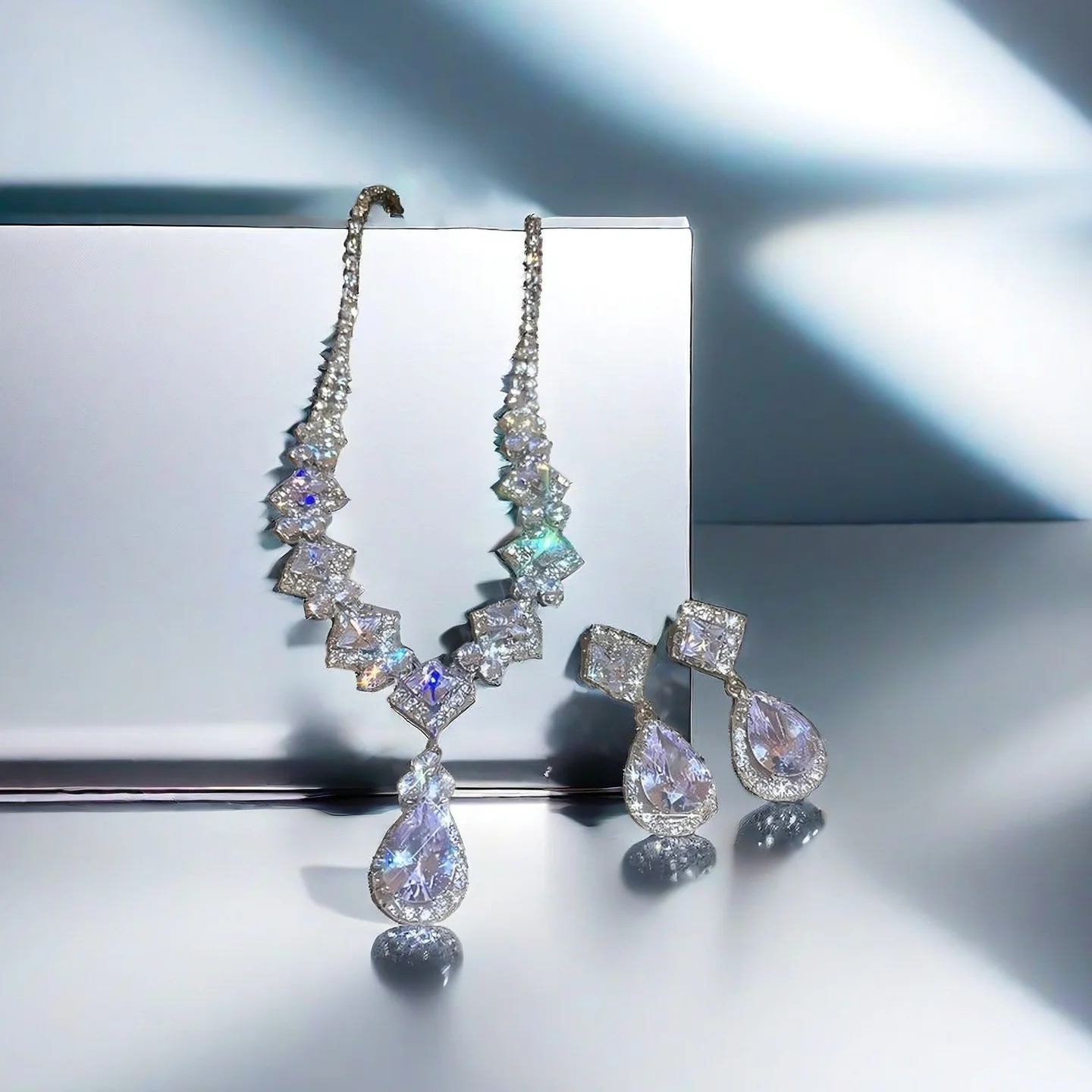 Women's Custom Designer Luxury Copper Sets Diamond Zircon Pendant Necklaces Earrings for Wedding Party Christmas Gift Jewelry