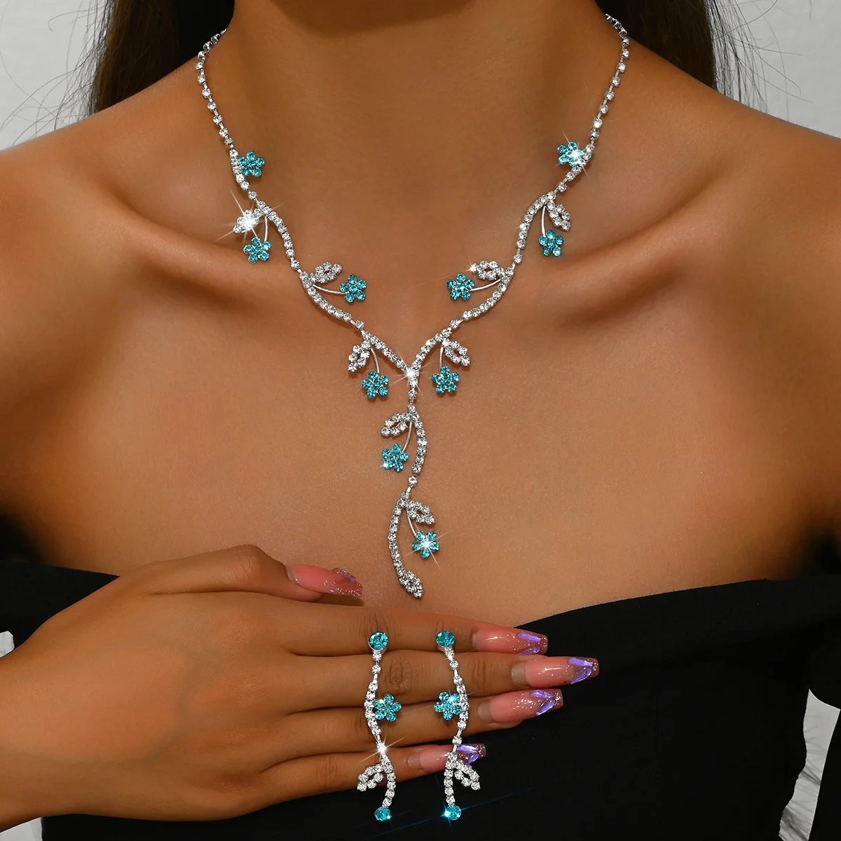 Vintage Luxury Flower Y-Shaped Elegant Charm Necklaces Diamond Designer Christmas Jewelry Sets Necklaces for Women Gift Set
