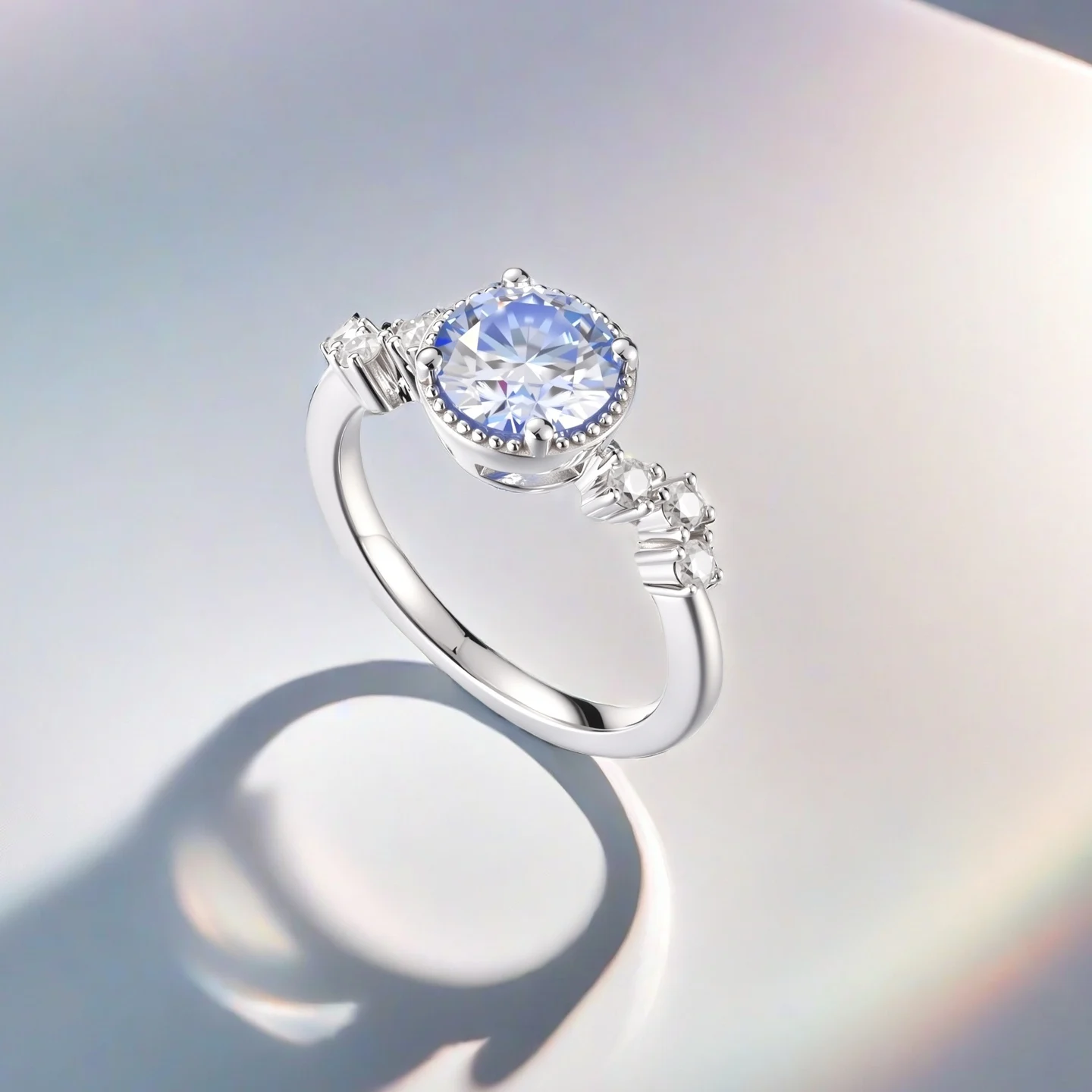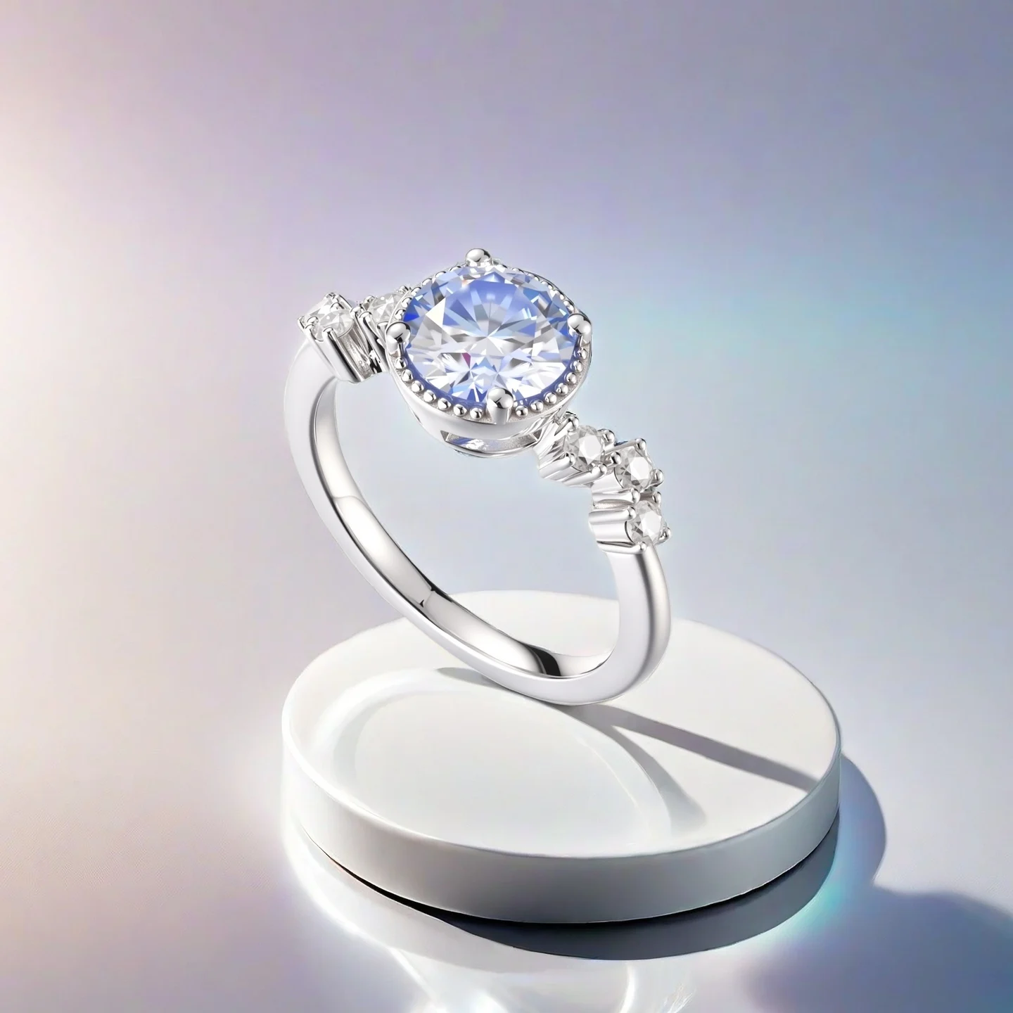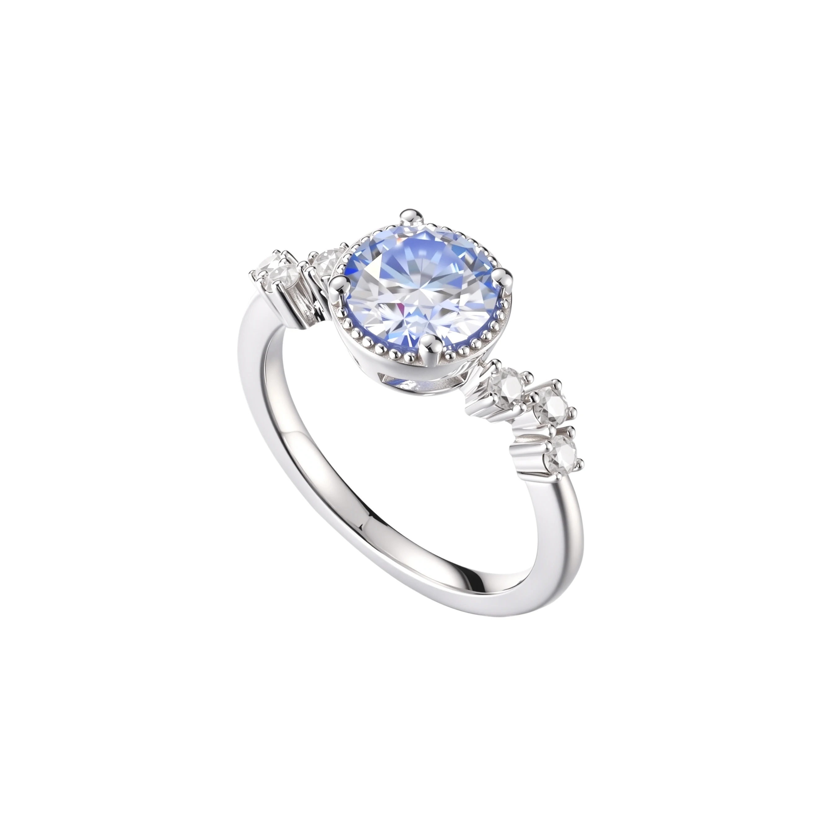 Elegant Style Rings Silver 925 Moissanite Platinum Plated Ring Klein Blue Gemstone for Women Party Wedding Rings