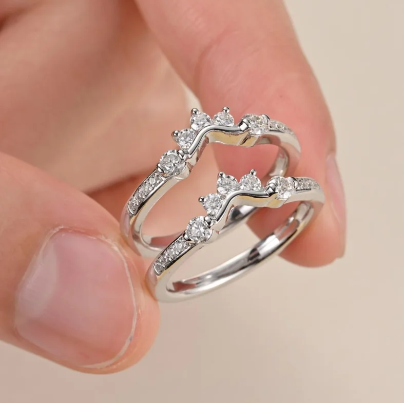 Rings Silver 925 Fashionable Moissanite Platinum Plated Ring Unique Double Stacked Gemstone Rings Fancy Jewellery for Ladies