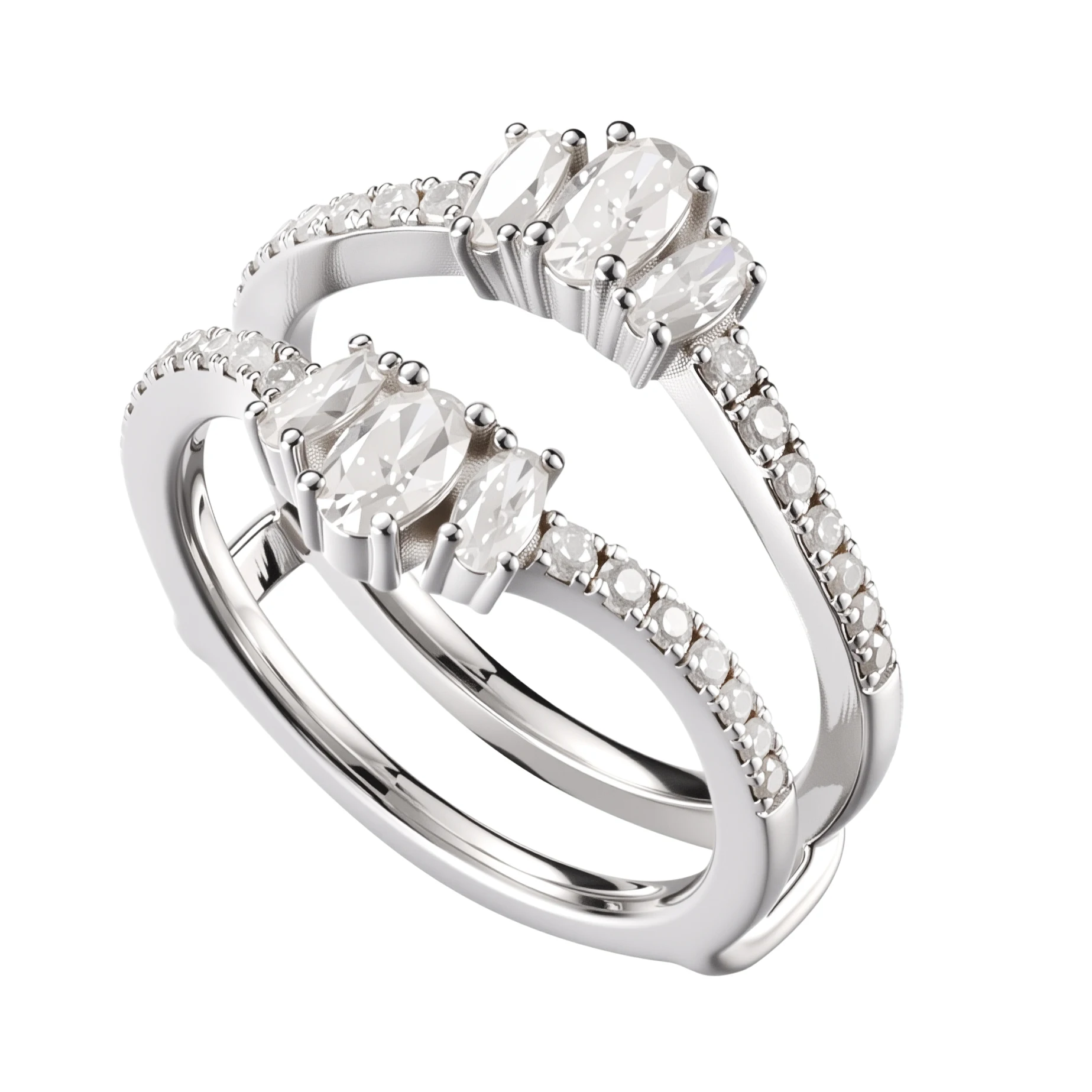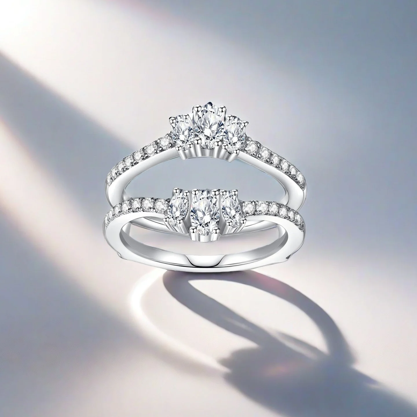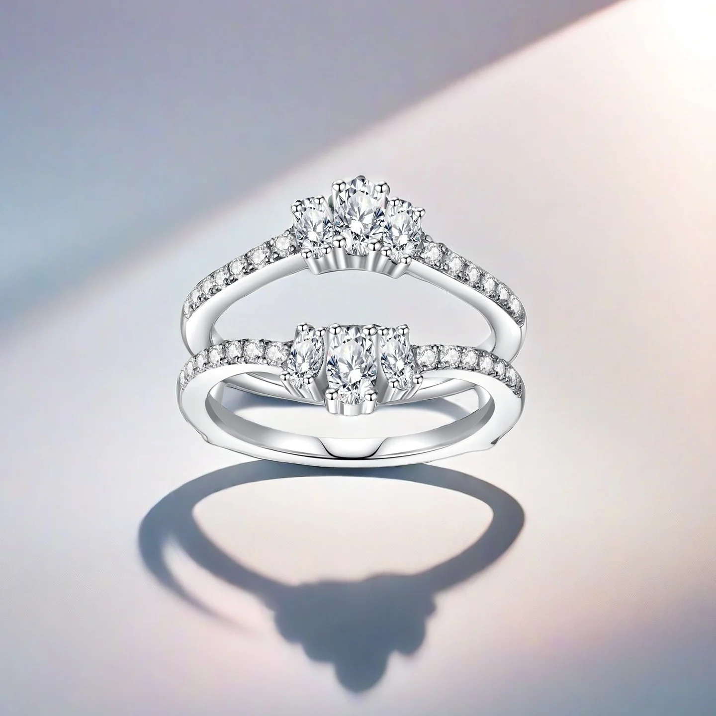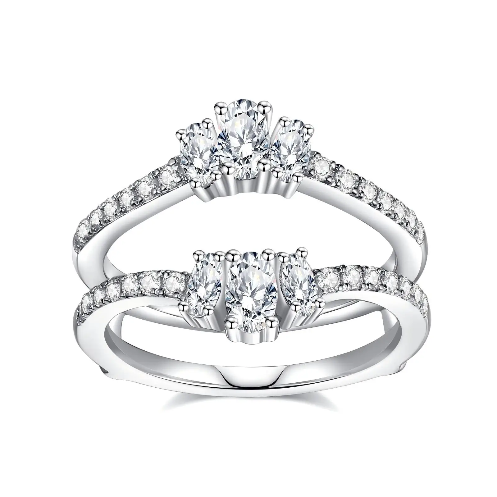 Fashionable 925 Sterling Silver Moissanite Platinum Plated Ring Unique Double Stacked Gemstone Rings Fancy Jewellery for Ladies
