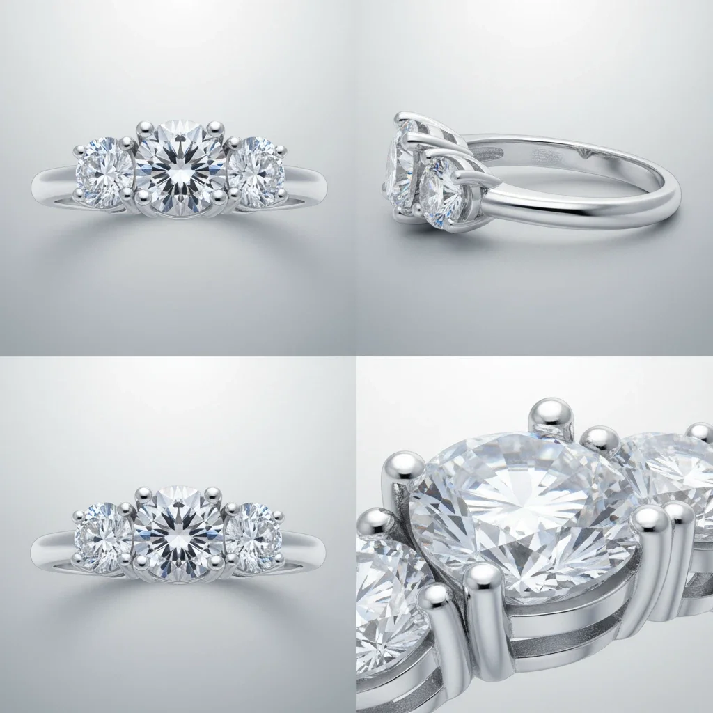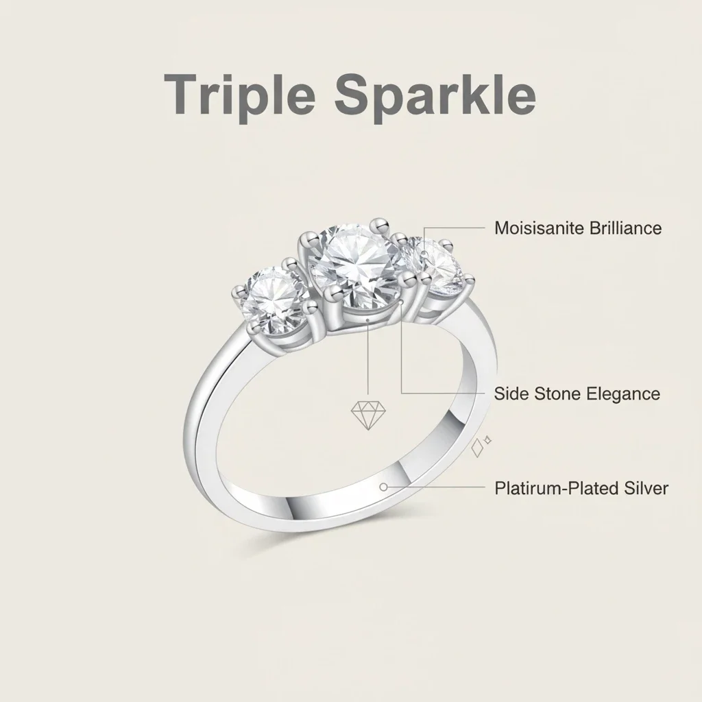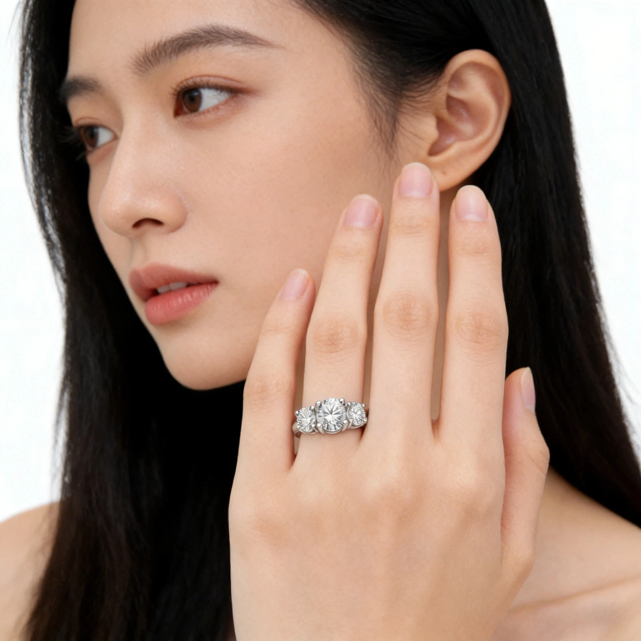 Women Custom Rings Silver 925 Diamond Moissanite Classic Three Stone Silver Morganite Ring Wedding Fine Jewelry Rings