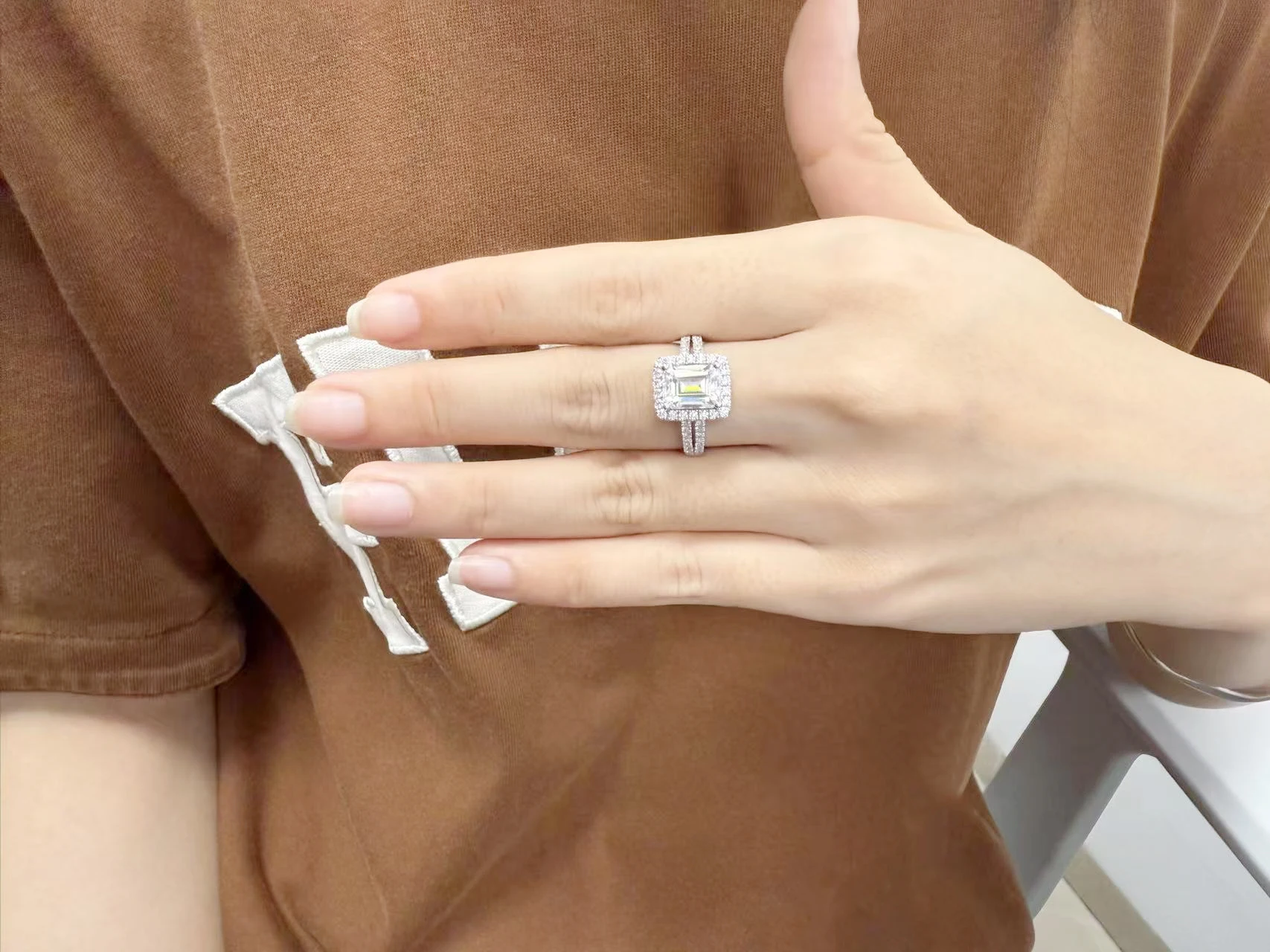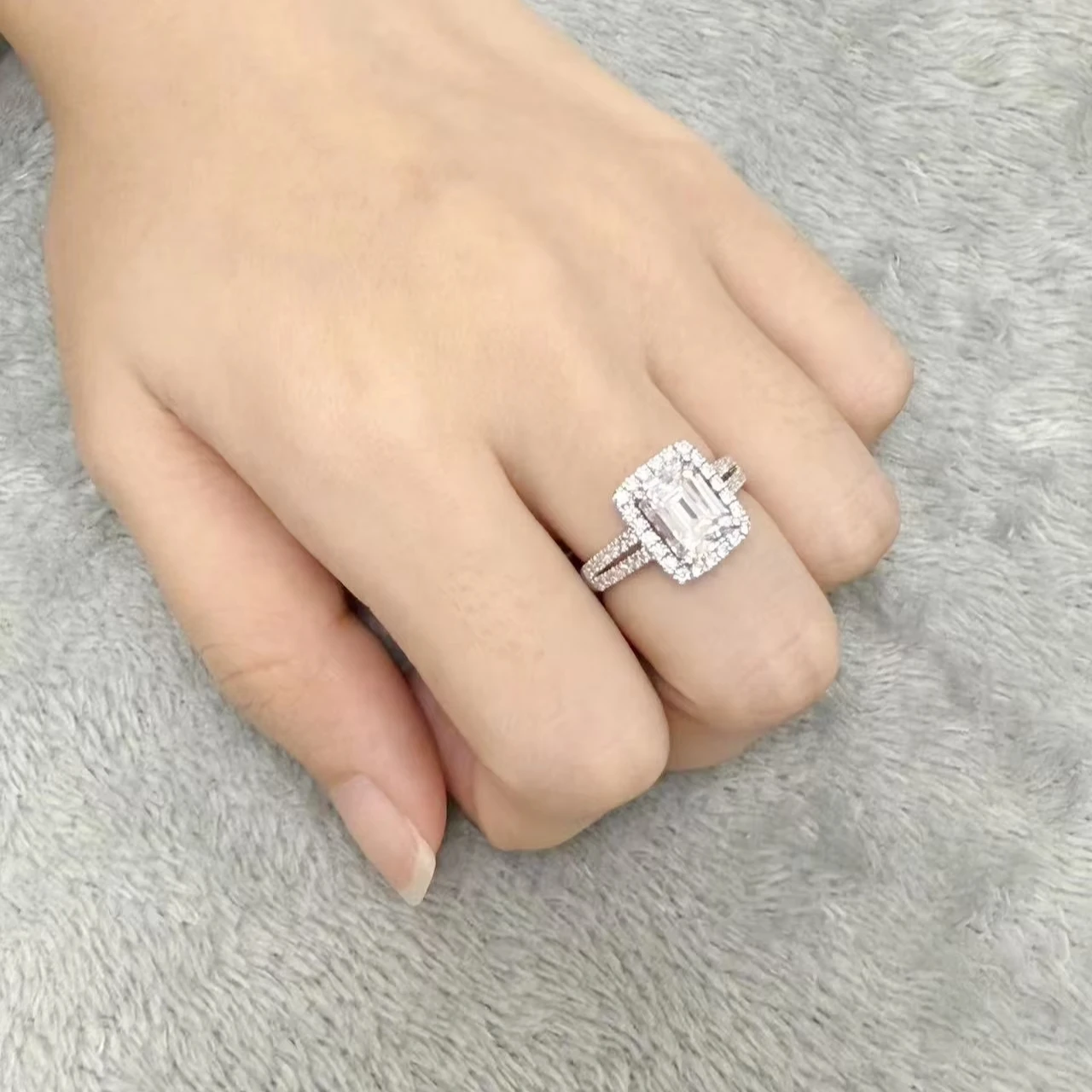 Custom S925 Sterling Silver Plated Platinum Ring Large Moissanite Luxury Sparkly Rings for Women Fine Wedding Engagement Jewelry