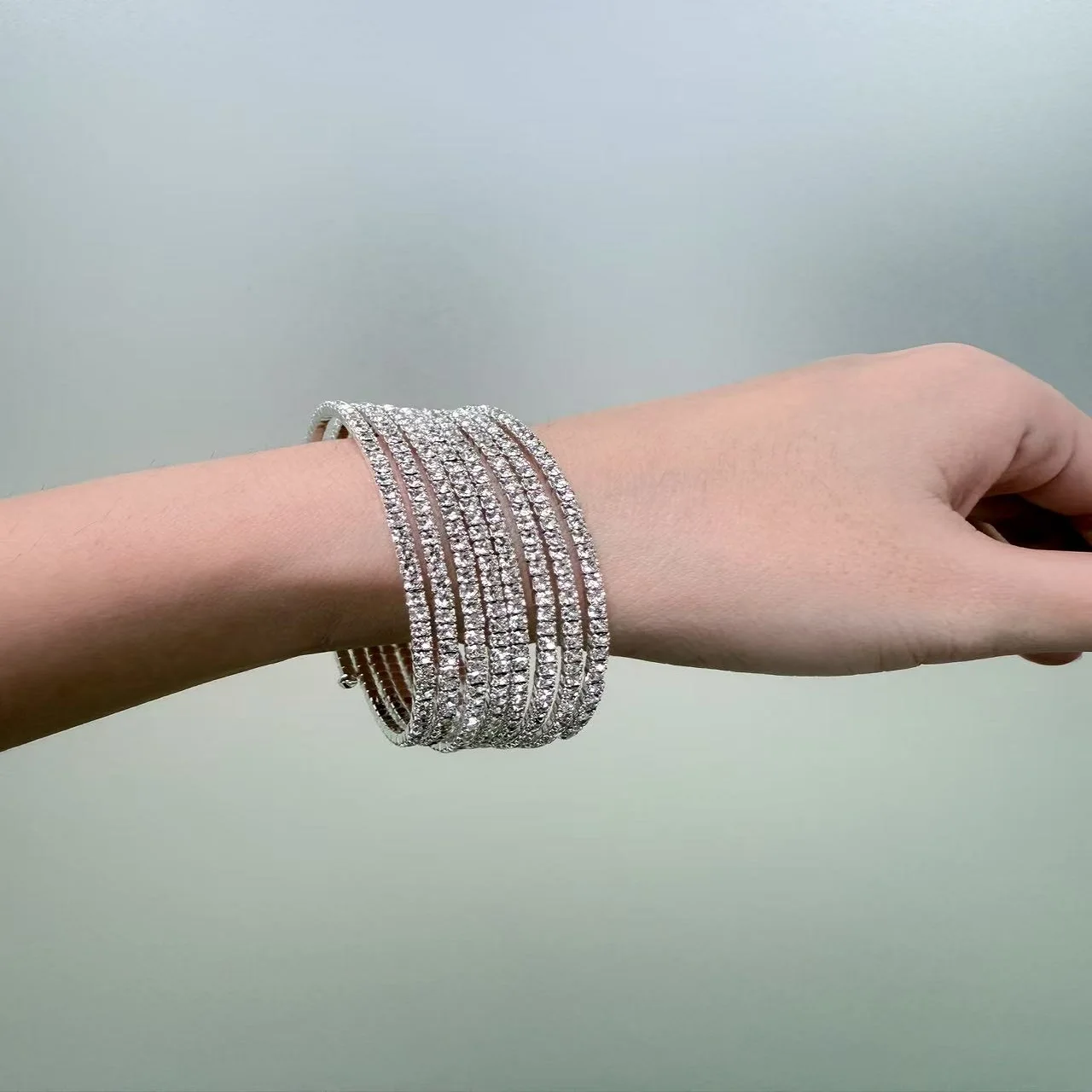 High-quality New Luxury Fashion Multi-layer Stacked Silver Shining Starry Sky Temperament Female Cuff Bracelet Bangles