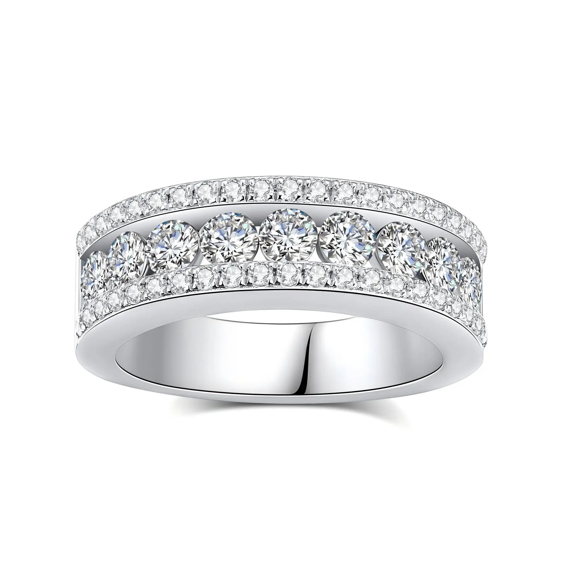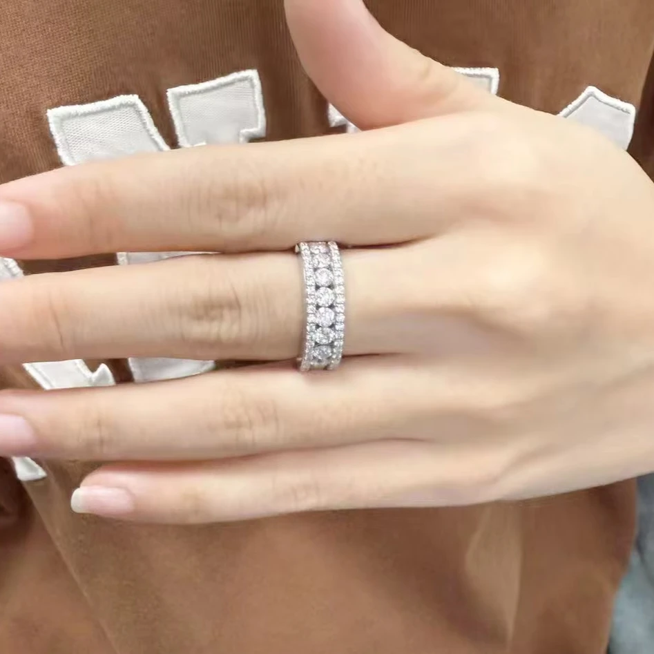 Women's Men's Fine Jewelry S925 Sterling Silver Eternity Rings Moissanite Luxury Brilliance Gemstone Rings for Wedding Marriage