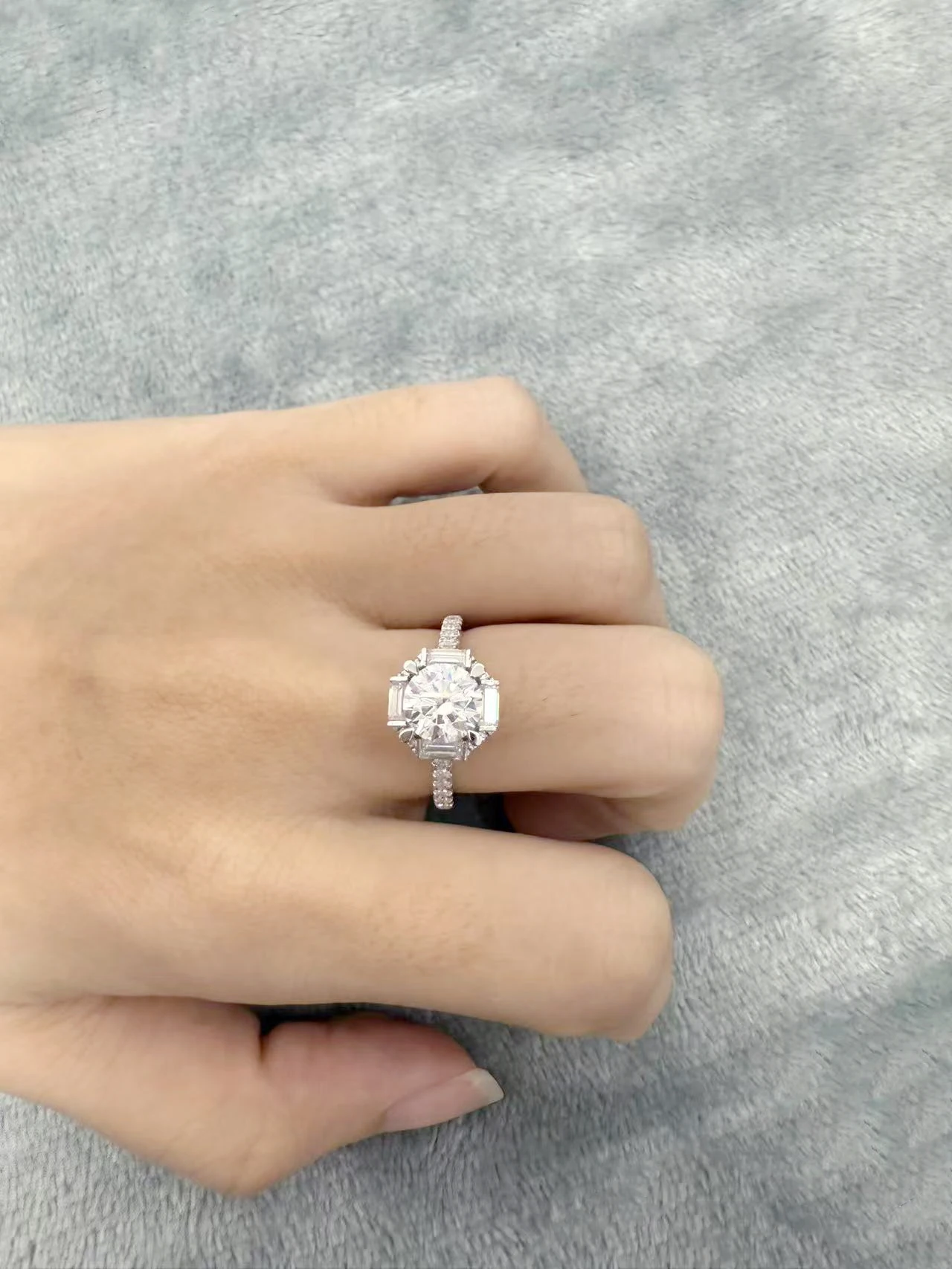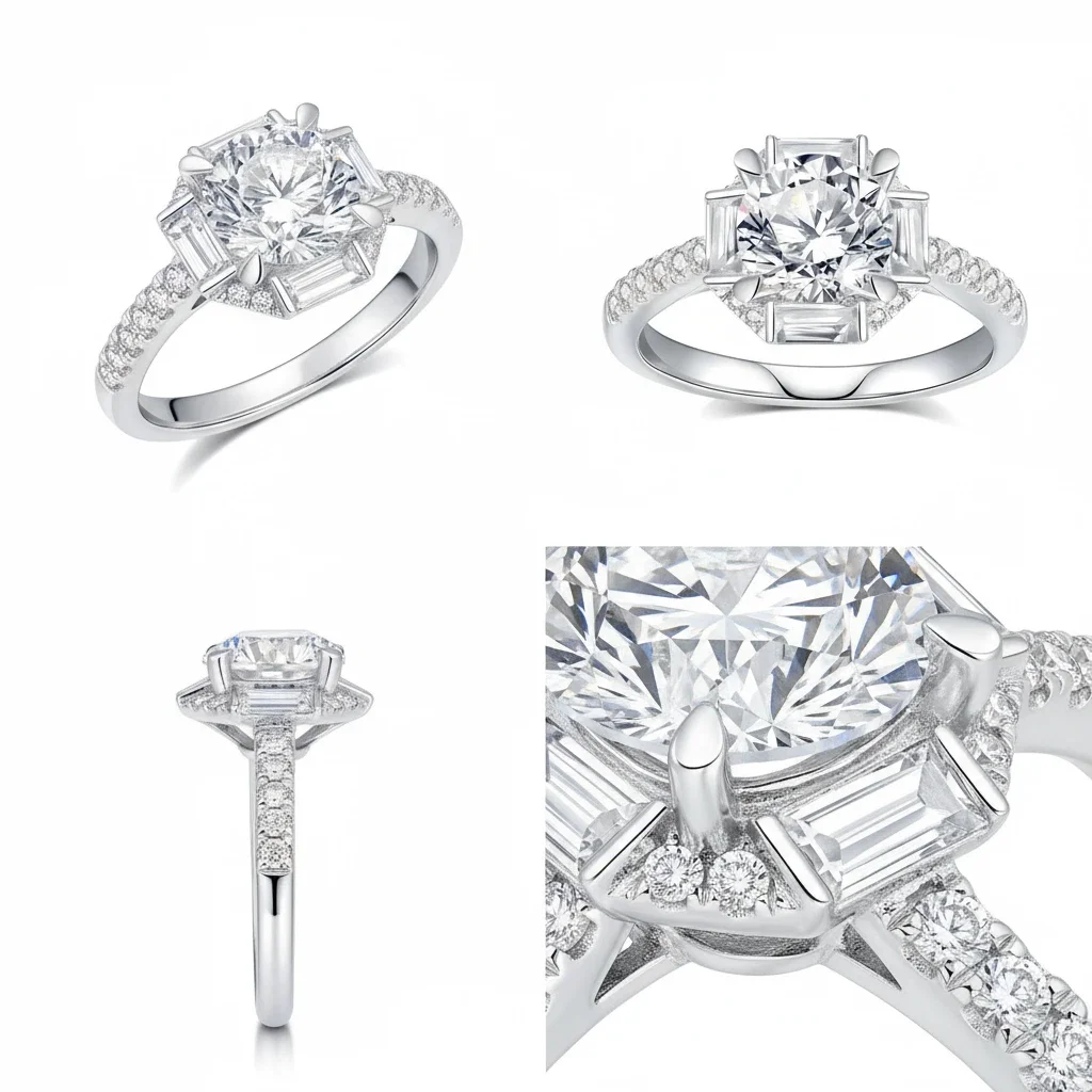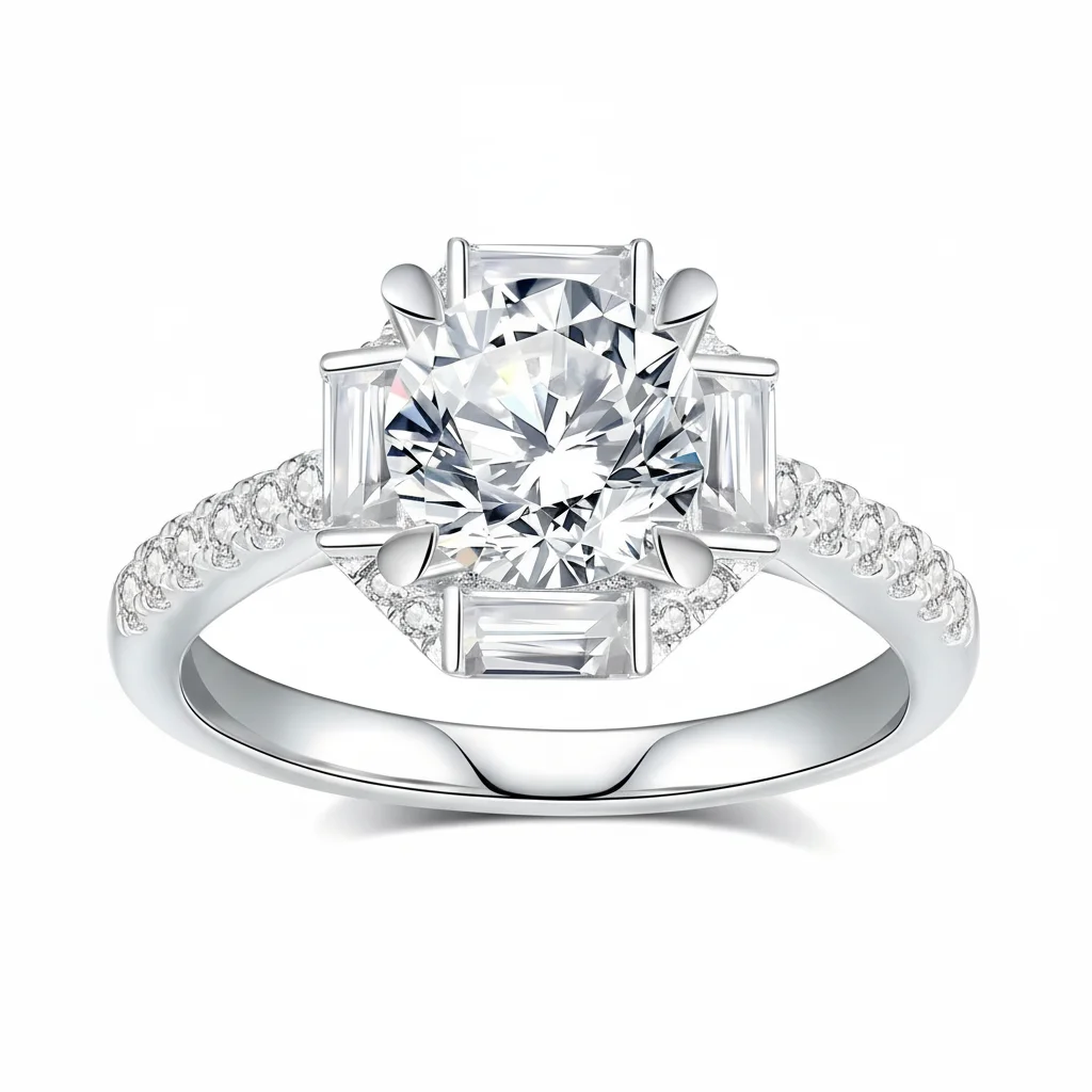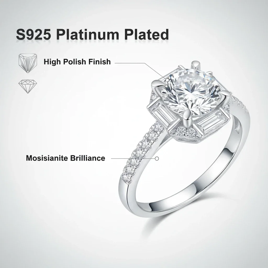 Fine S925 Sterling Silver Platinum Plated Classic Prong Setting Moissanite Wedding Rings Wholesale Supplier OEM/ODM Custom