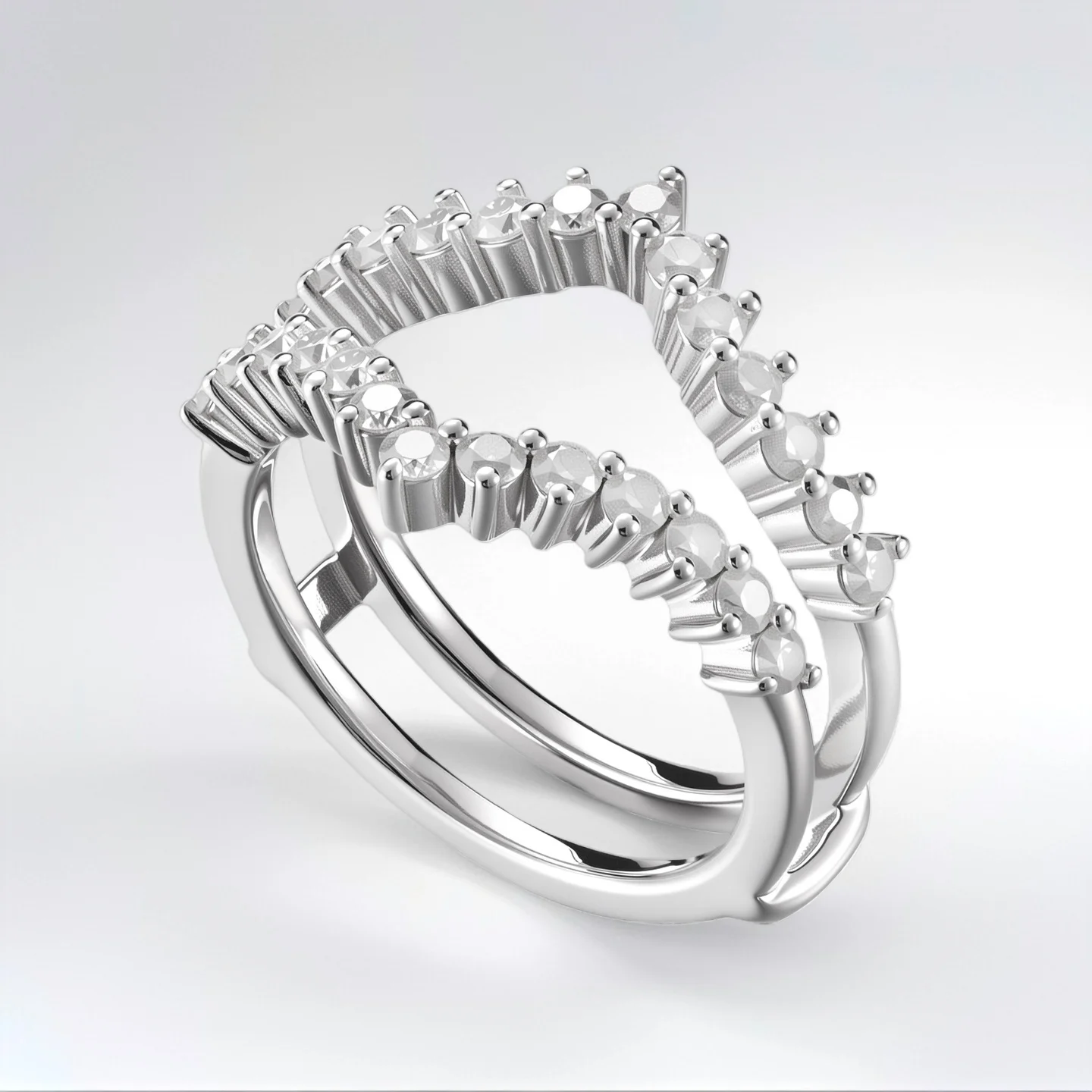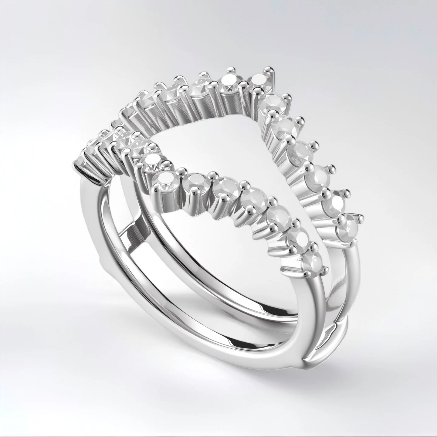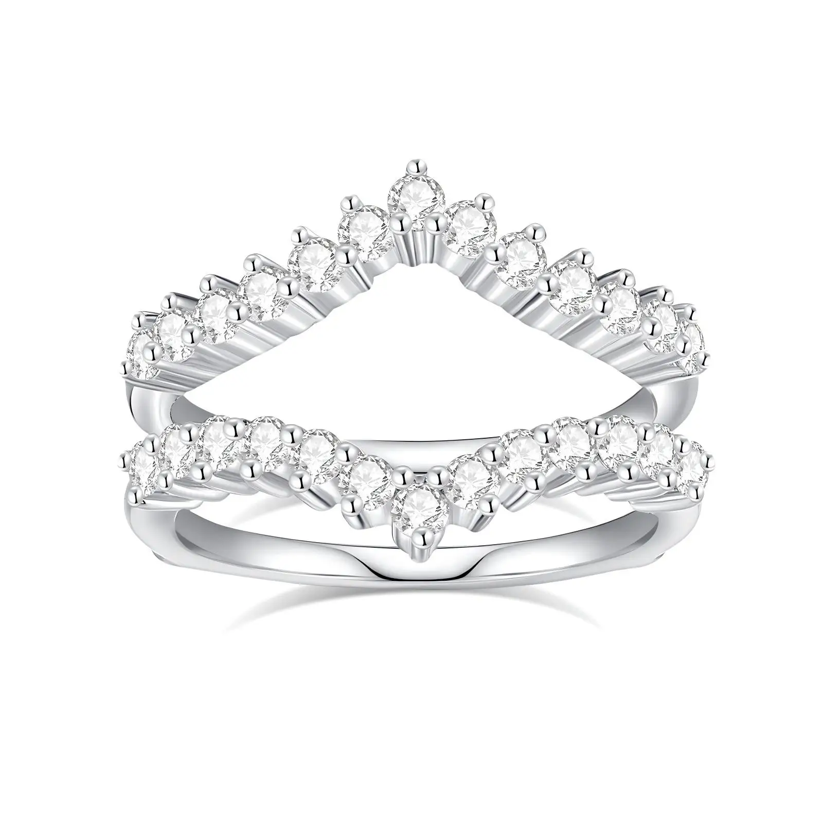 2-Piece Princess Crown Ring Set for Women Silver Plated Stackable Bridal Rings Sparkling Wedding Anniversary Jewelry Fashion