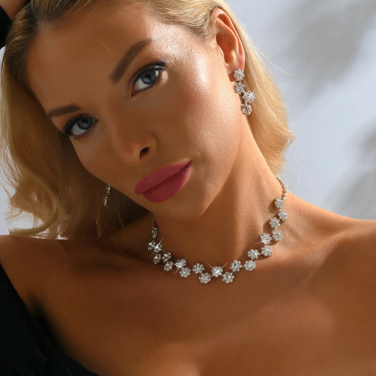 Custom Luxury Diamond Pendant Jewelry Set Women Dainty Fashion Layered Stacked Chain Bracelet Necklaces for Weddings