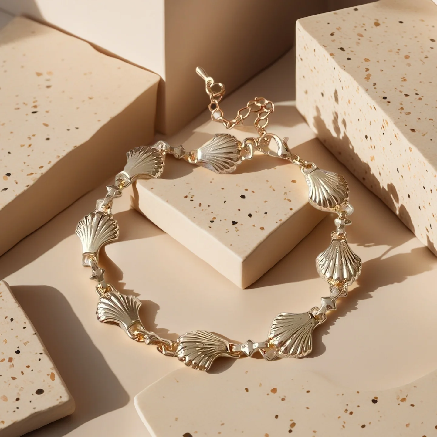 Custom Designer Gold-Plated Alloy Chain Link Bracelet Shell-Patterned Fashion Jewellery for Women Trendy Fancy Accessory