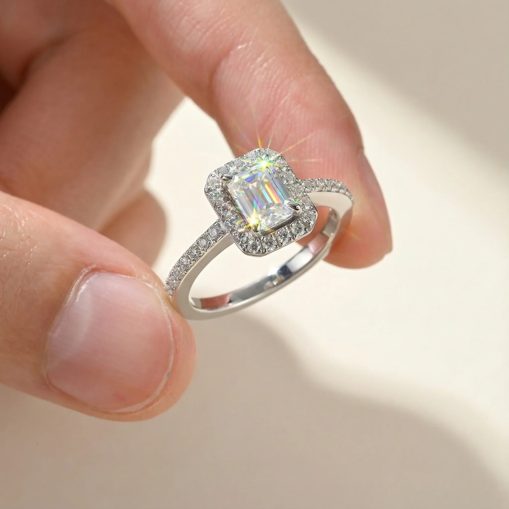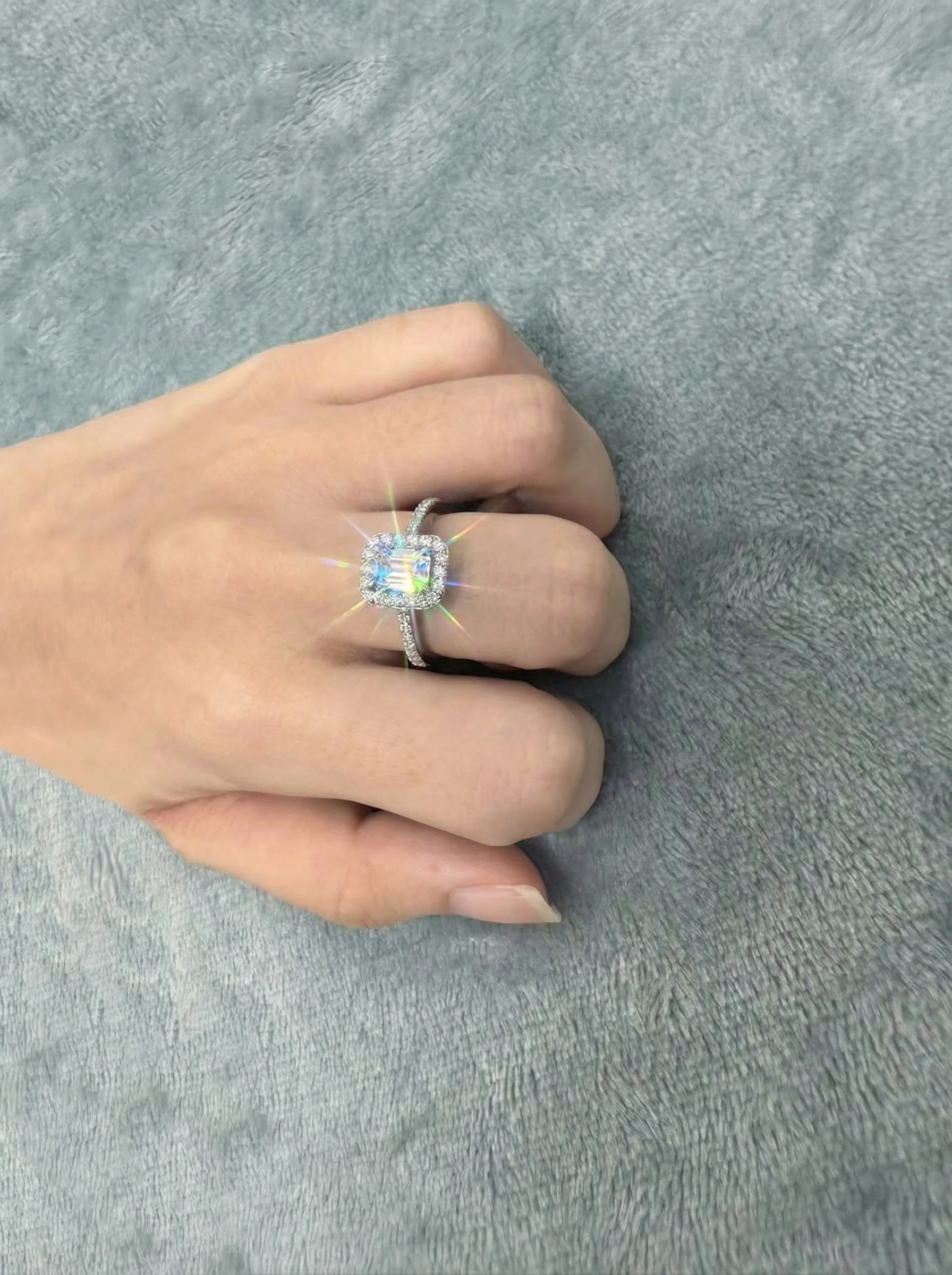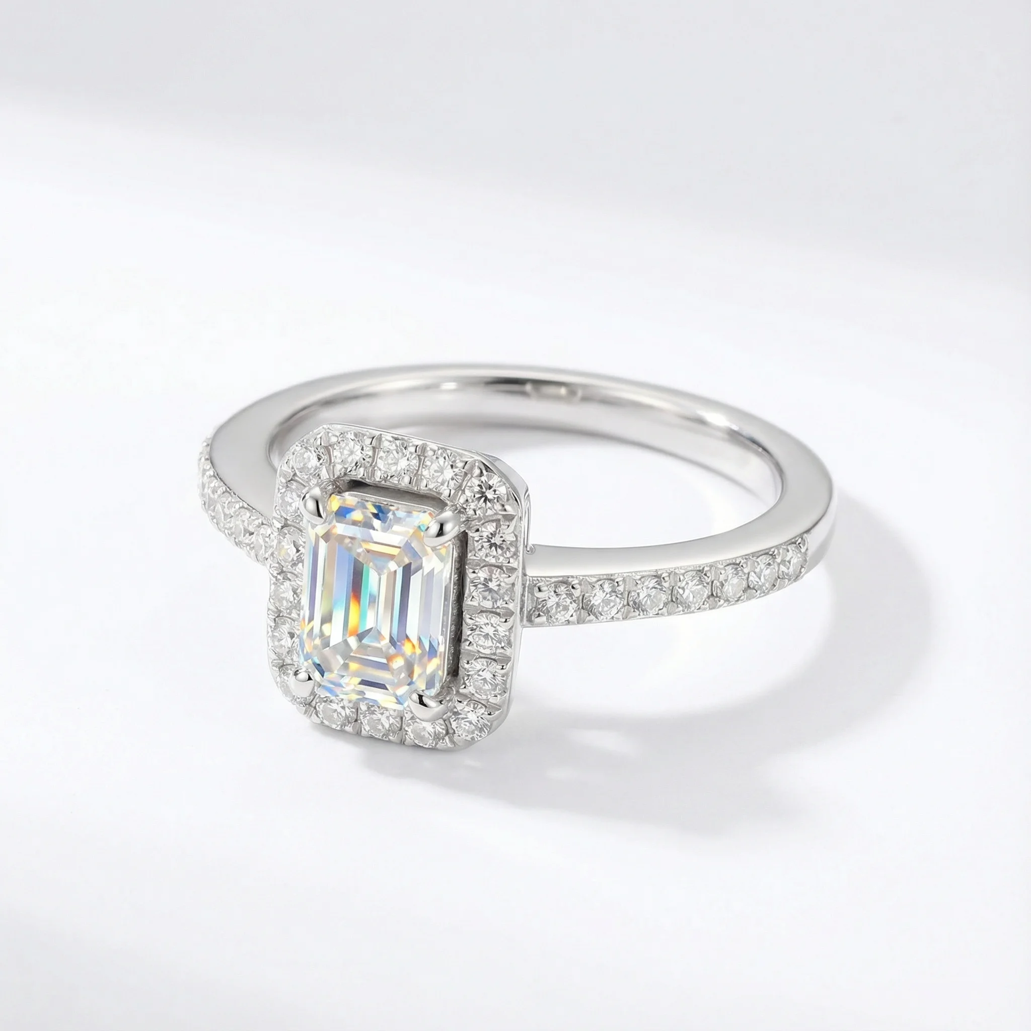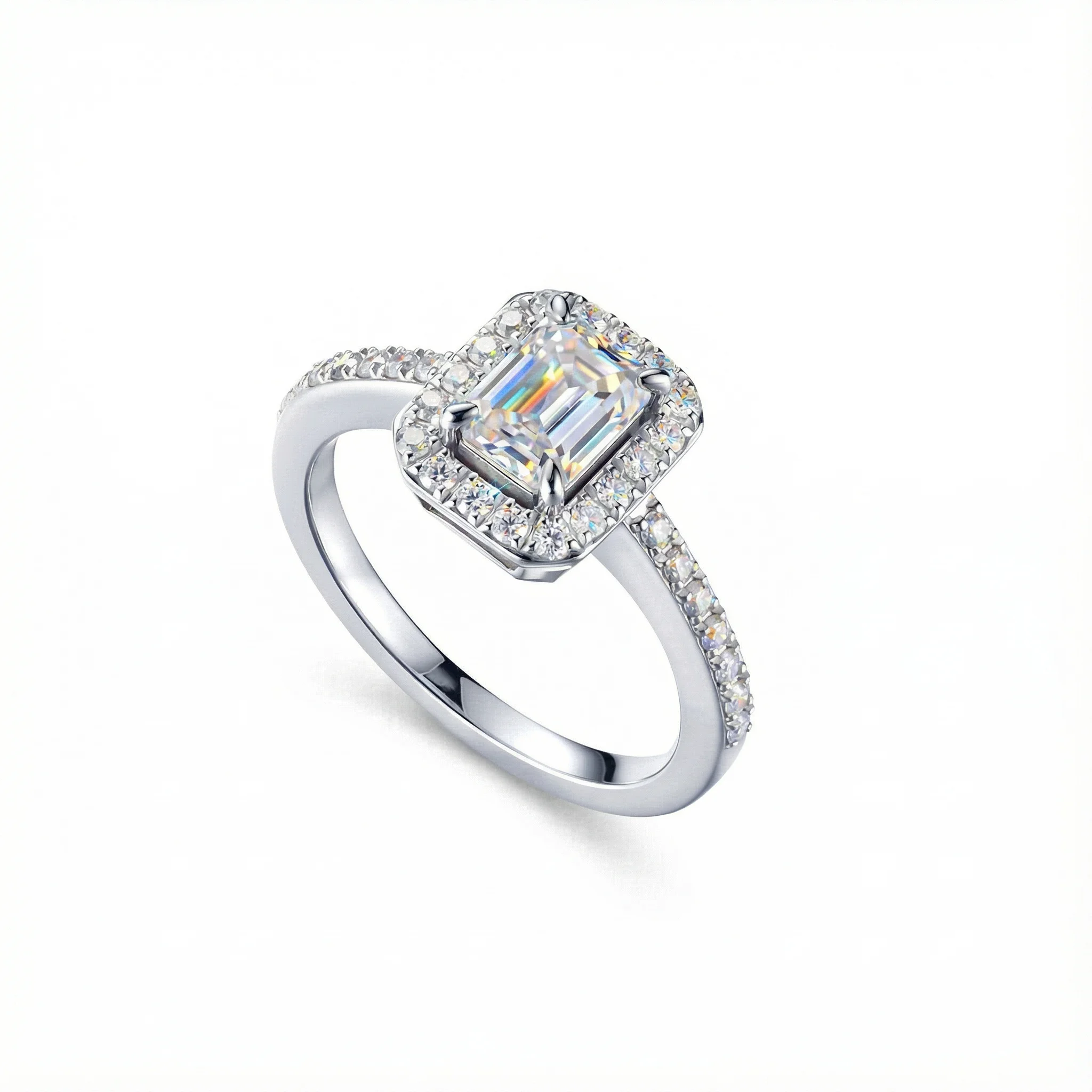 Luxury Shiny Emerald Cut Moissanite Rings Fine S925 Sterling Silver Platinum Plated Prong Set Classic Women Wedding Custom Logo