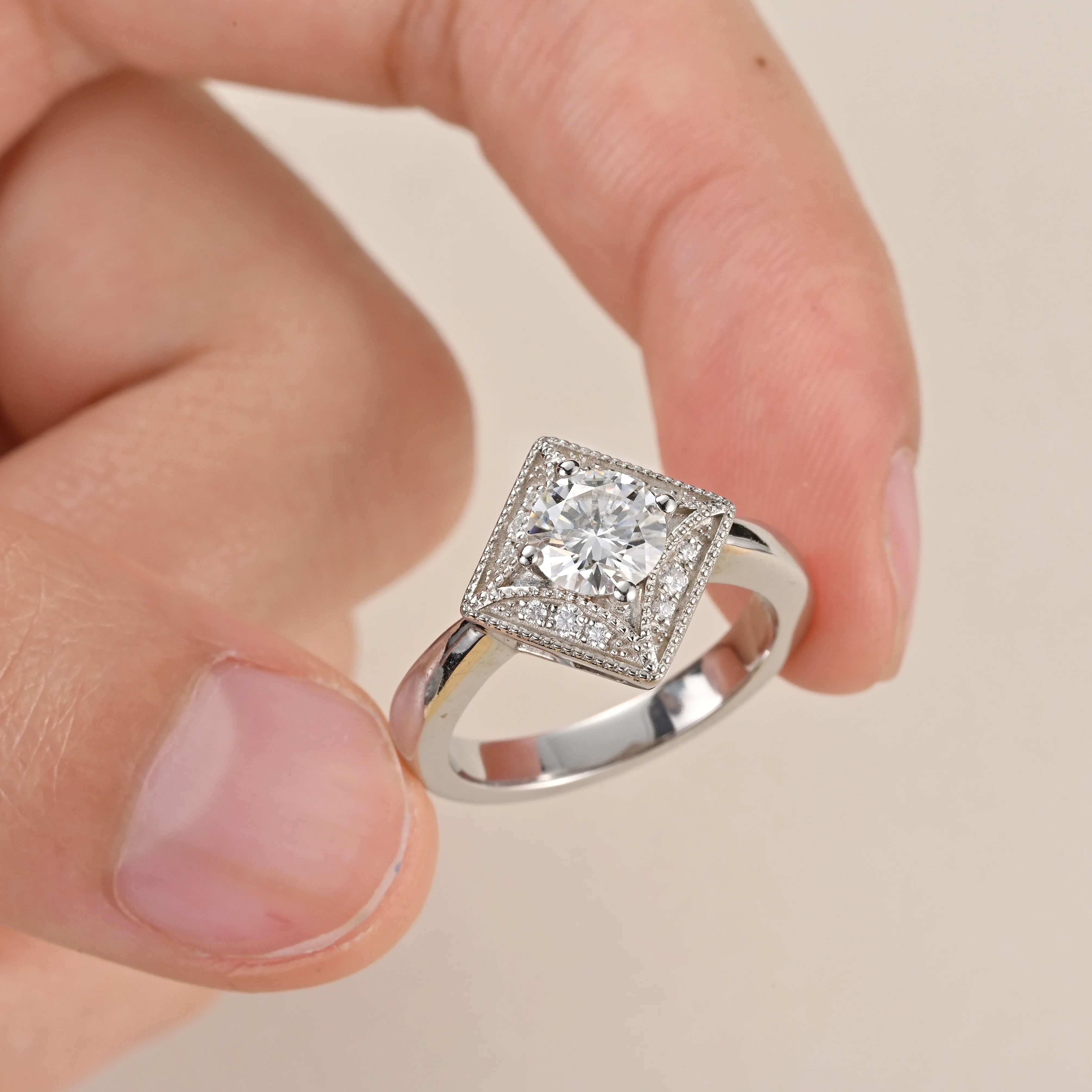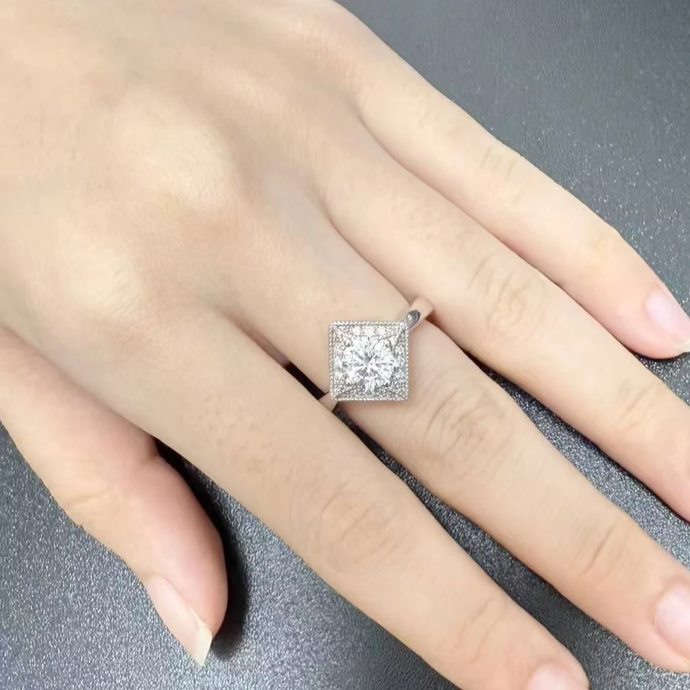 Rhombus-shaped S925 Sterling Silver Plated Platinum Rings Large Moissanite Luxury Sparkly Rings for Wedding Fine Jewelry Rings