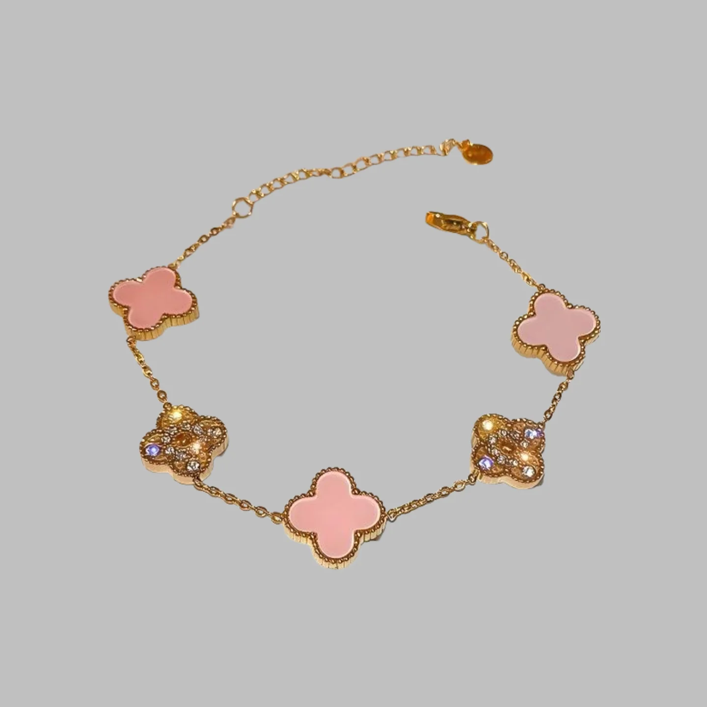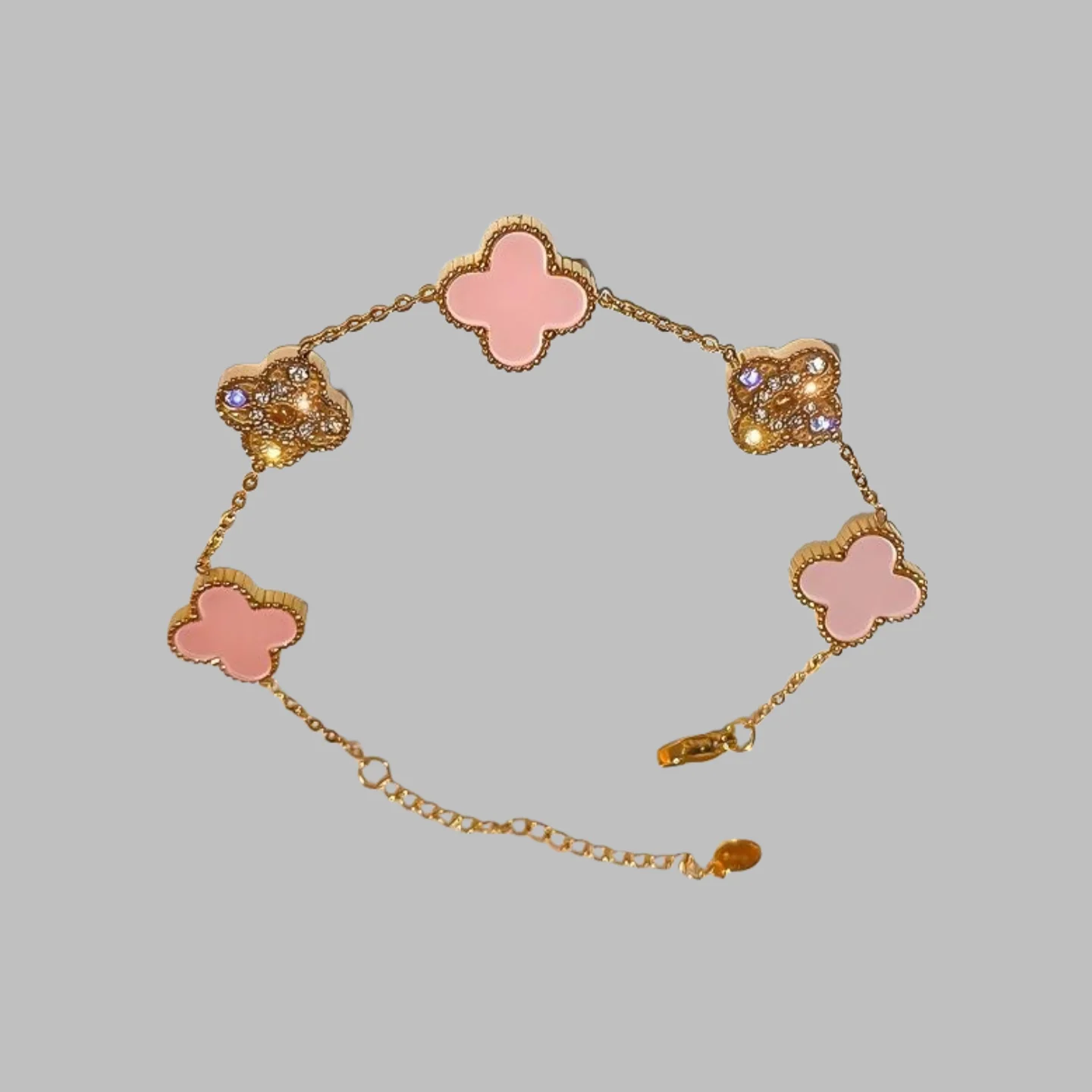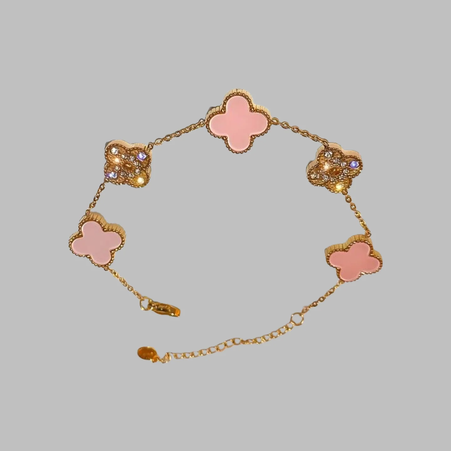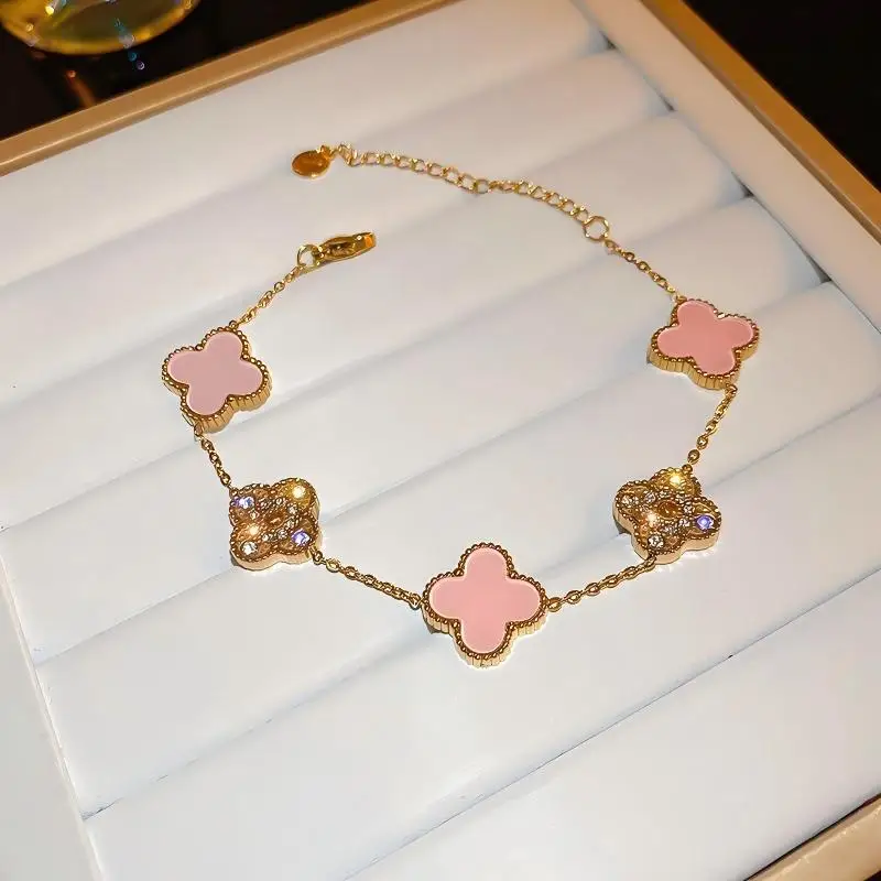 High-End Double-Sided Side Groove Five-Leaf Clover Diamond-Encrusted Stainless Steel for Bracelet Fashion Chain & Link Bracelets