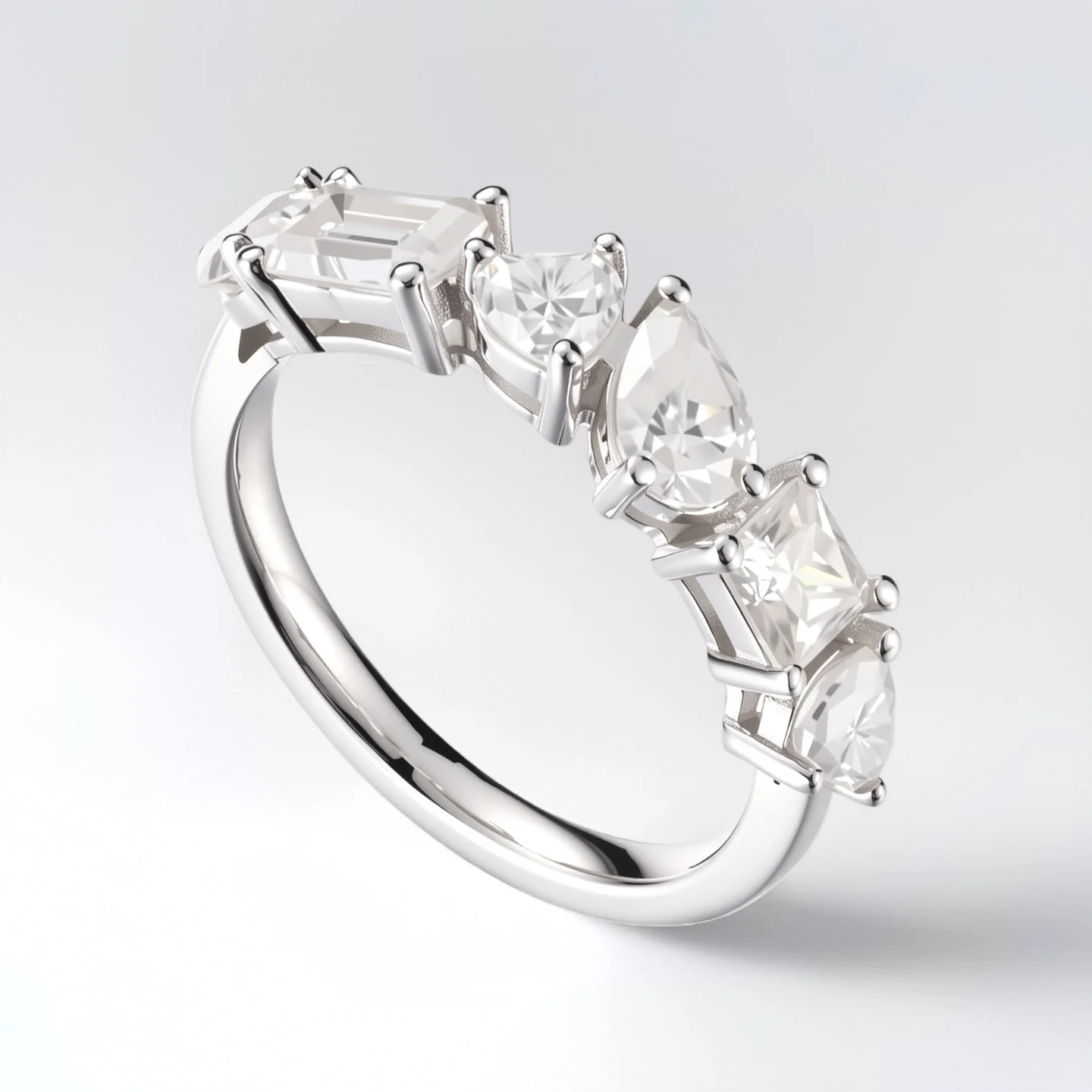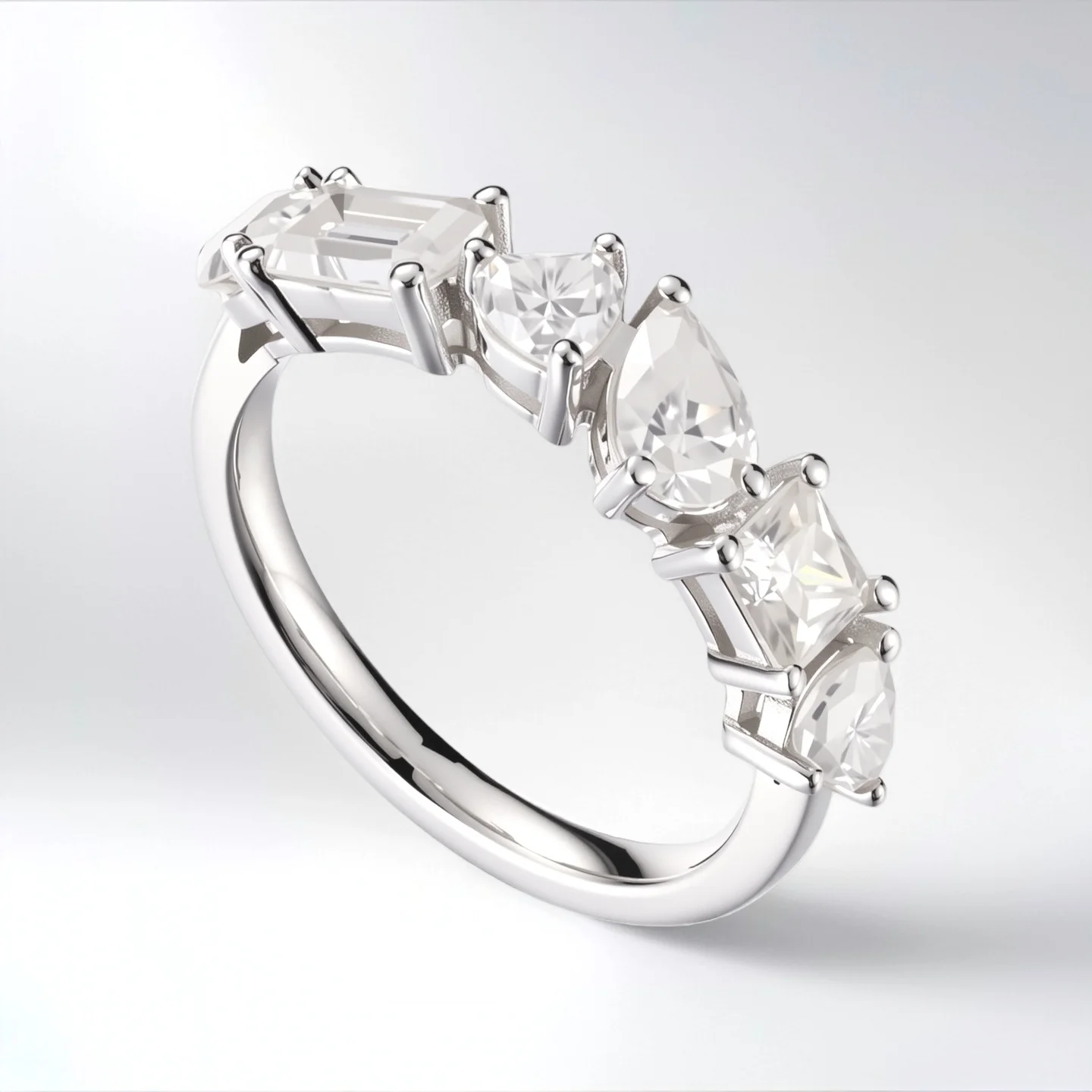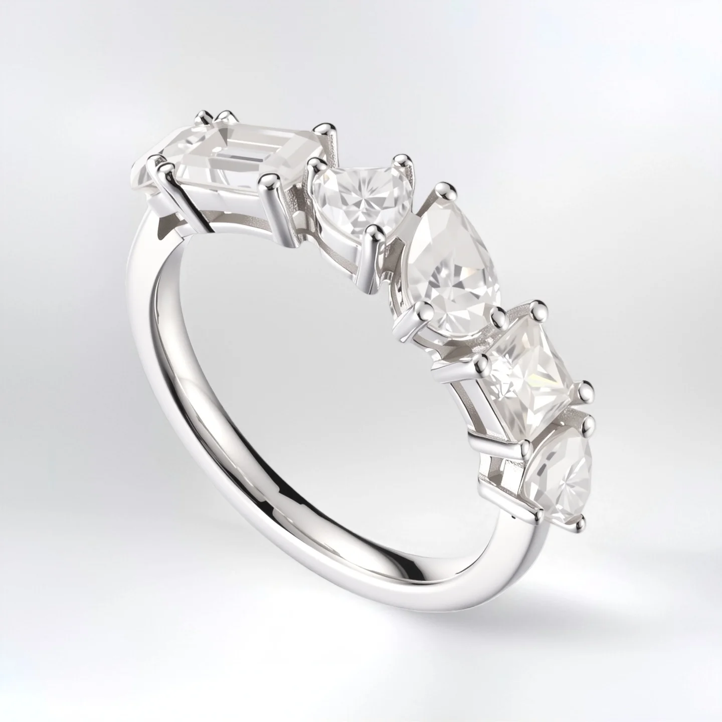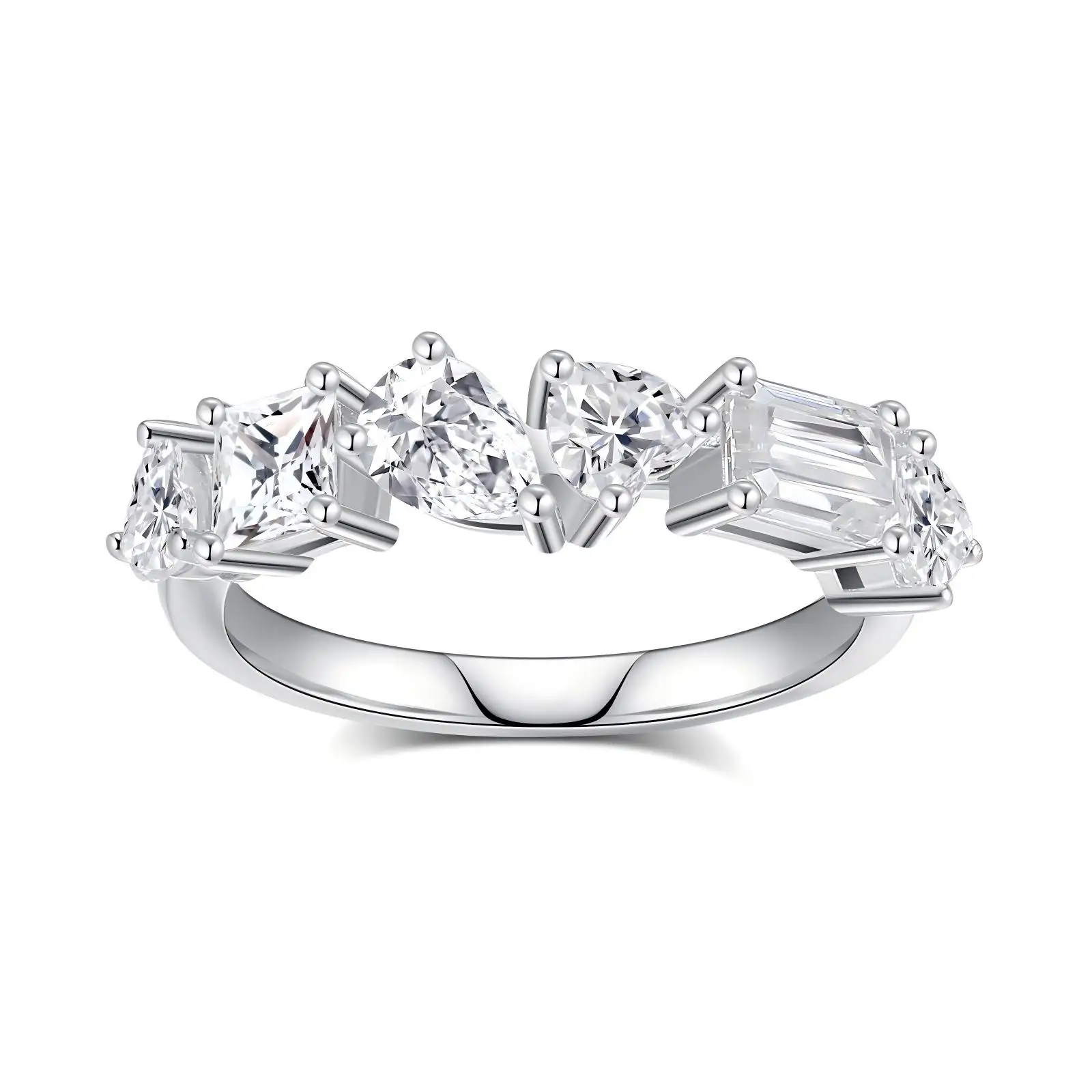 Luxury Multi Cut Cocktail Ring in 925 Sterling Silver Marquise Emerald Cut Simulated Statement Ring for Women Wedding Party