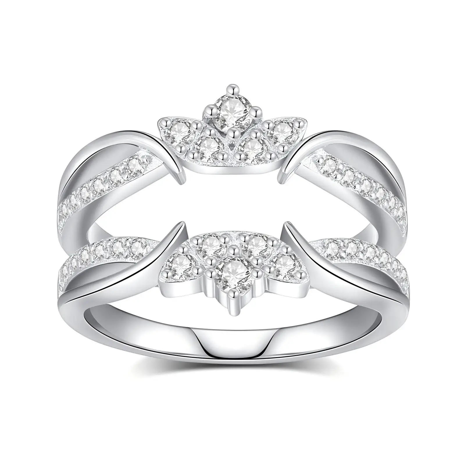 Elegant Double-Band Crown Design Ring Embellished Silver Plated Jewelry for Women Wedding Engagement Promise Ring Fashion
