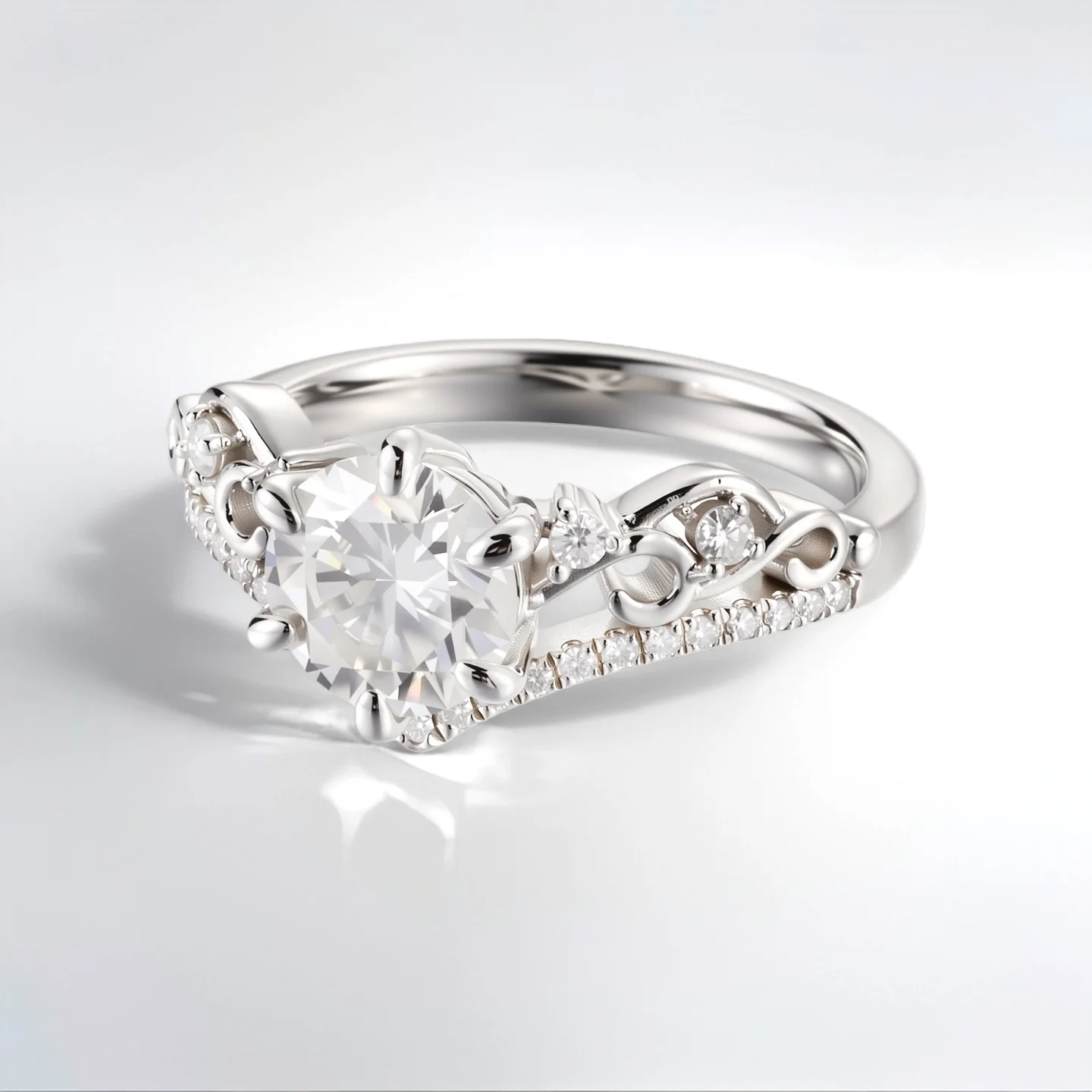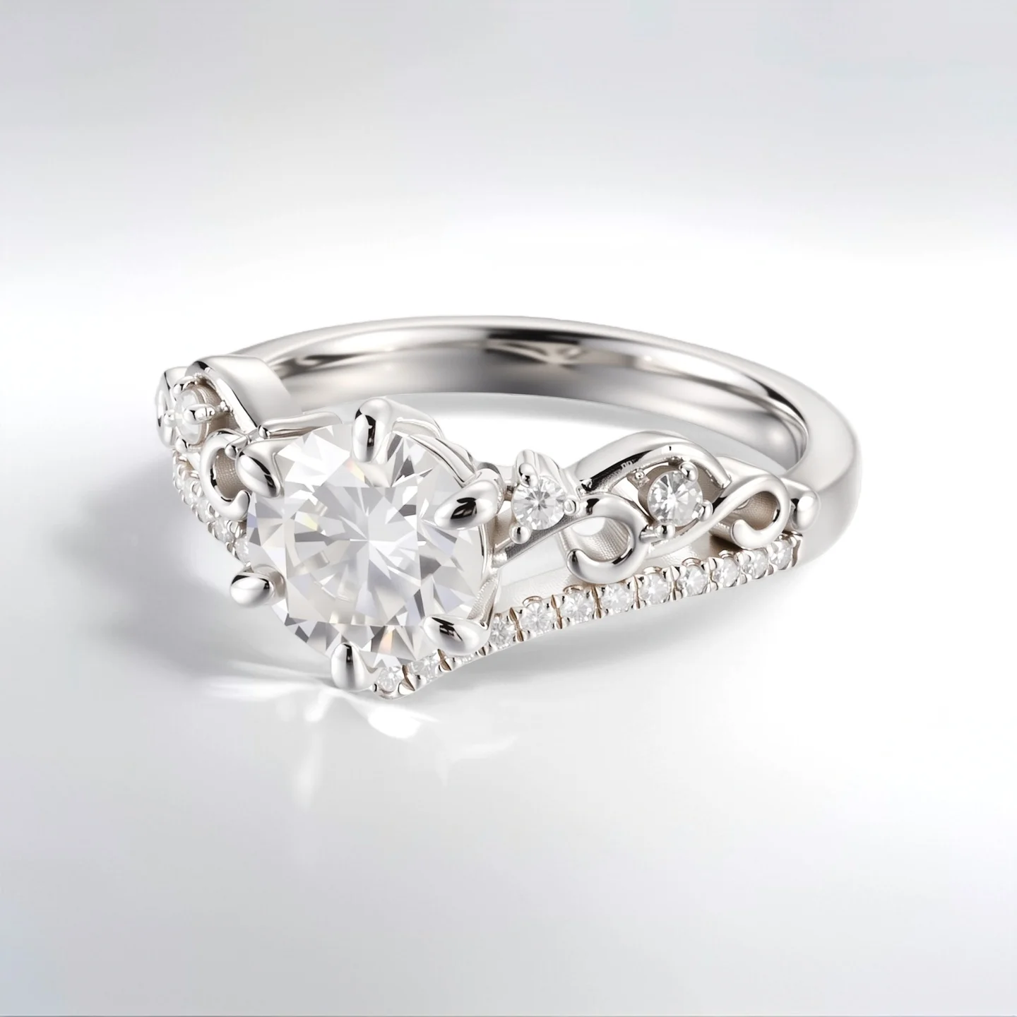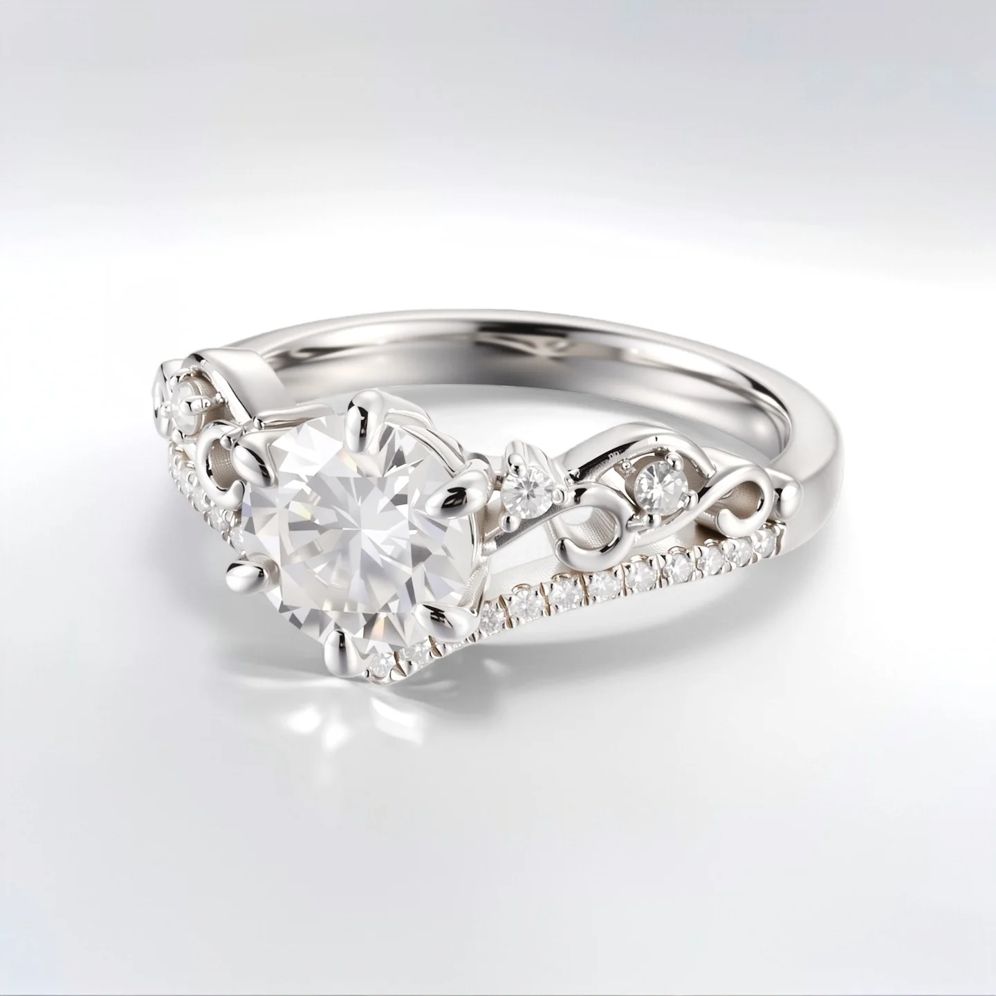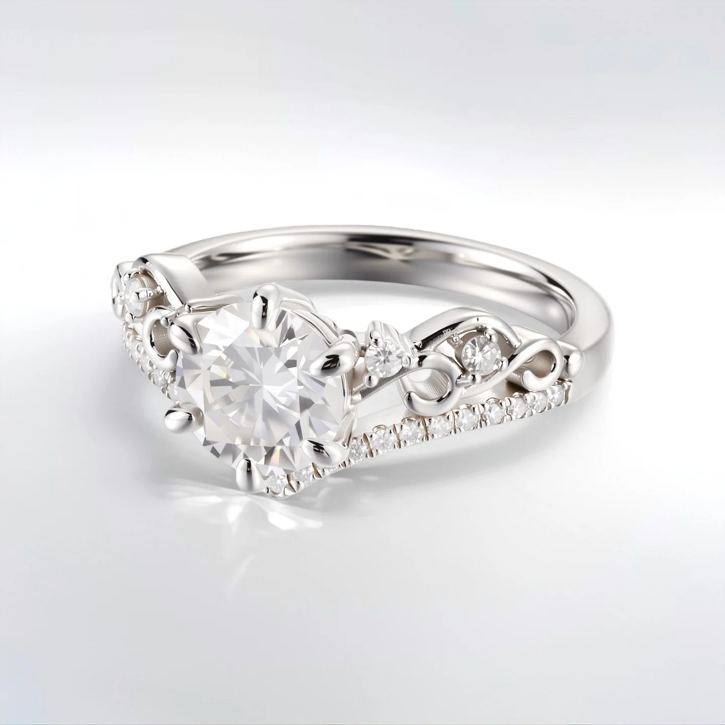 Vintage Style 4-Prong Solitaire Engagement Ring in 925 Sterling Silver Round Cut Center Stone with Intricate Scrollwork Accent