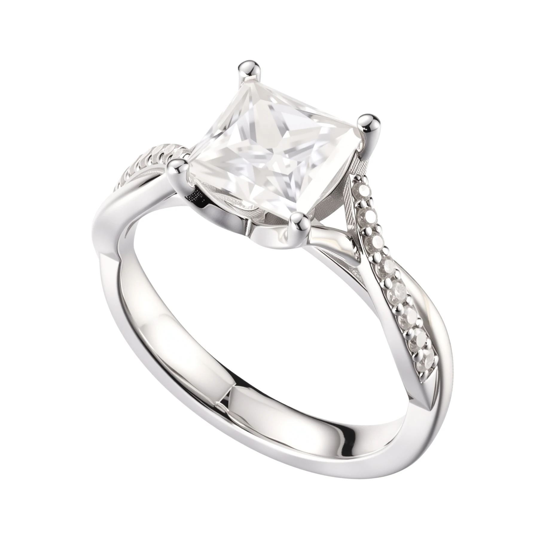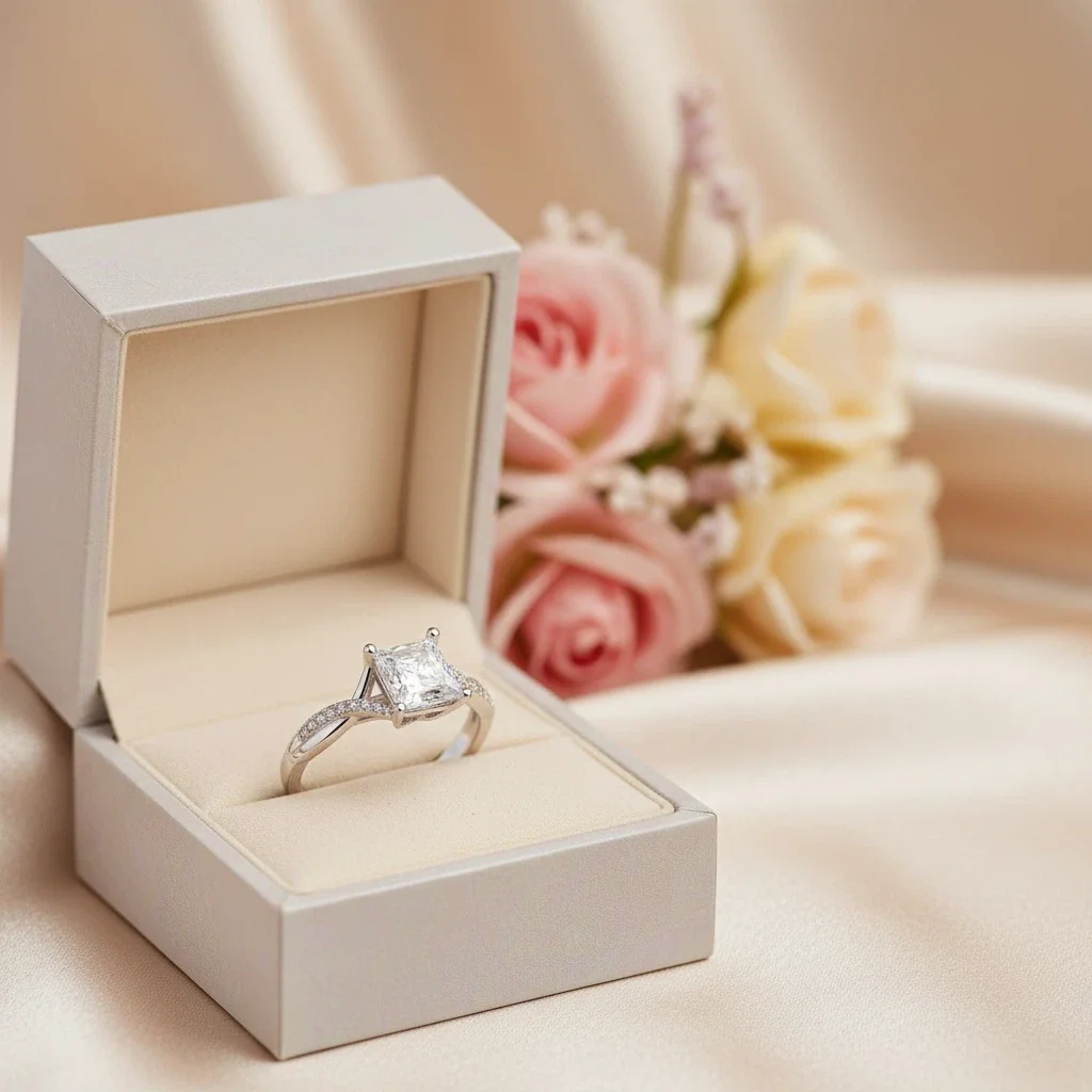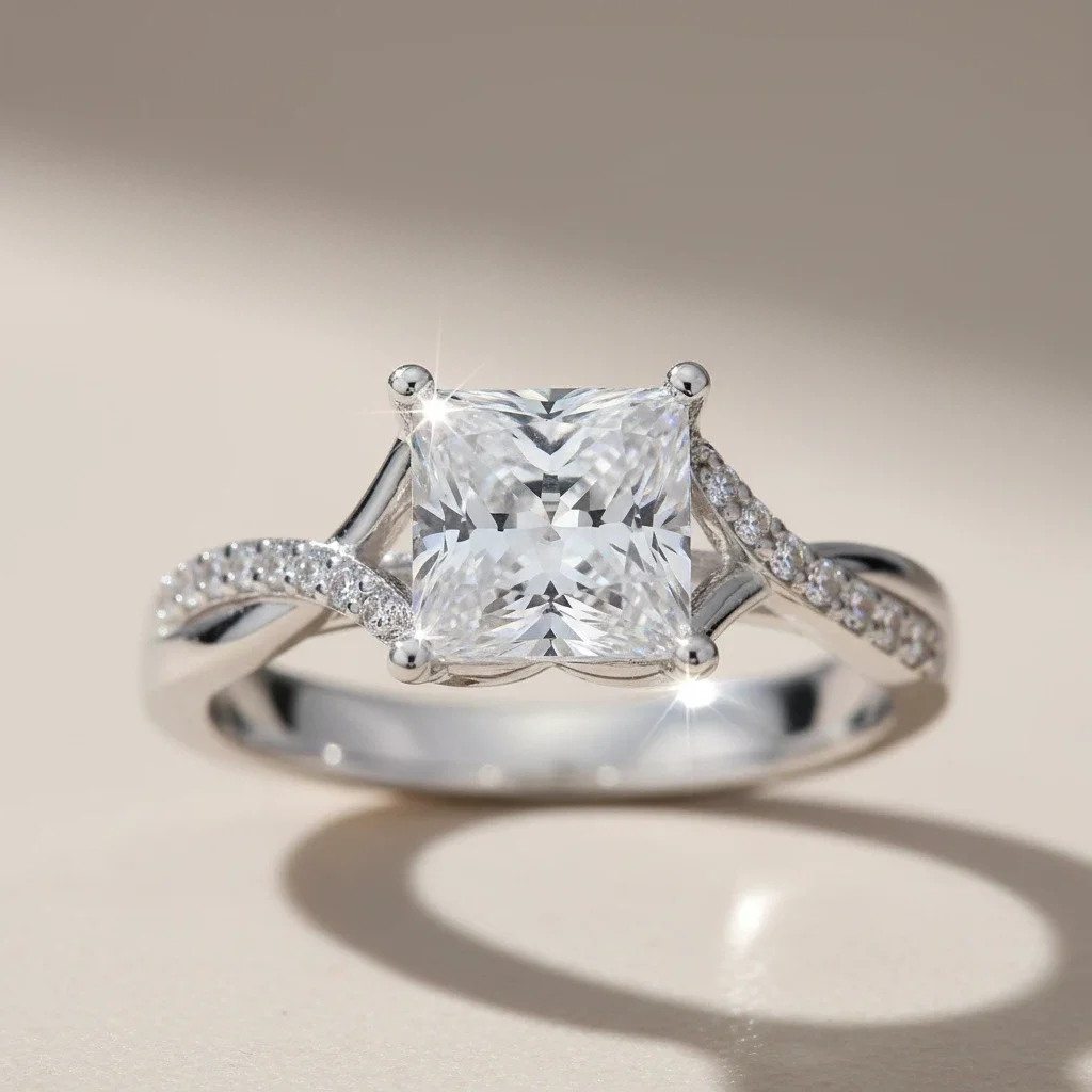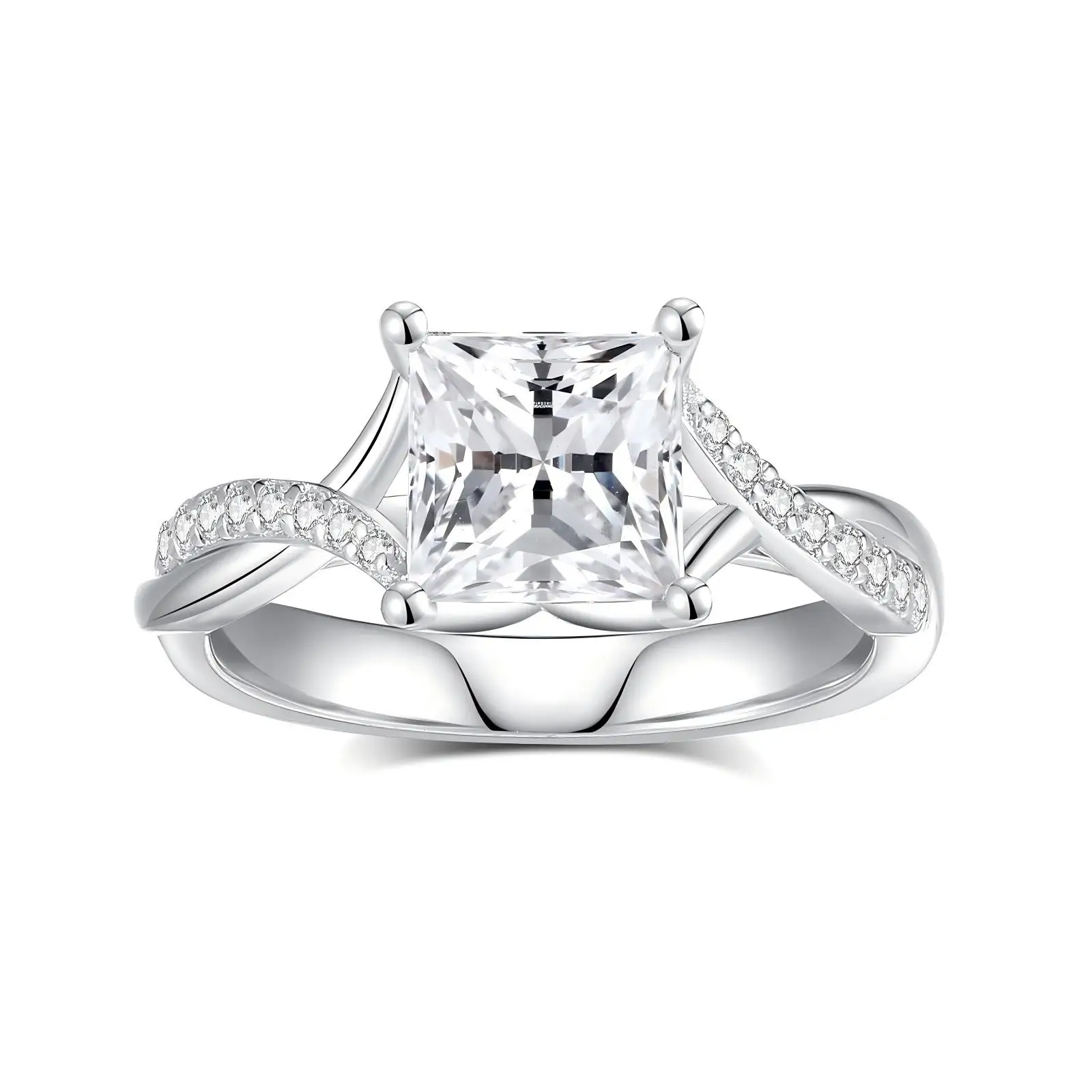 925 Silver Inlaid Fashionable Moissanite Brilliant Cut Rings Silver Classic square Diamond Setting Fine Jewelry Rings