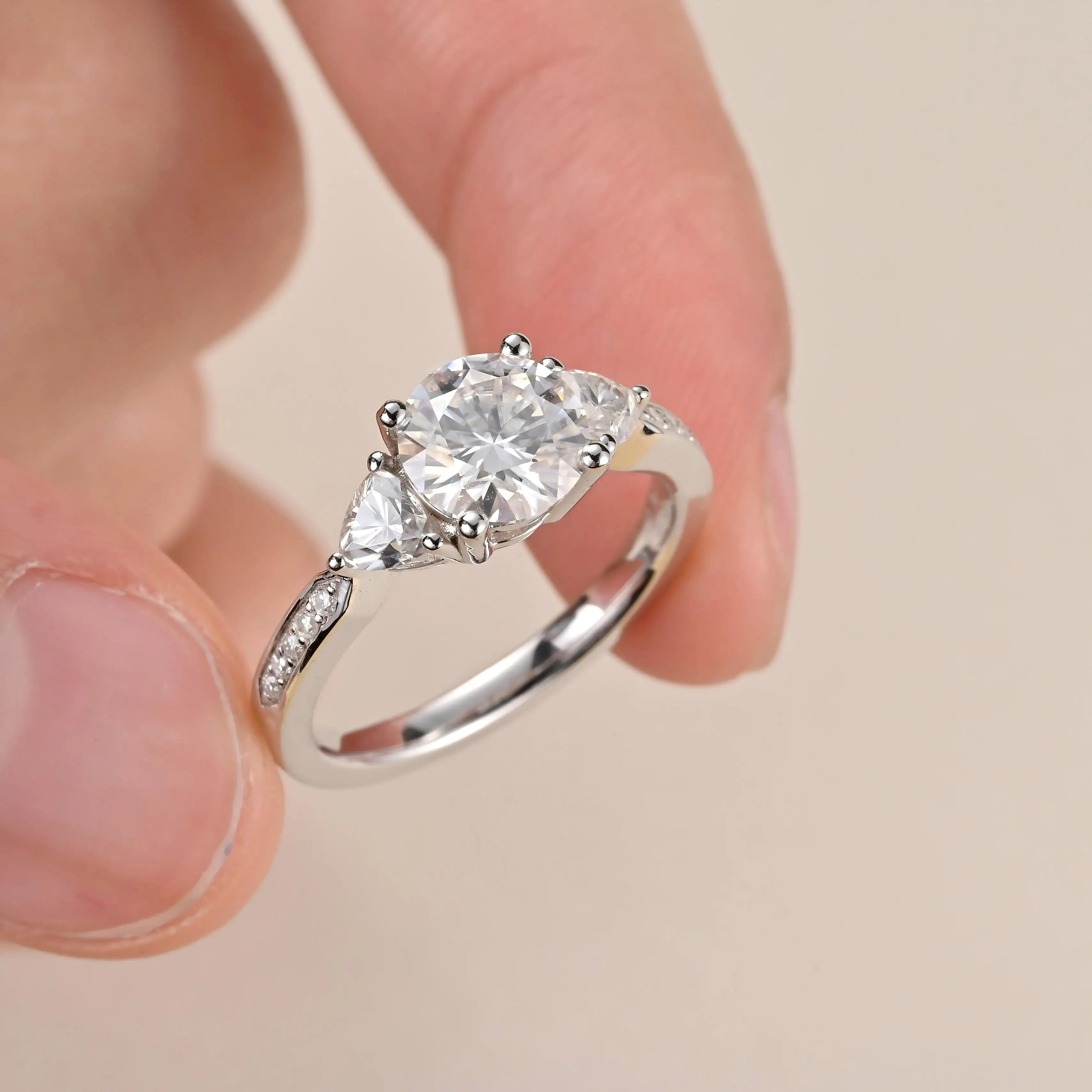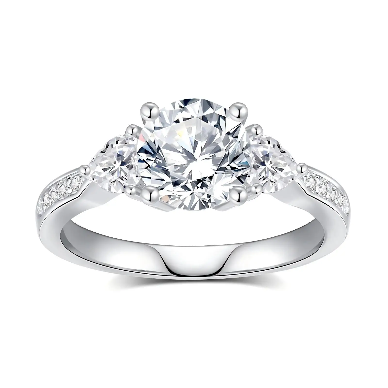 Classic Fully 4-prong Setting Moissanite Ring Round Brilliant Cut Fashion Rings Silver 925 for Women's Wedding Party