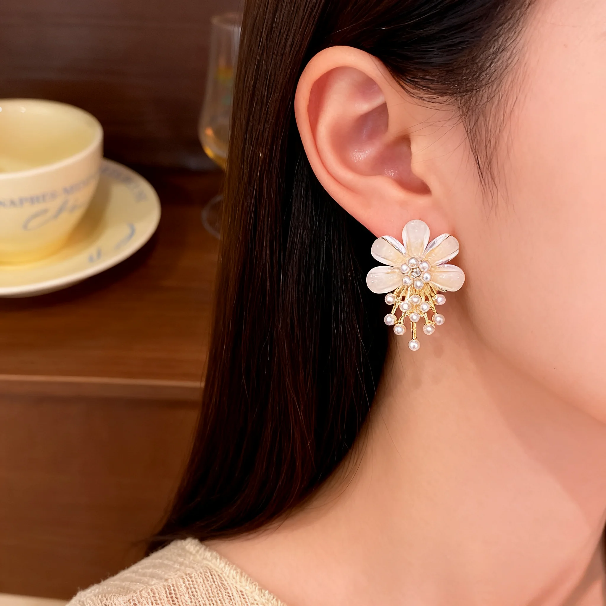 Exquisite Flower Shaped Wholesale Earrings with Pearls Elegant Romantic Perfect Women's Daily Wear Occasions Fashion Jewelry