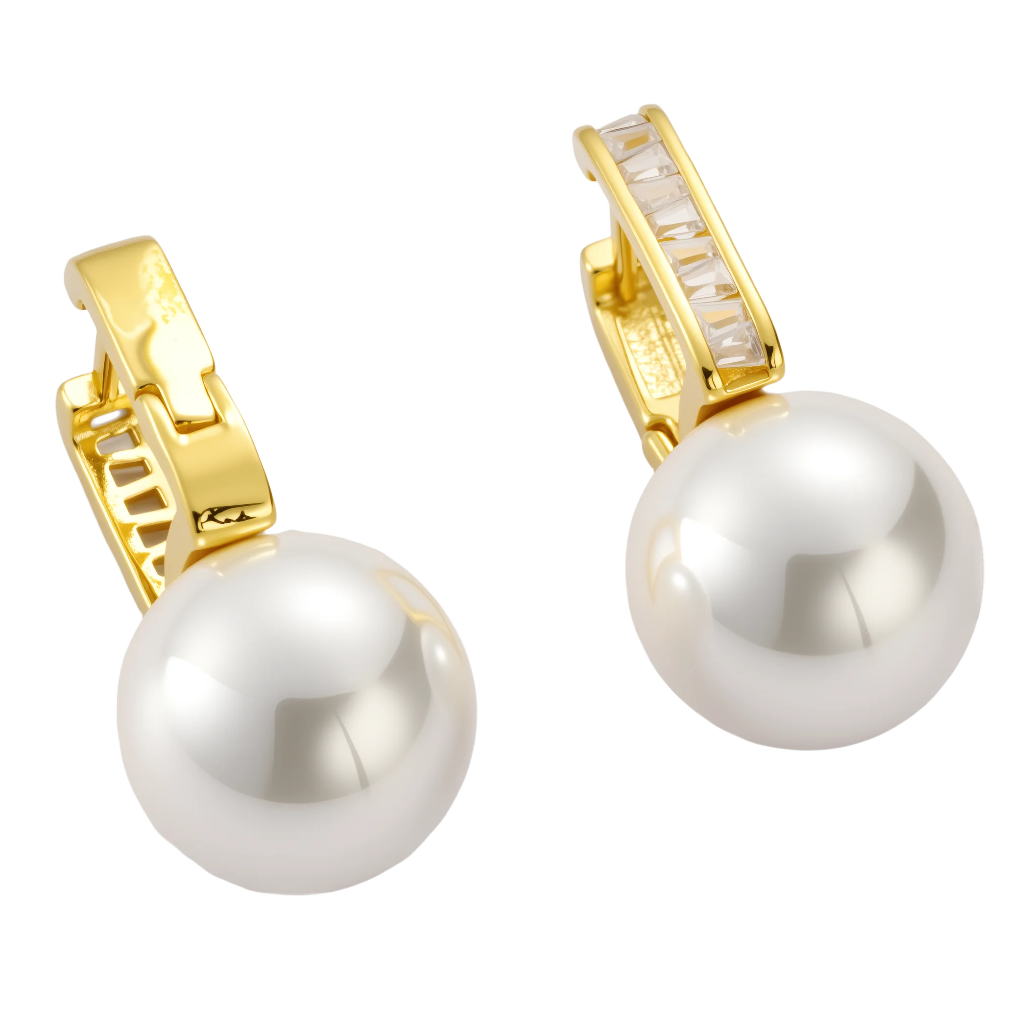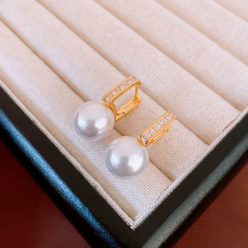 Elegant Gold Plated Square Hoop Earrings with Large Pearl Crystal Accents Chic Pearl Stud Wholesale Earrings Women Daily Wear