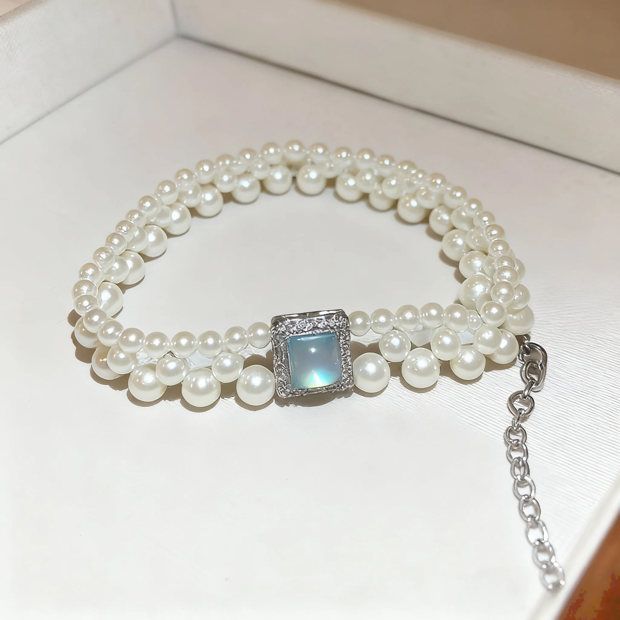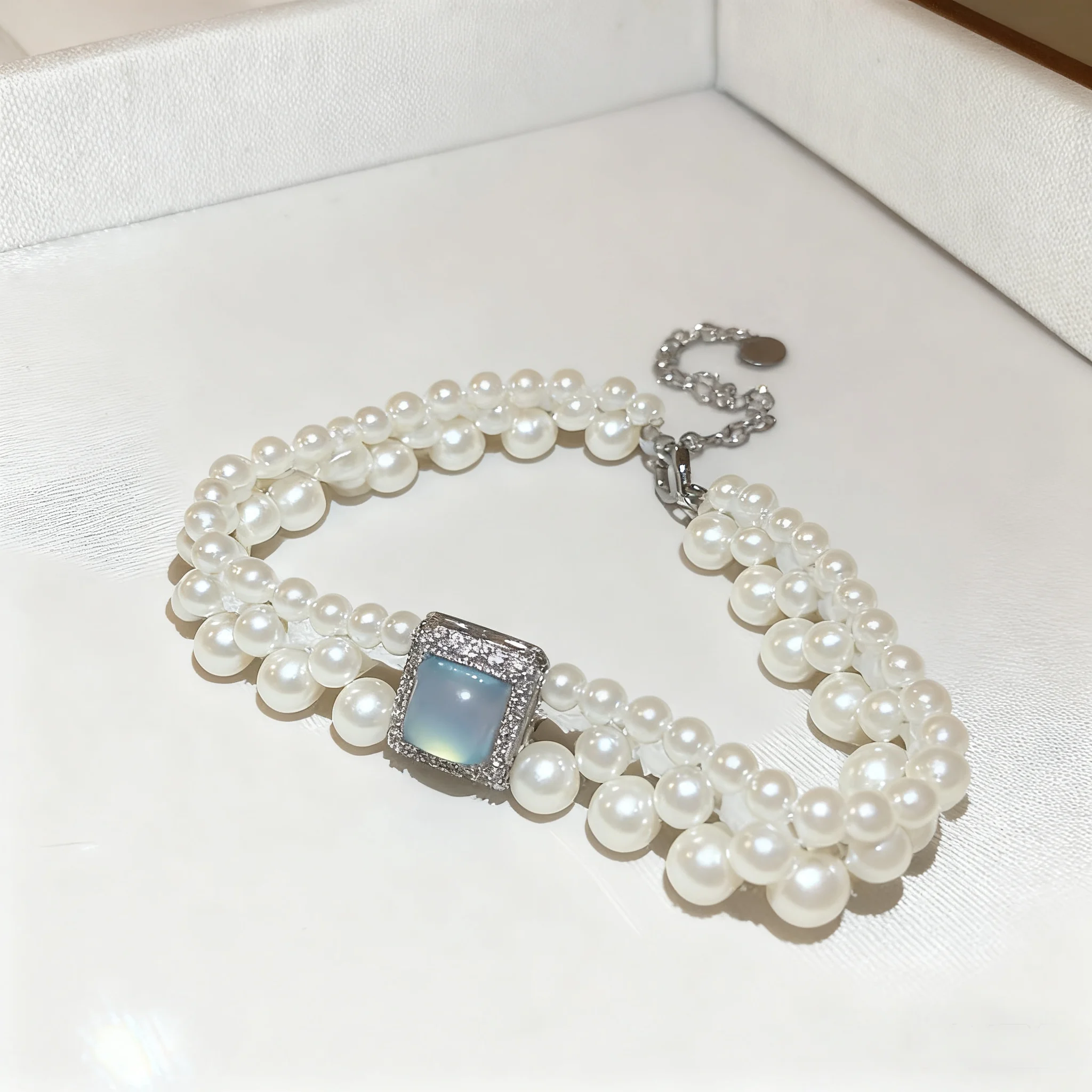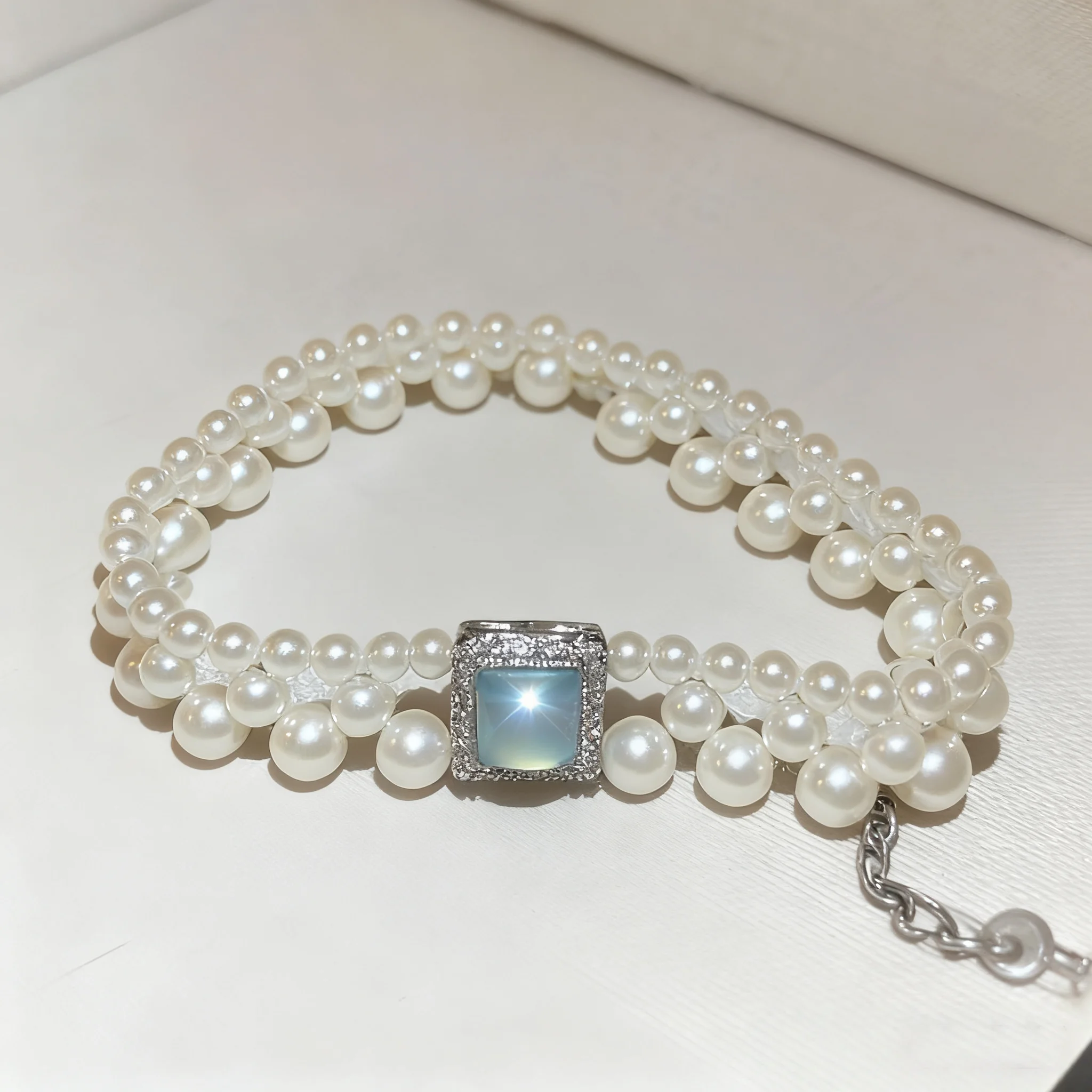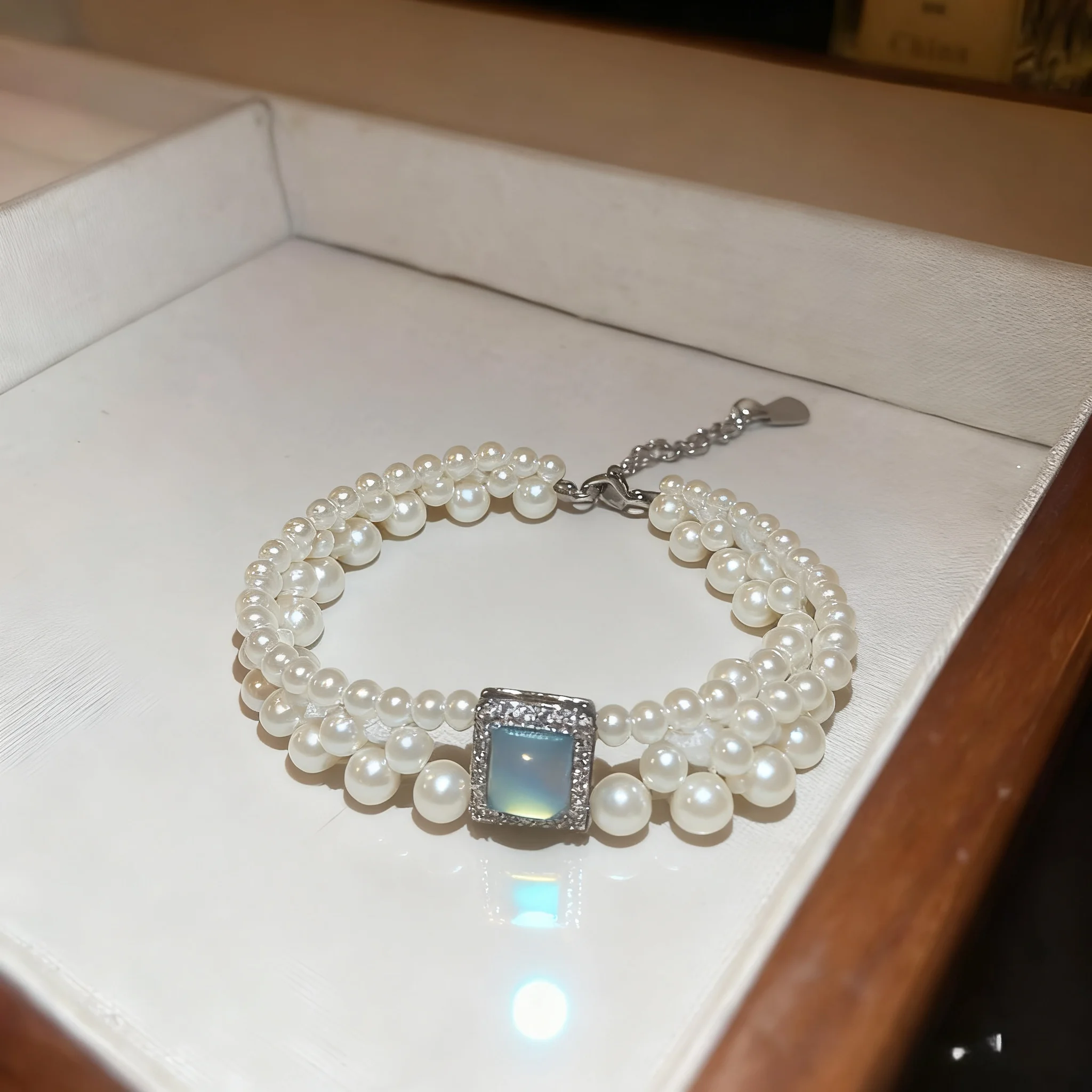 Elegant Multi Layer Pearl Bracelet Square Opal Zircon Accent Delicate Silver Plated Adjustable Fancy Jewellery for Ladies