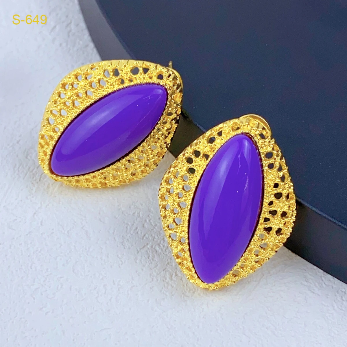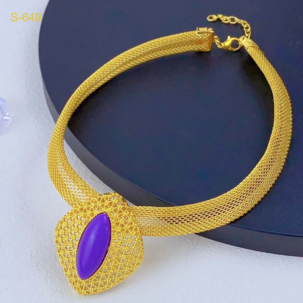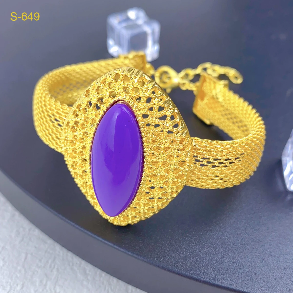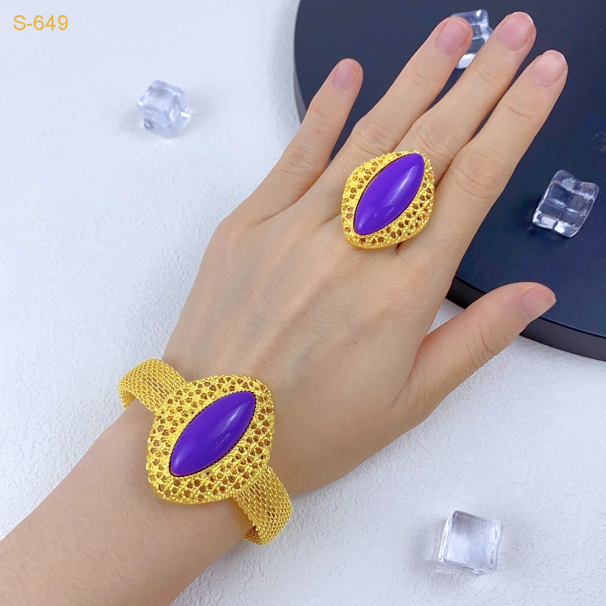 Luxury Gold Plated Purple Gemstones Necklaces for Women Set Earrings Ring Bracelet Elegant Wedding Party Fine Jewelry Rings