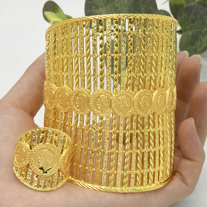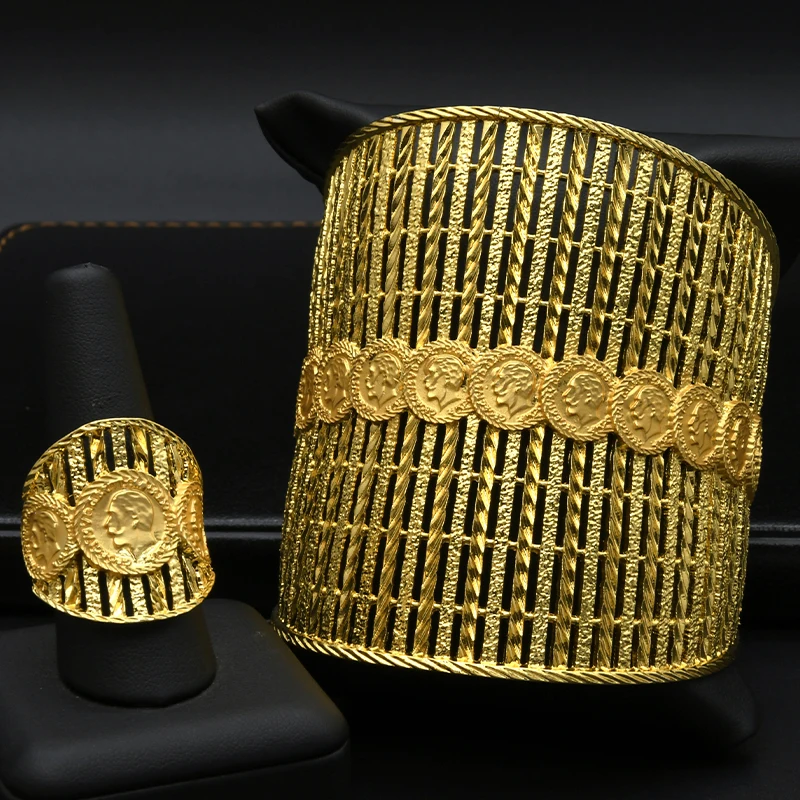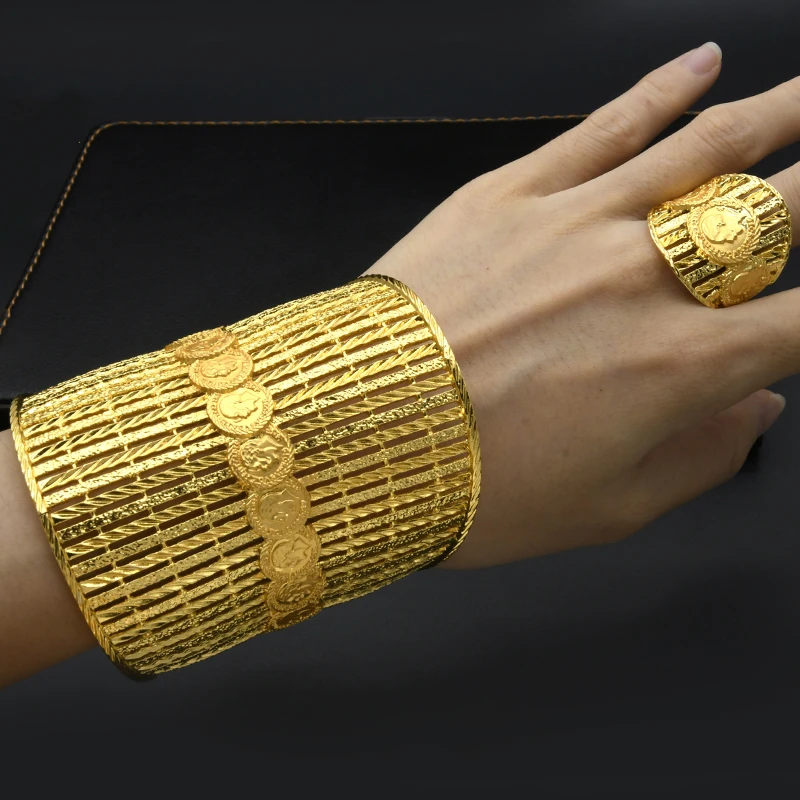 Women's Luxury Gold Chunky Ring Bangles Fine Indian Custom Wholesale Fashion Jewelry Set for Wedding Proposal Fine Jewelry Rings
