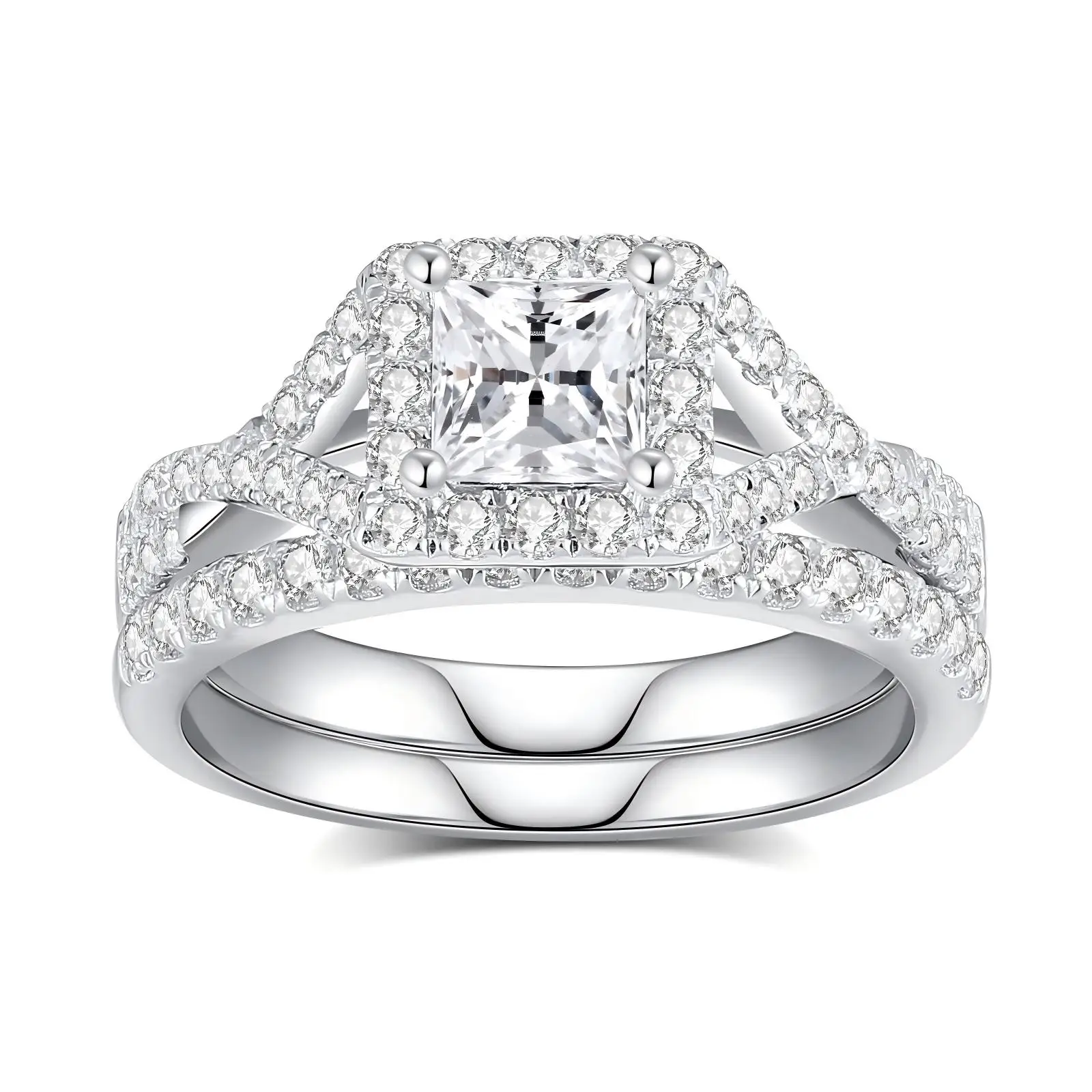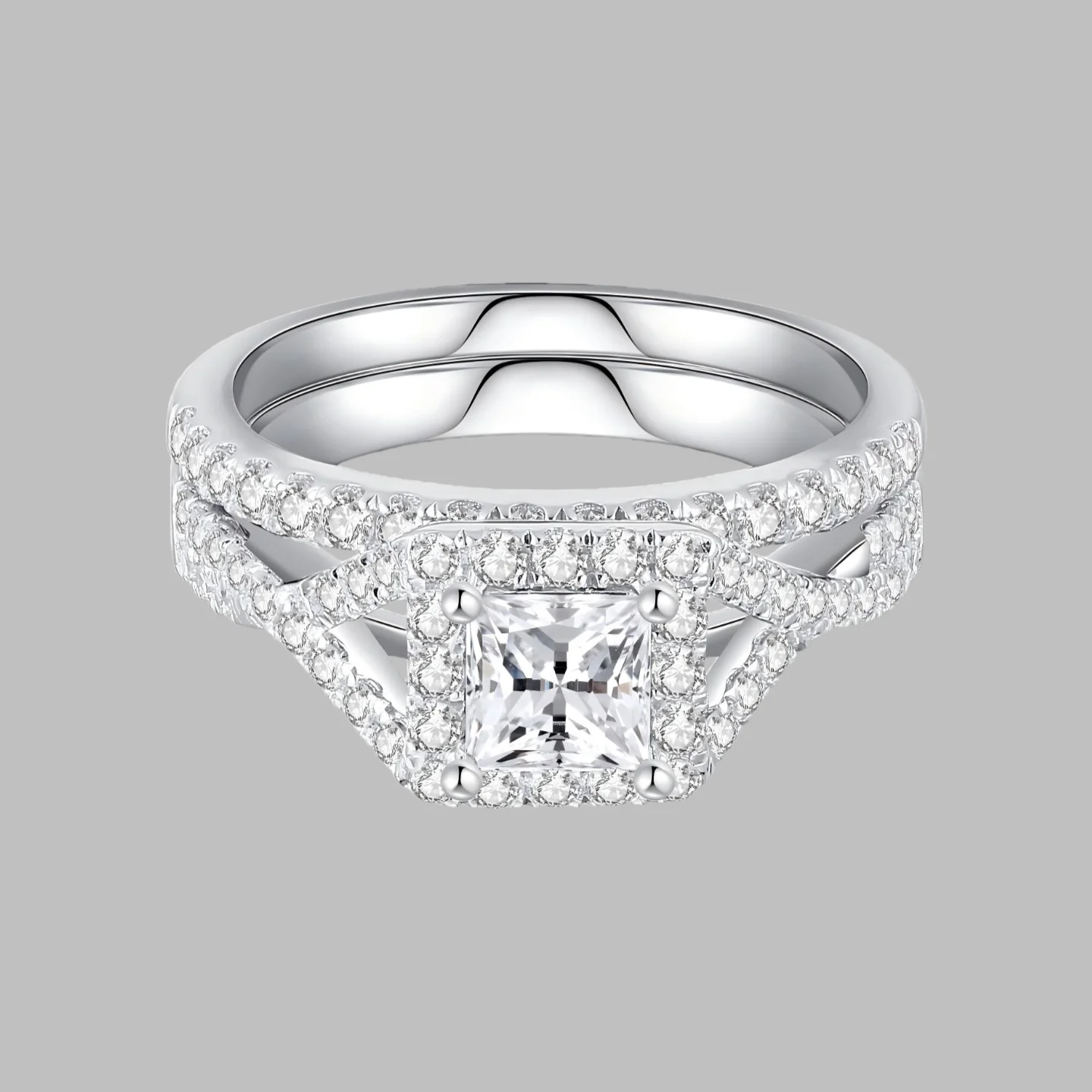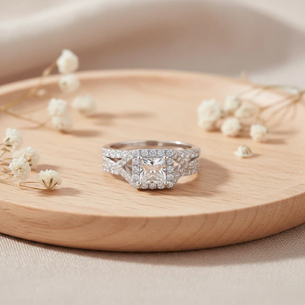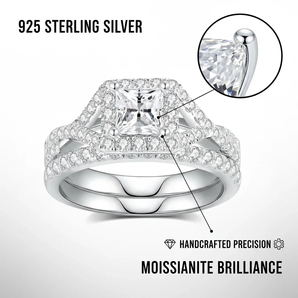 Rings Silver 925 Classic Setting Moissanite Ring Round Brilliant Perfectly Cut Fashion square for Girl Women Princess