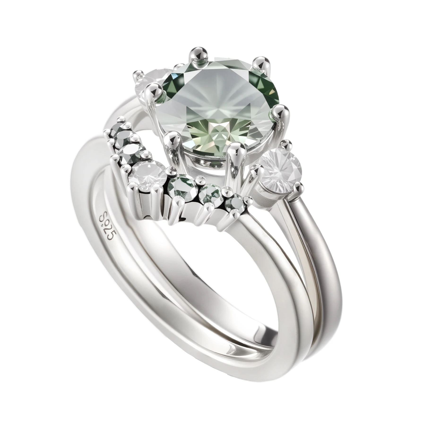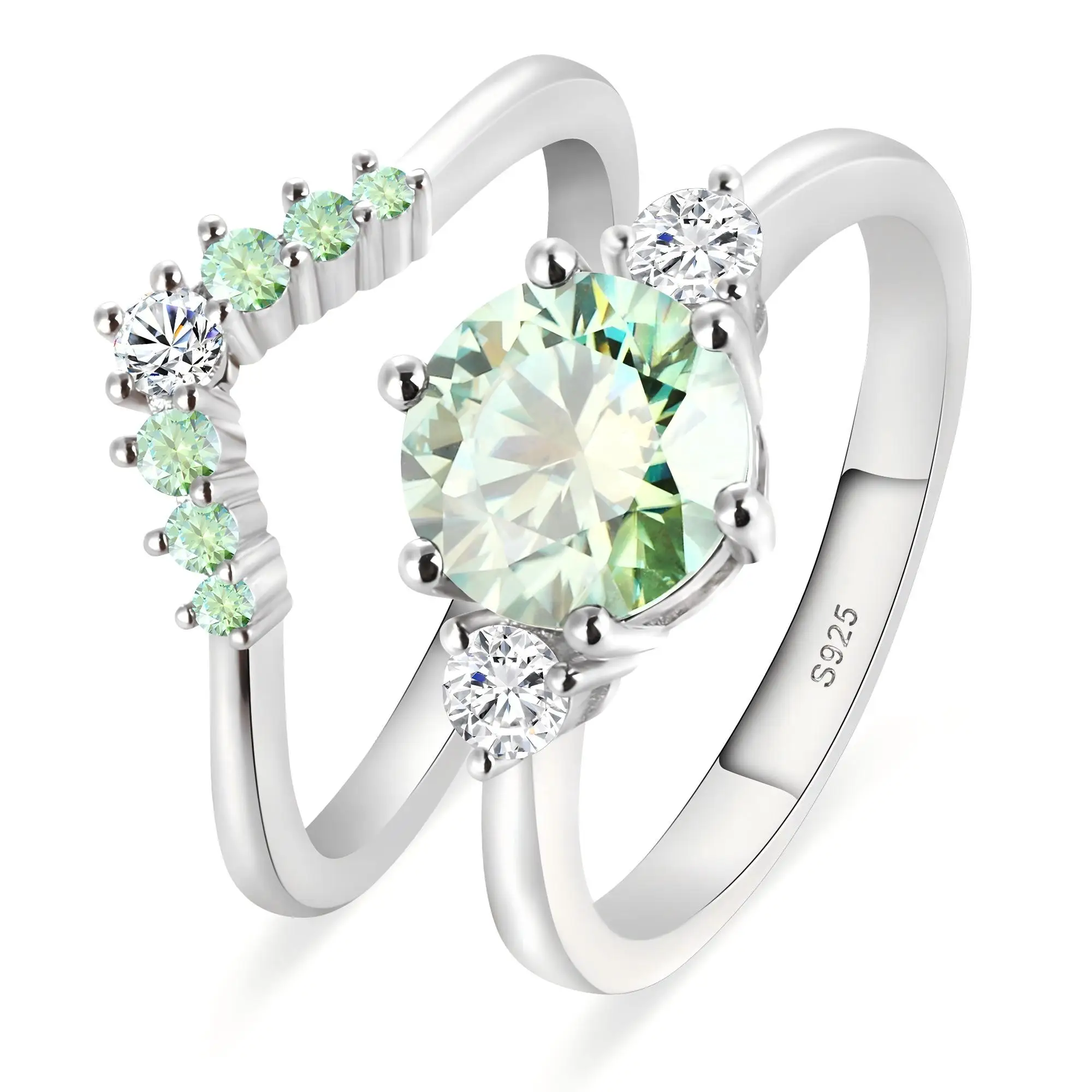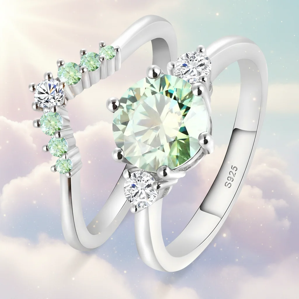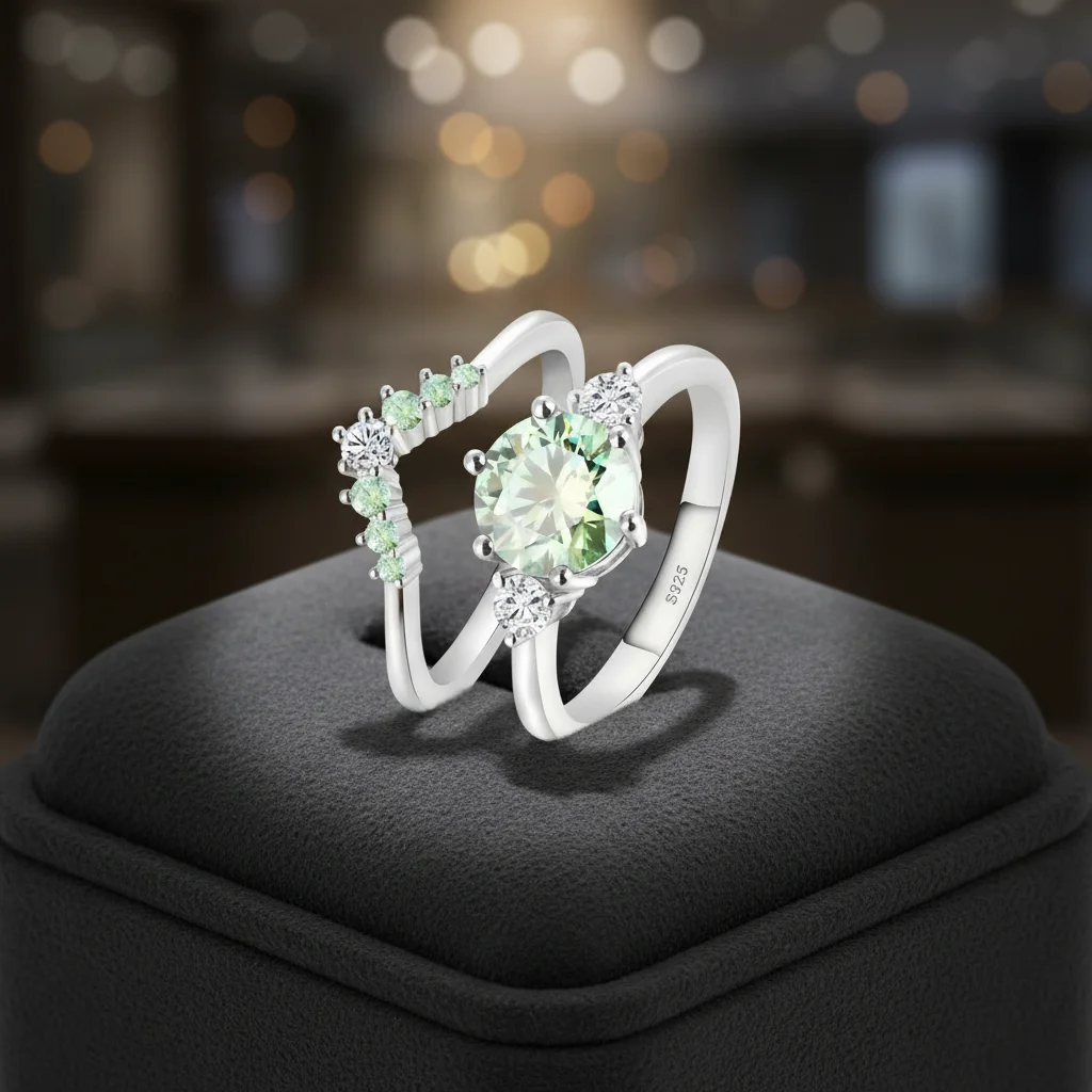 Wholesale Factory S925 Sterling Silver Moissanite Rings Green Gemstone Brilliant Sparkle Wedding Fancy Jewellery for Ladies