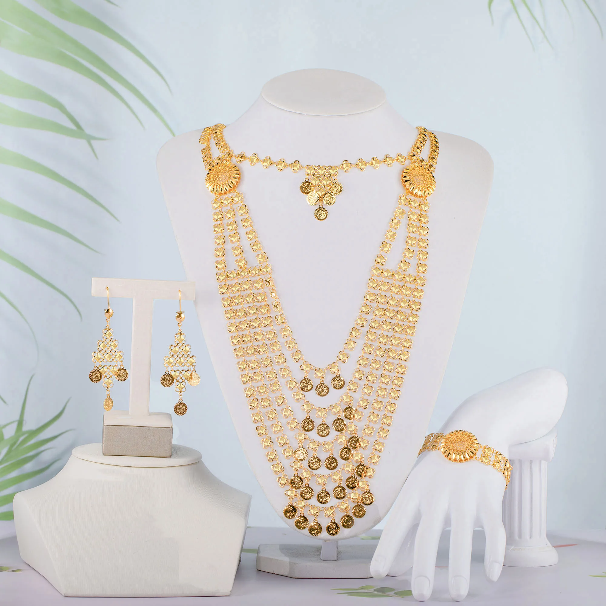 Handmade Products Gold Plated Wedding Party Jewelry Sets for Women Charms Pendant 18k Gold Plated Necklace Jewelry