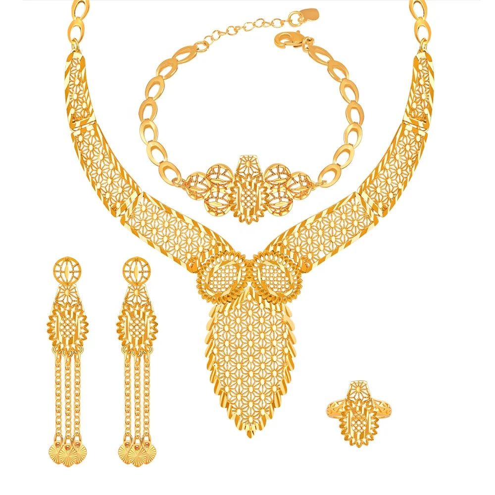 African Custom Champagne Gold Necklace Ring Ear Top Bracelet Bride Wedding Women