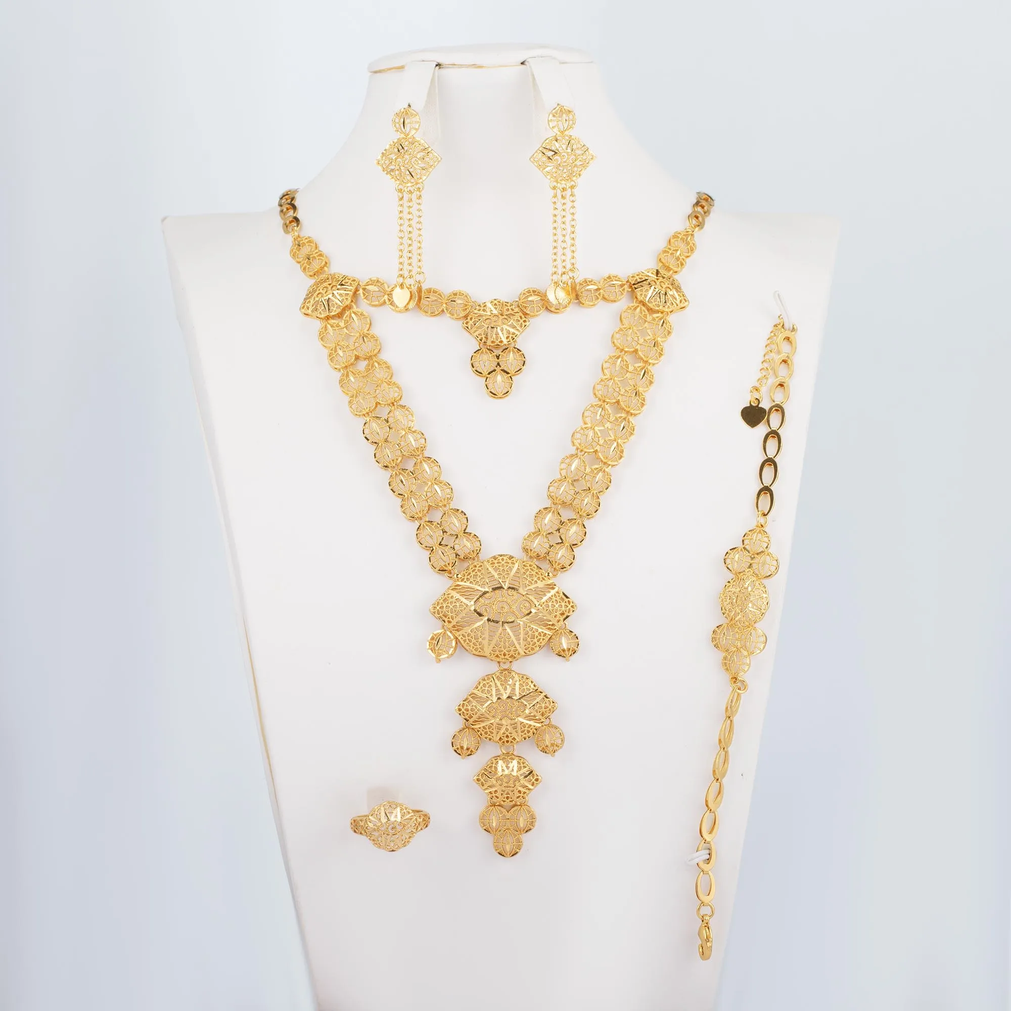 Luxury Dubai Bride Wedding Party champagne Gold Plated Jewelry Set Party Wedding
