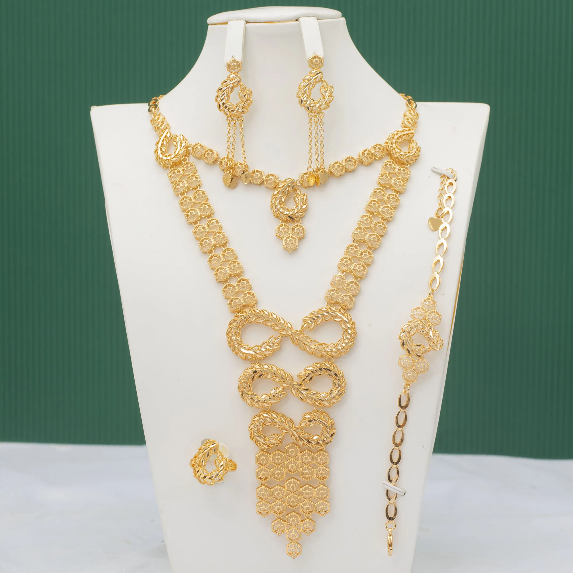 Nigerian Bridal Jewelry Set Dubai New Gold Chain Design Necklace Luxury Jewelry 14k Gold Adjustable Rings for Women