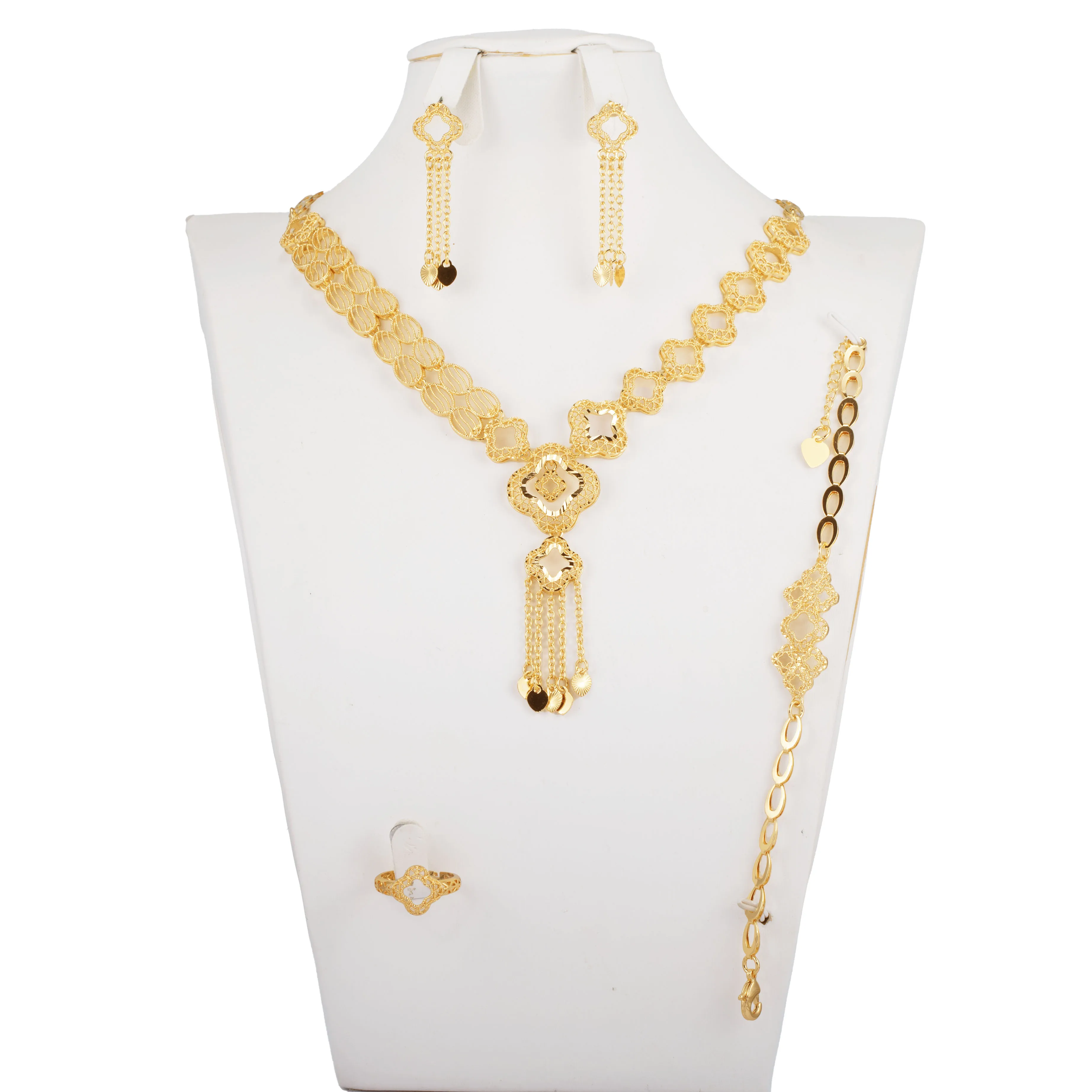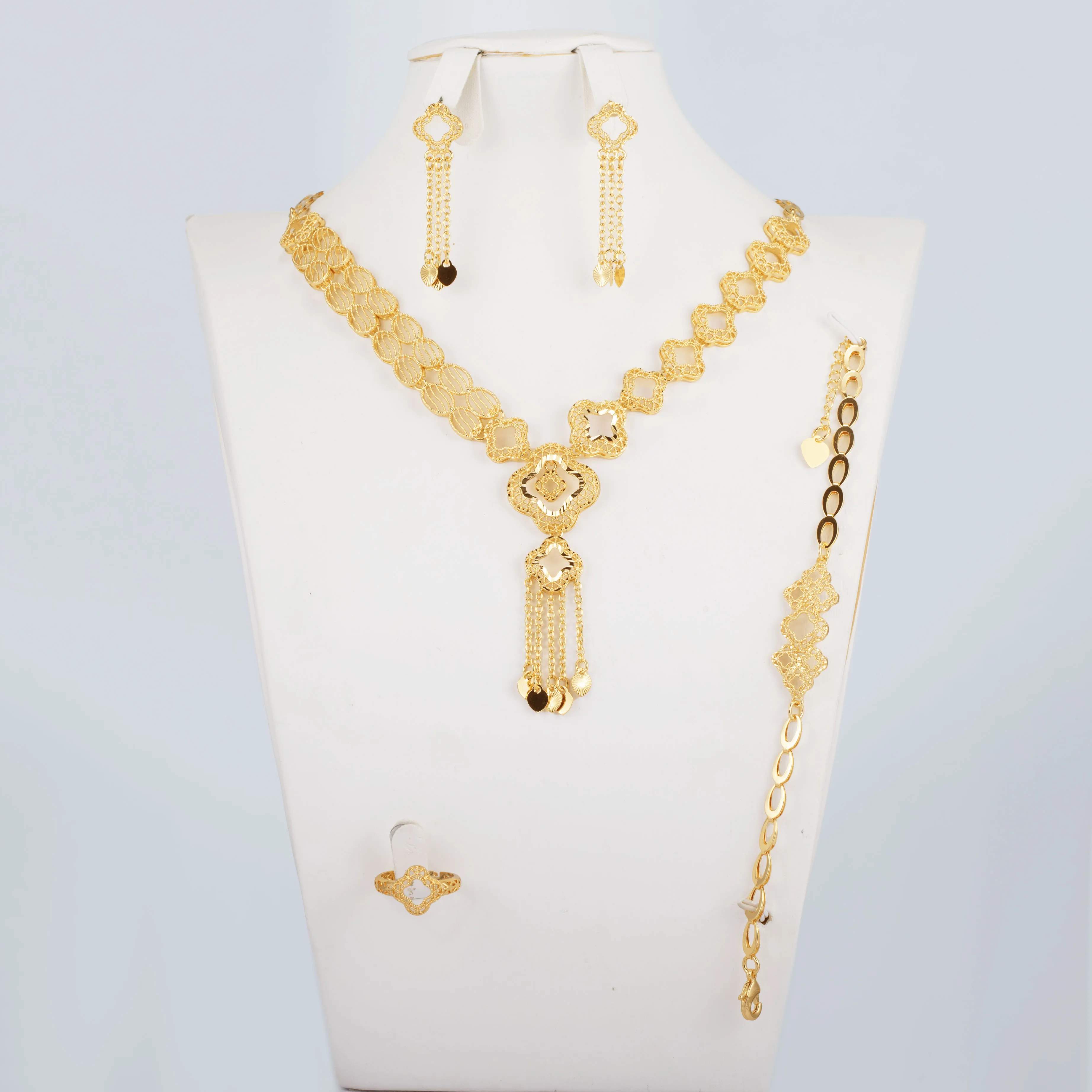 Bridal Luxury Necklace Jewelry Set Gold Plated Jewellery Rings Earrings Bracelets Necklaces Four-piece Set
