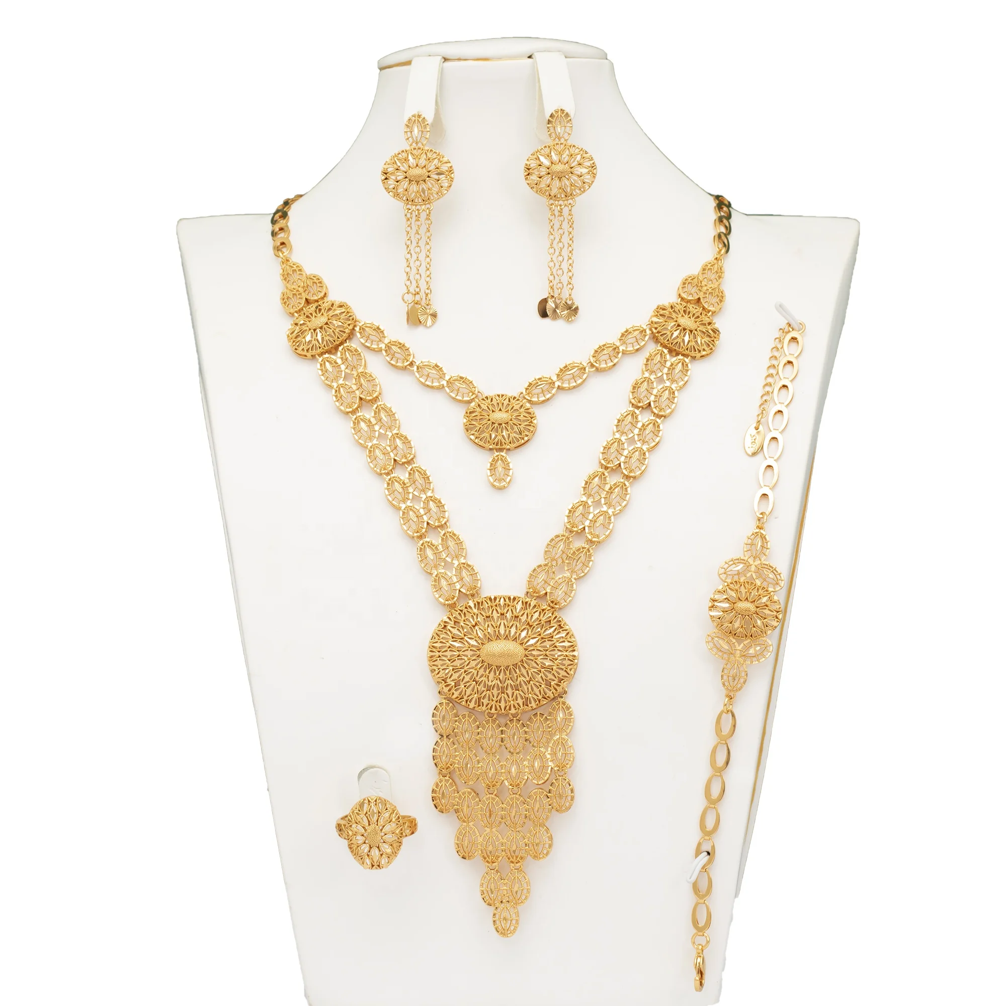 Female Bride Wedding Necklace Earrings Ring Bracelet 14K Gold Fashion Accessory Set