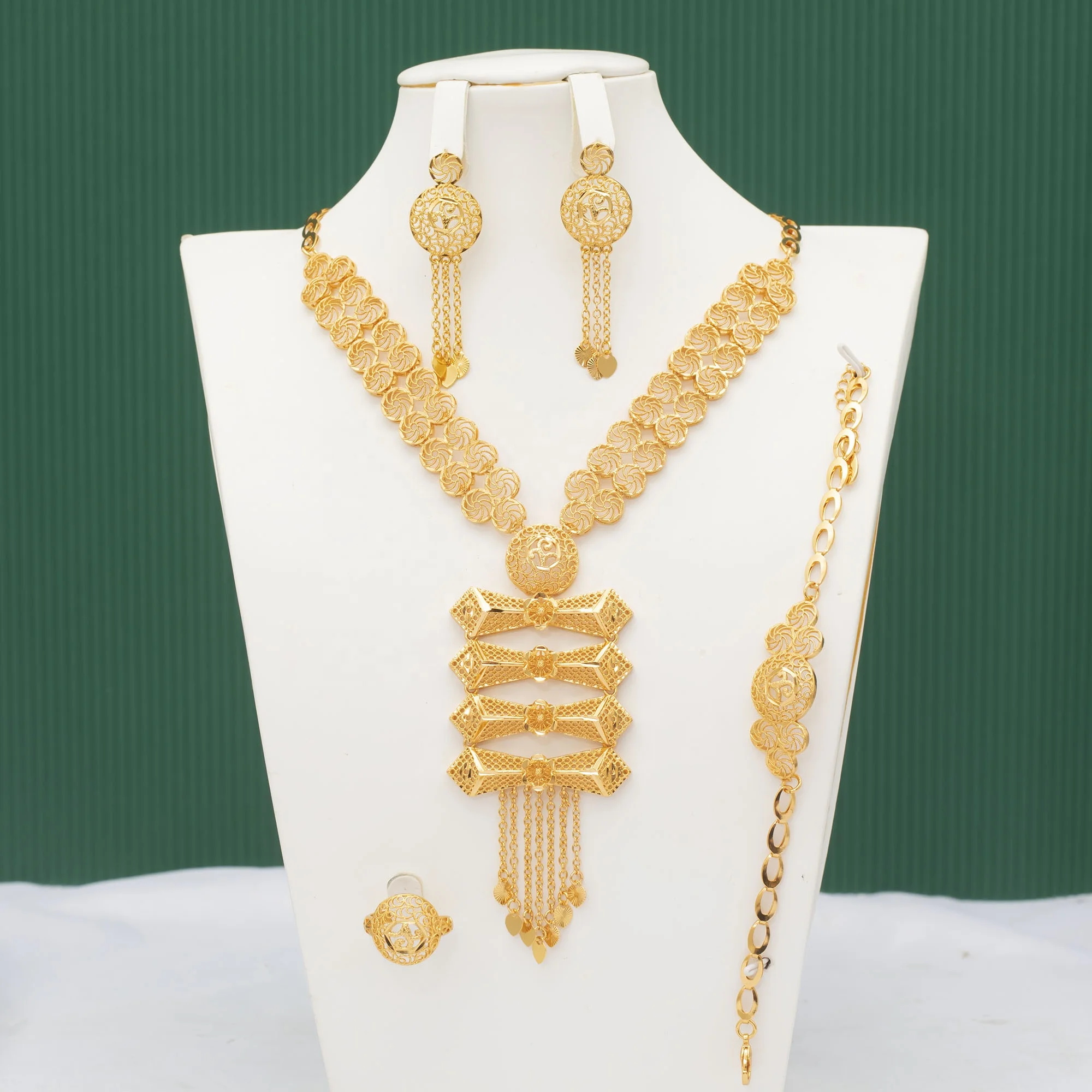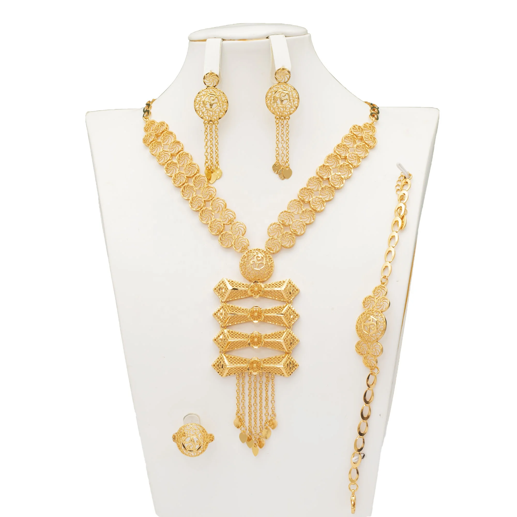 18k Gold Plated Luxury Necklace Mature Woman Jewelry Set