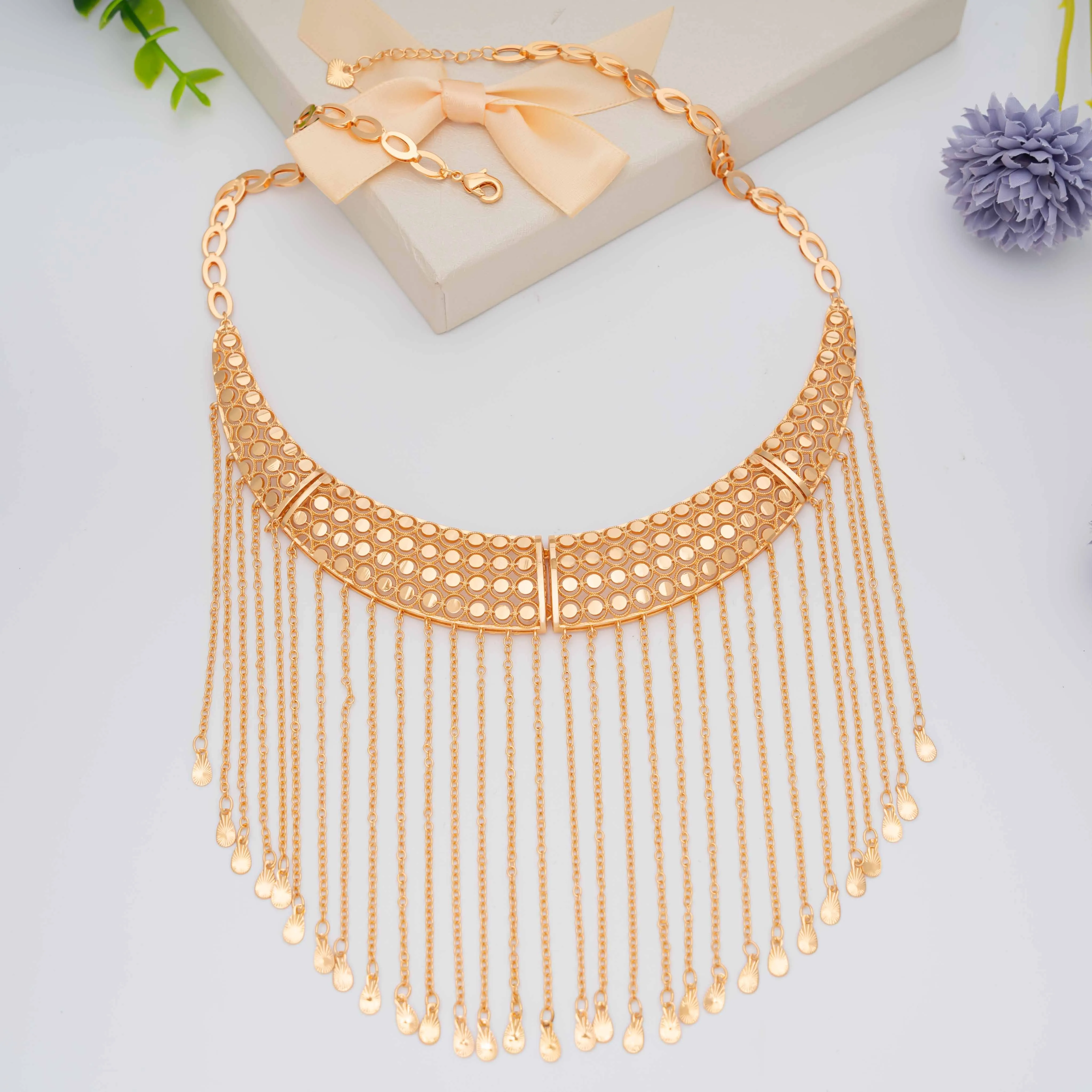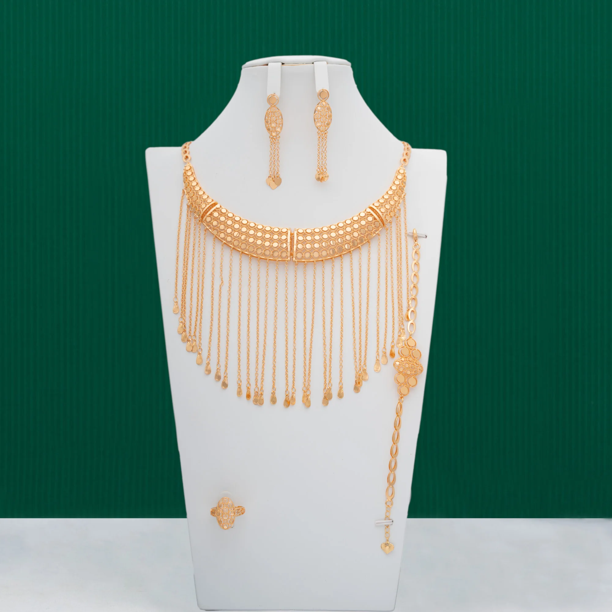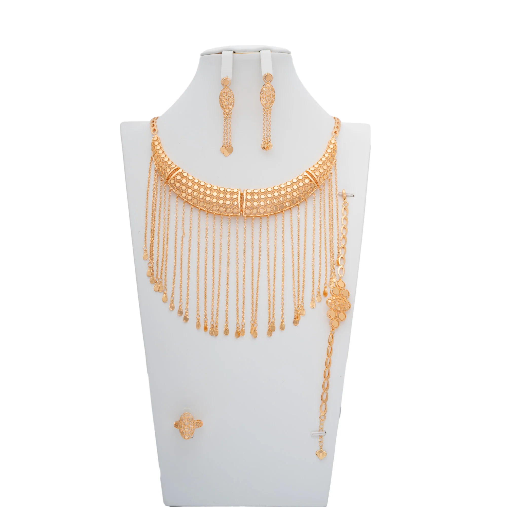 18K Gold Plated Wedding Jewelry Set Fashionable Necklace Earring Bracelet Ring for Parties Engagements for Gifts for Muslims