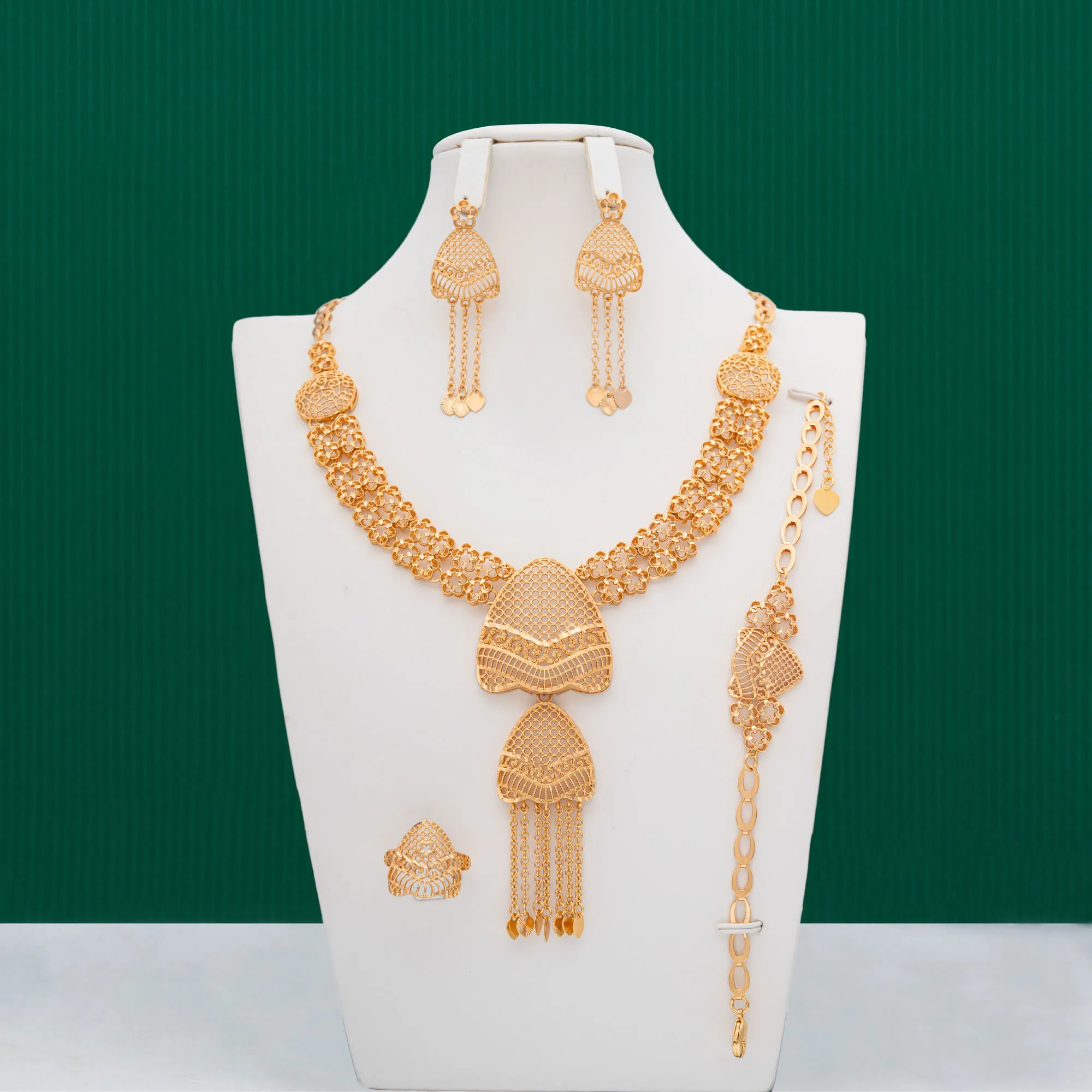 Beautiful Women's Bridal Wedding Engagement Party Jewelry Set 14K Gold Plated Fashion Jewelry