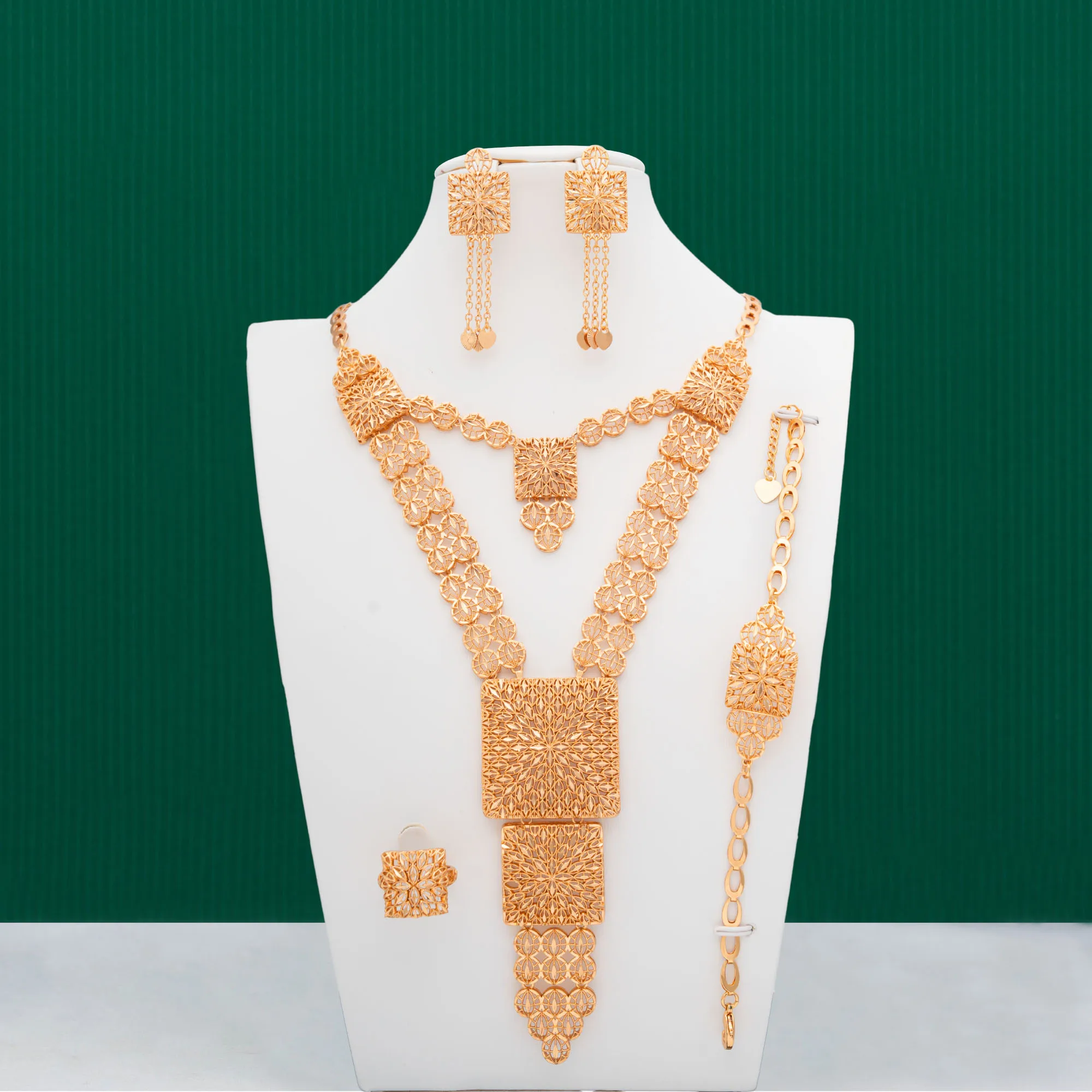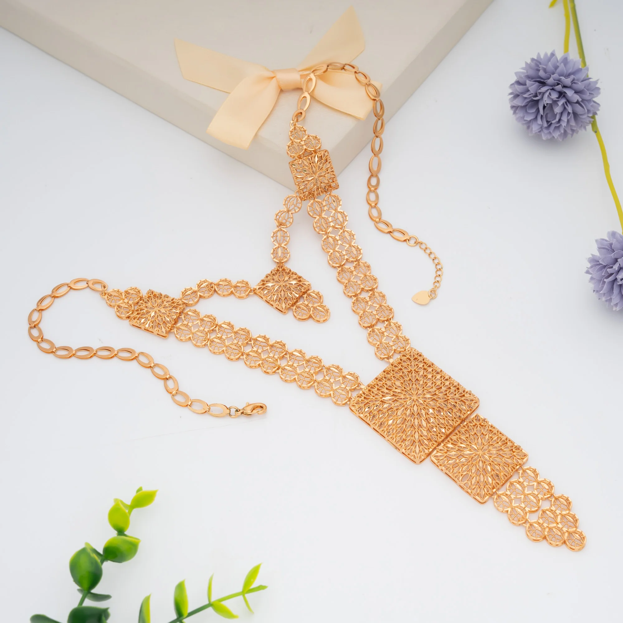 Jewelri Wholesalers Elegant Chic Jewelry Temple Jewellery Set Gold Plated Necklaces