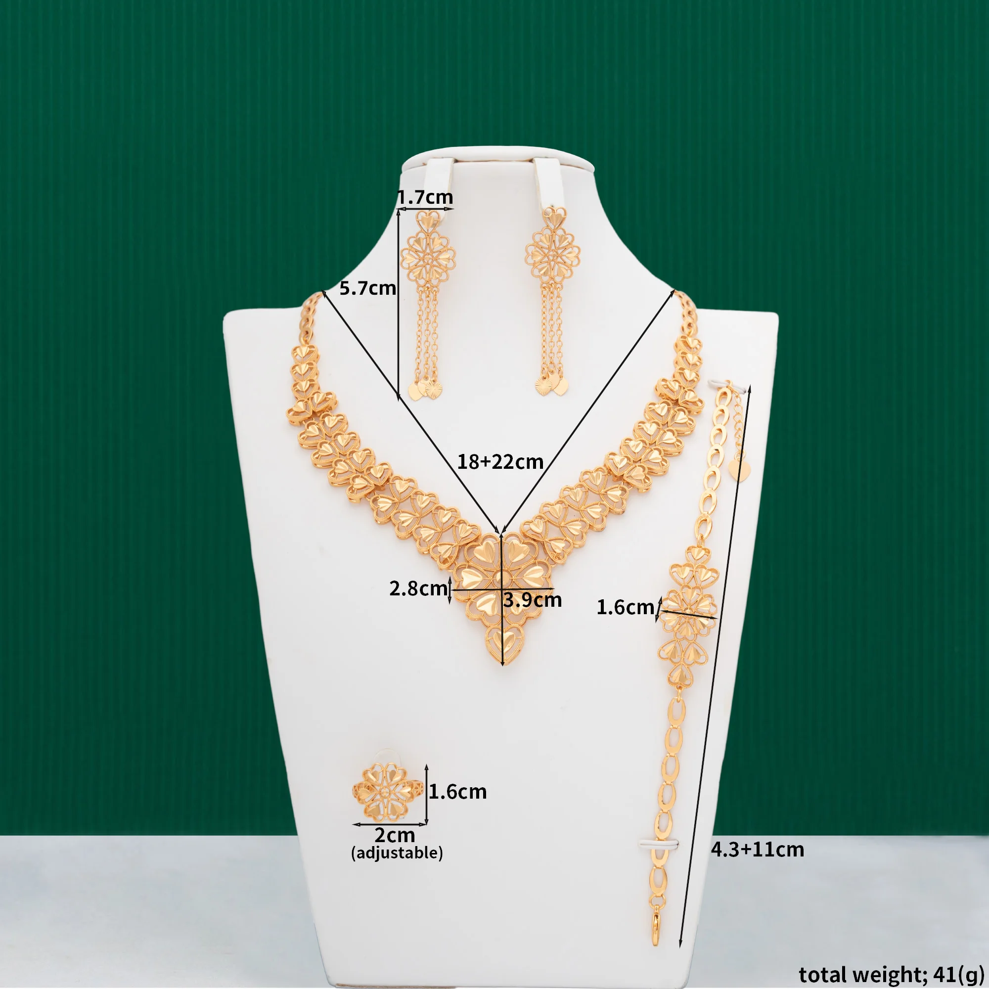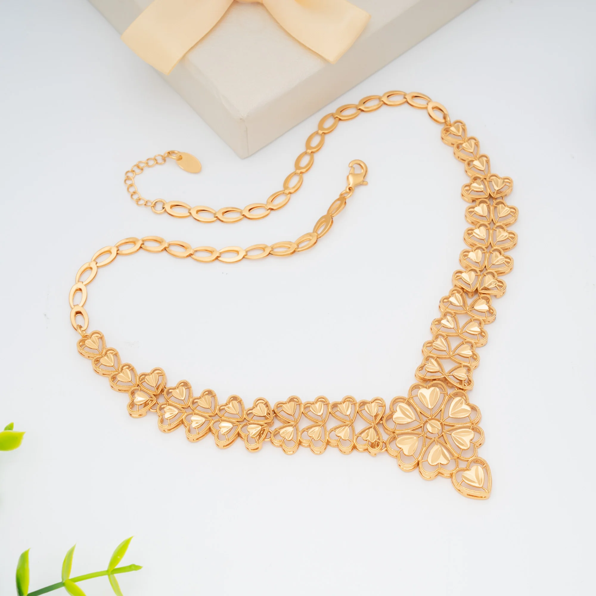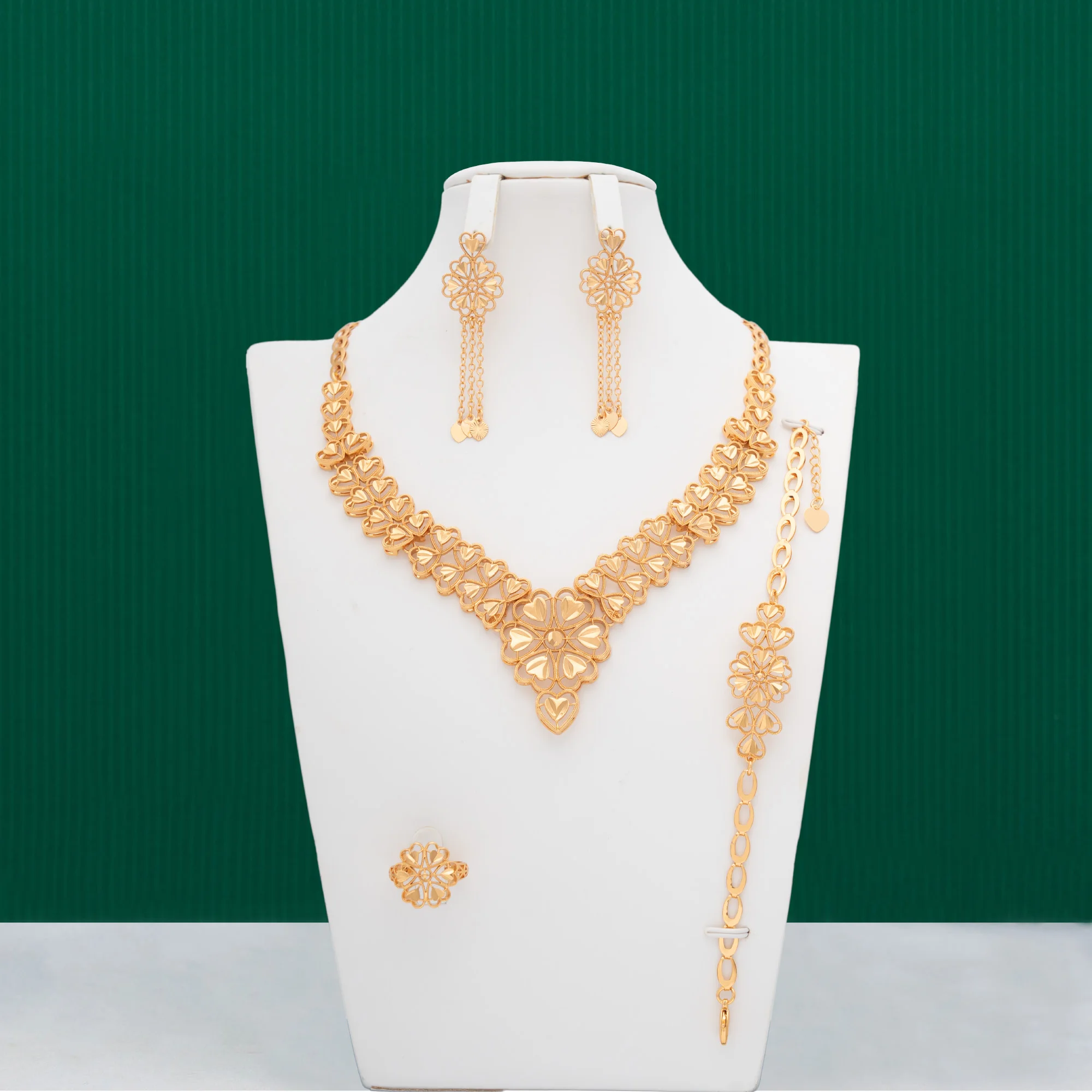 18k Gold Plated Jewelry Indian African Jewellery Set Women's Neck Chain Wholesale Necklace Bracelet Set