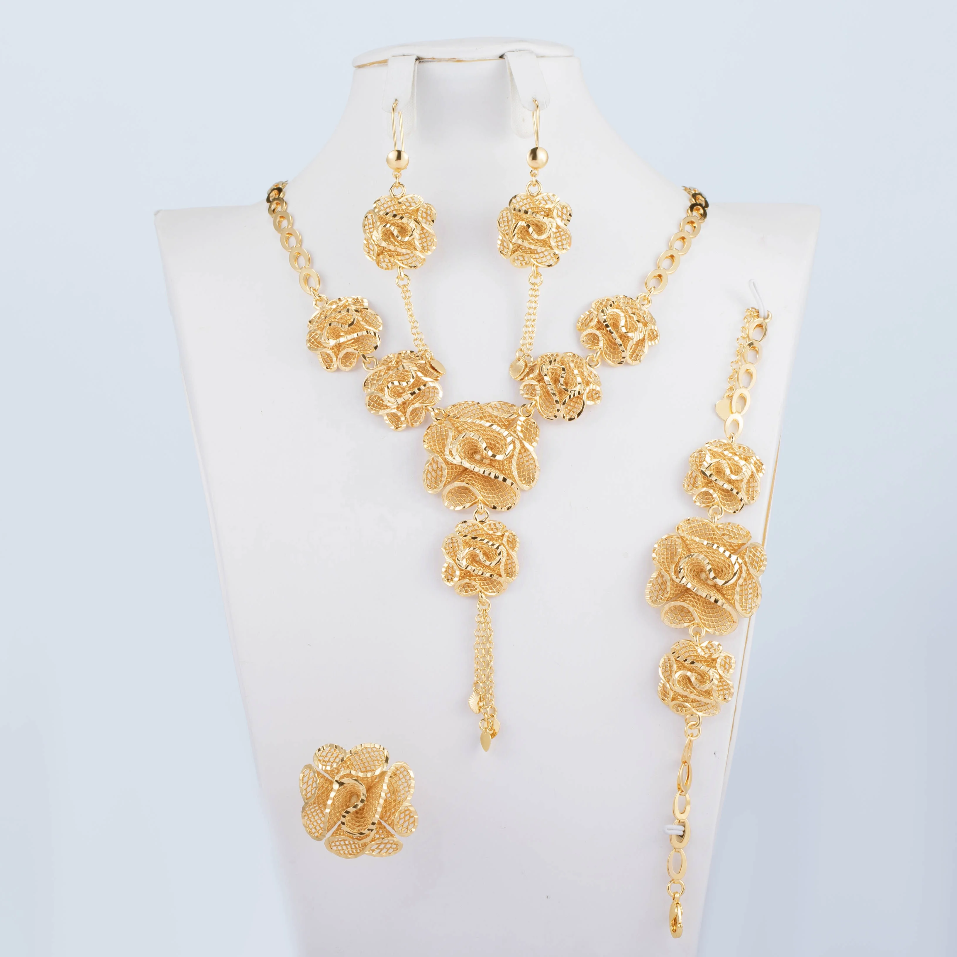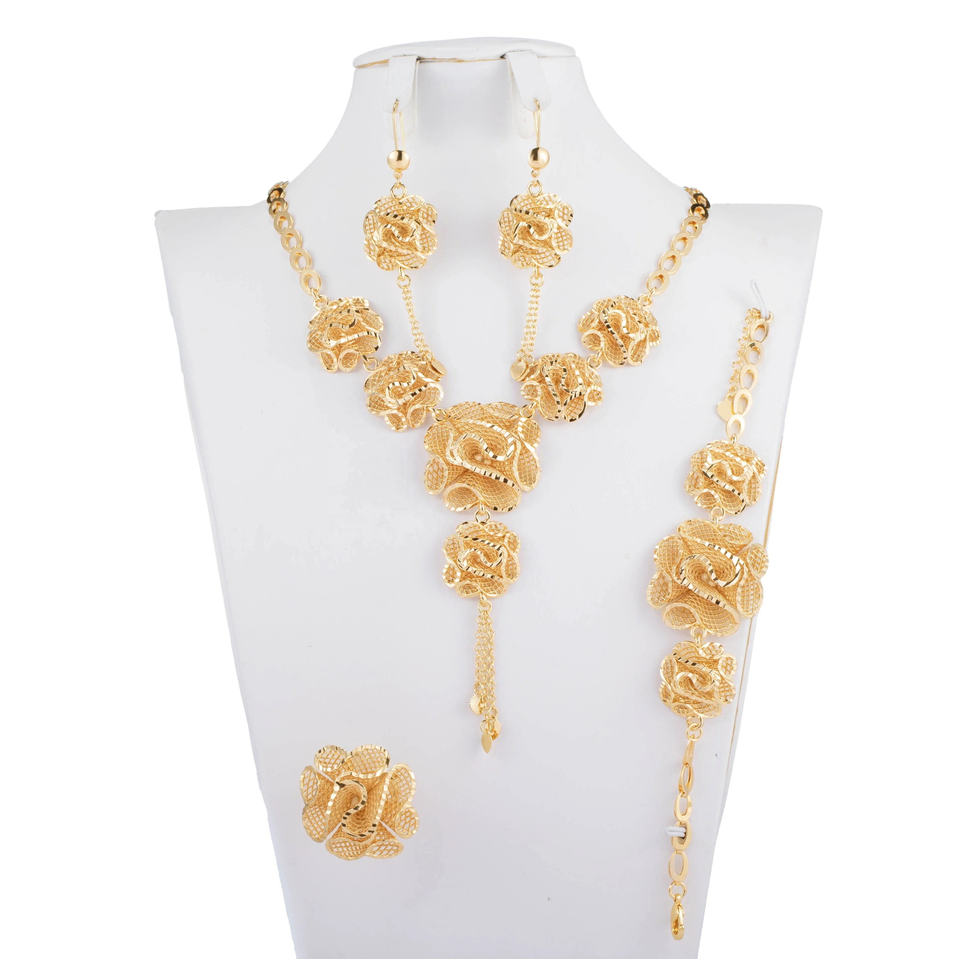 Custom Dubai Champagne Party 18K Gold Necklace Stud Bracelet Bridal Wedding Fashion Jewelry Set