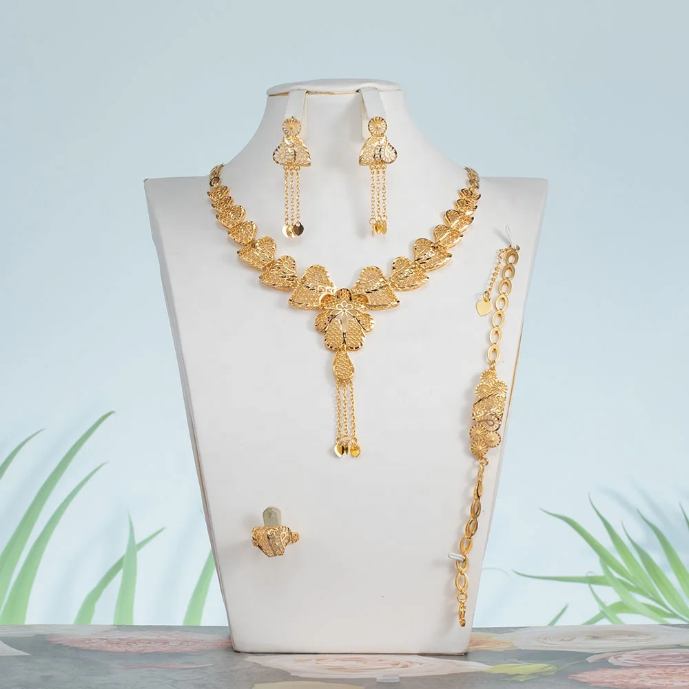 Champagne Gold Plated Ear Senior Jewelry Necklace Bracelet Ring Fashion Jewelry Set