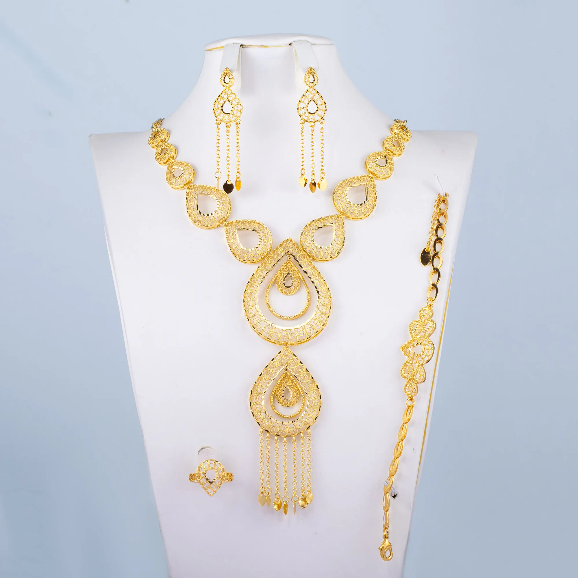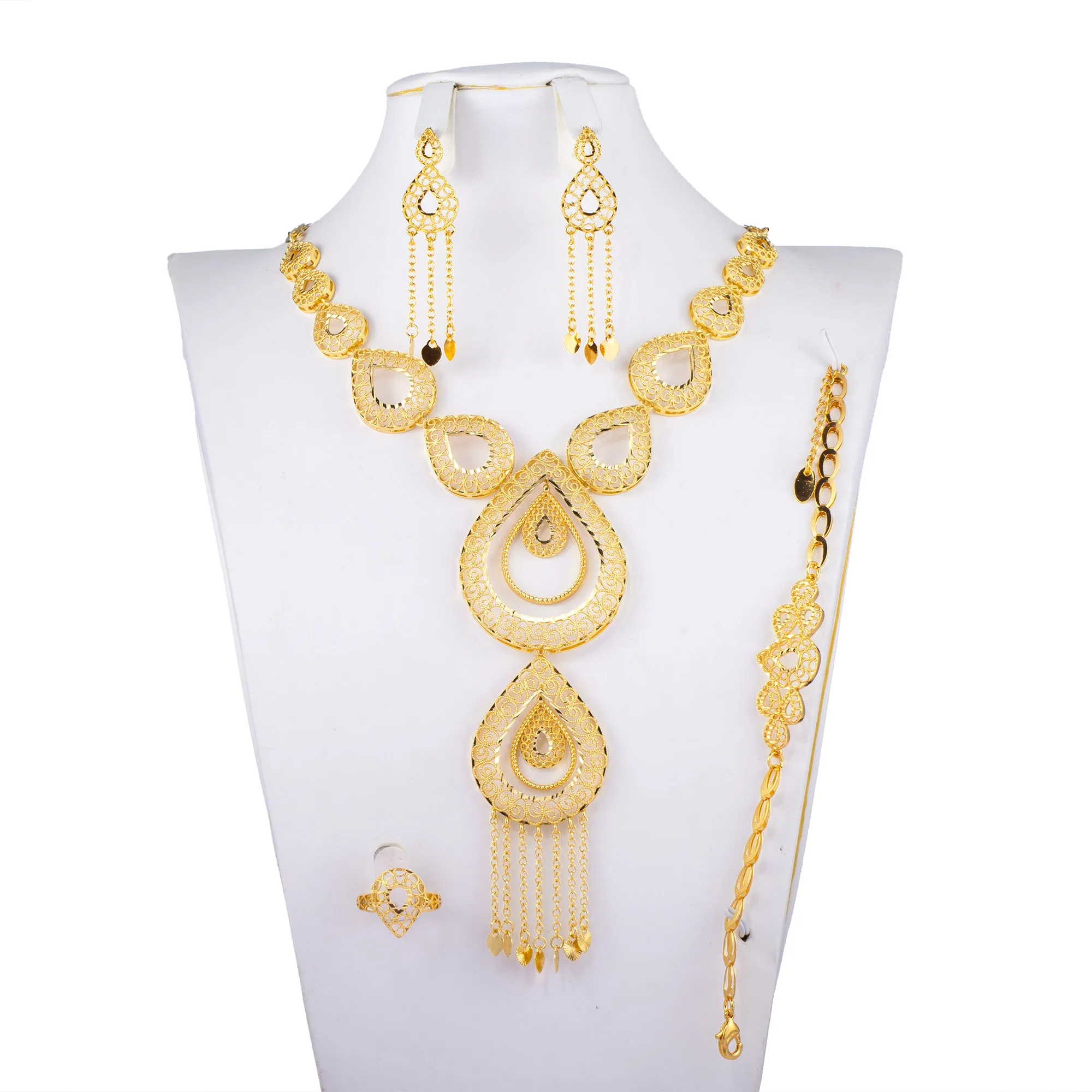 Flowers Jewelry Sets 24k Gold Plated Dubai Indian Traditional Wedding Jewelry Set Bridal