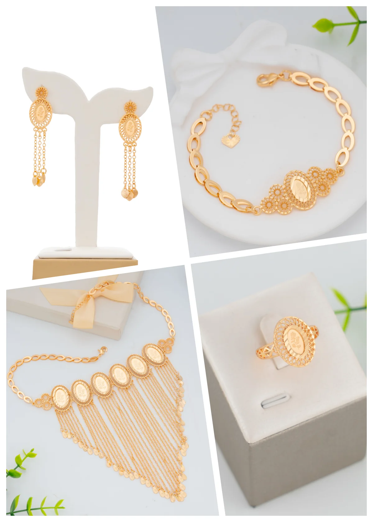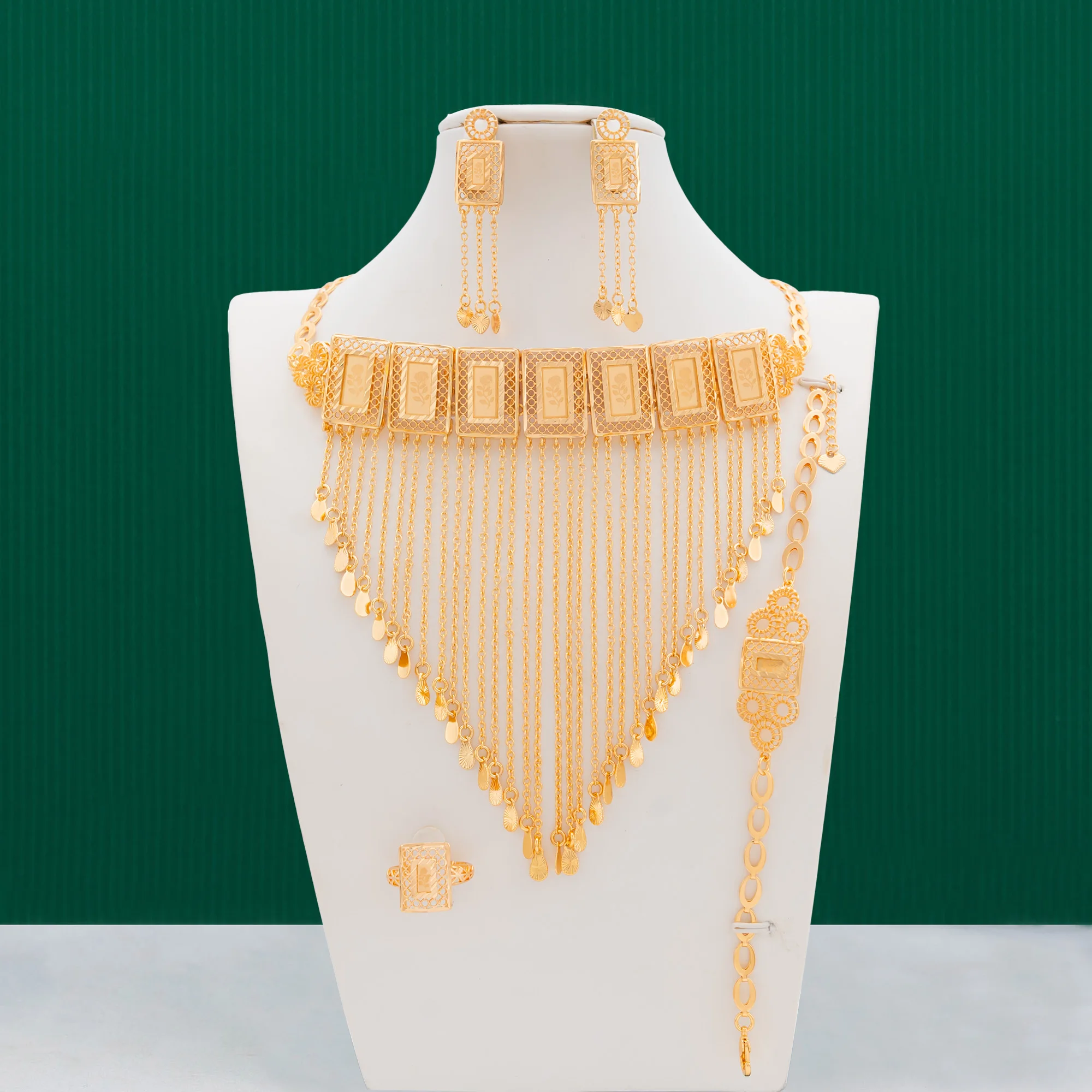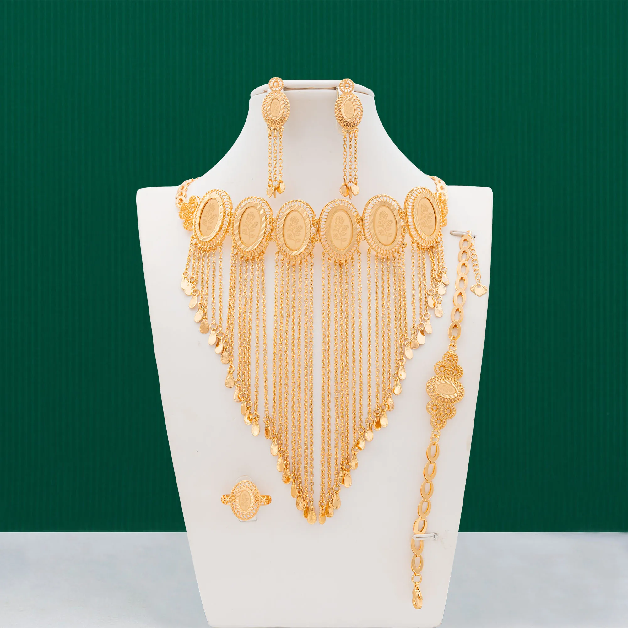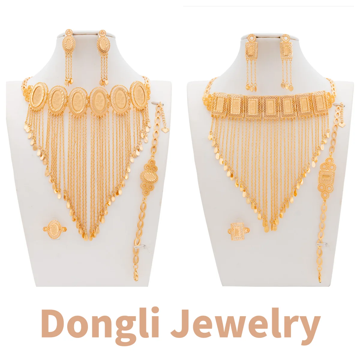 Dongli Jewelry Gorgeous 4 - Piece Jewelry Sets with Circular & Square Laser - Cut Rose Patterns and Elegant Tassels