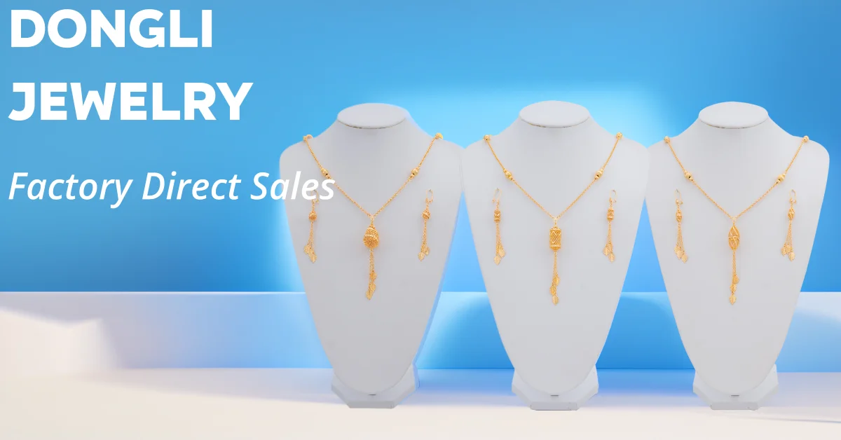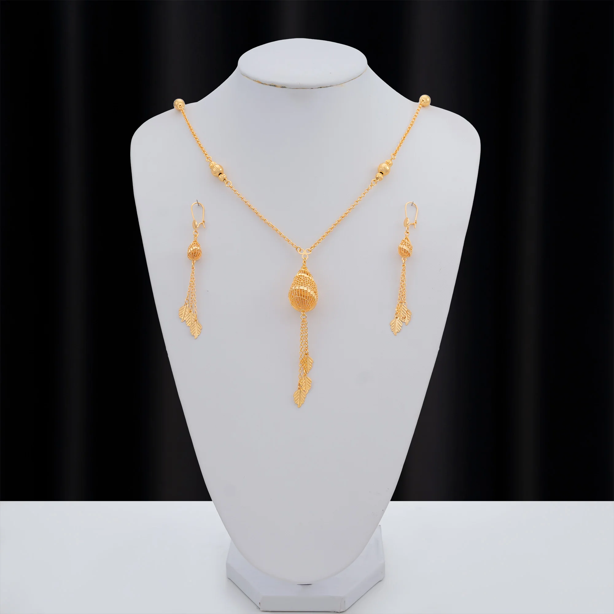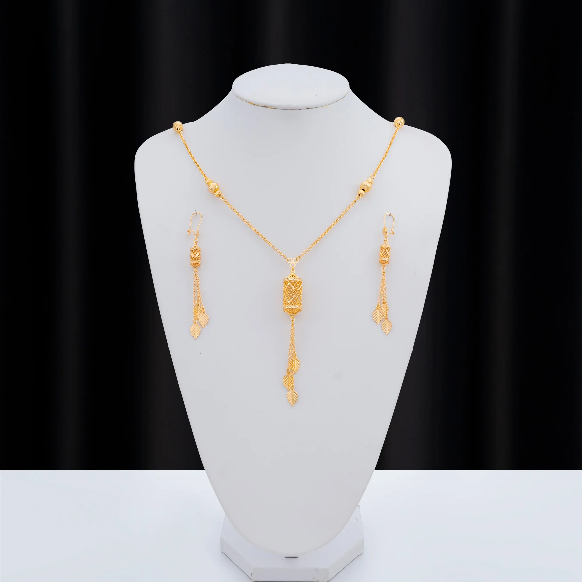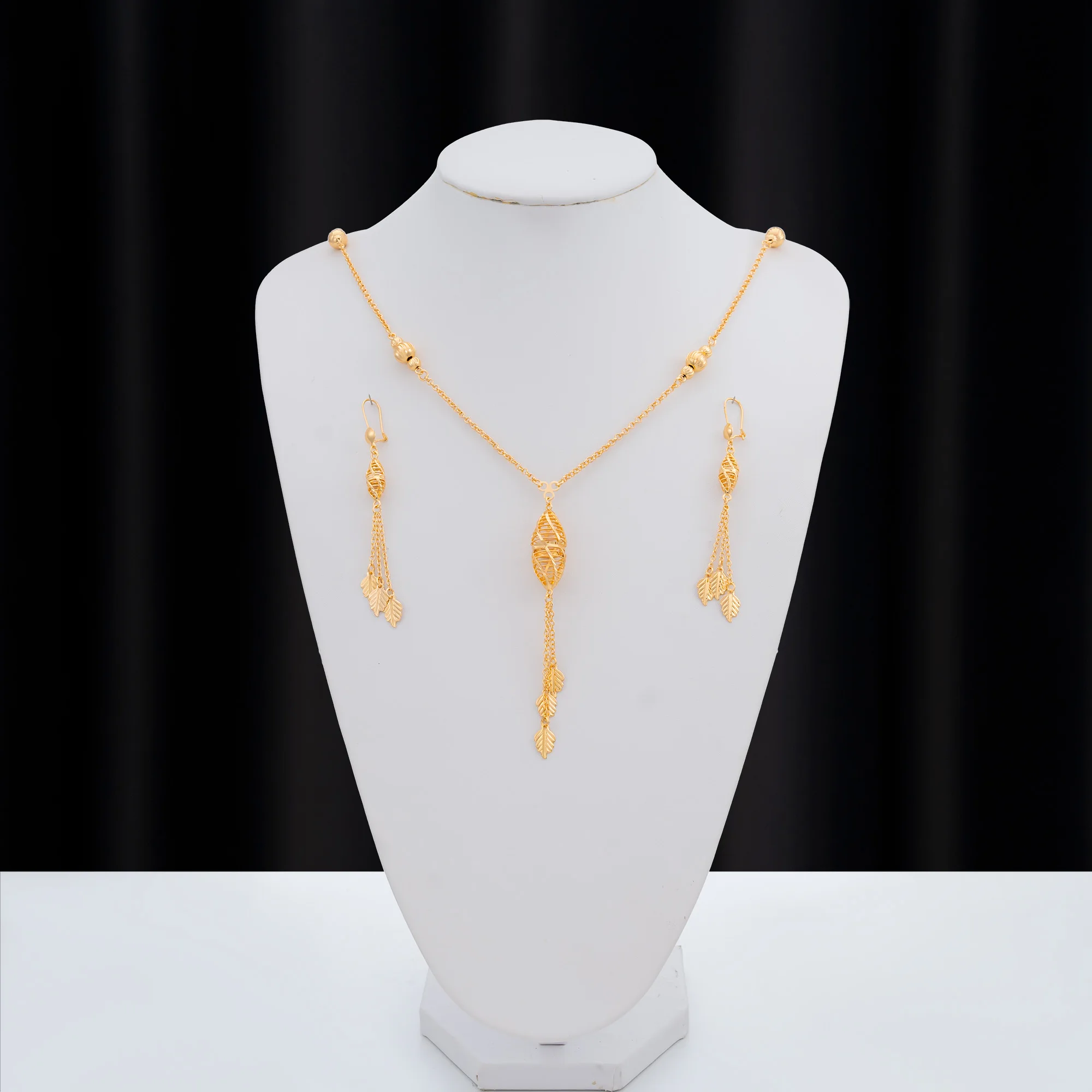 Dongli Jewelry Elegant Champagne Gold Middle Eastern Style Pendant Set - Exquisite Chain with Leaf Drop Necklace & Earring Set"